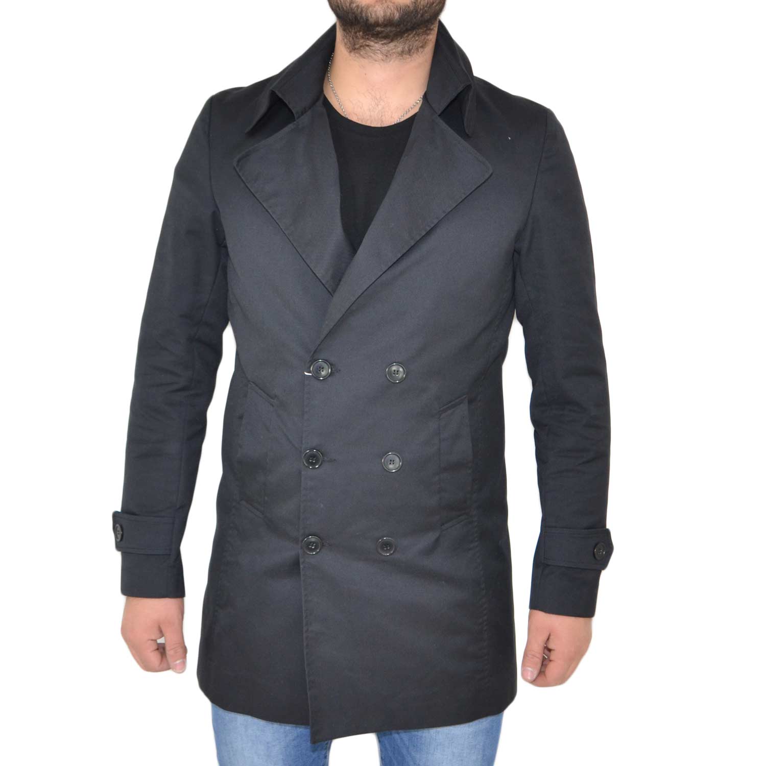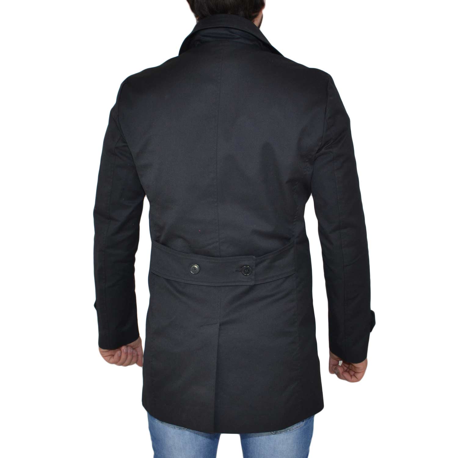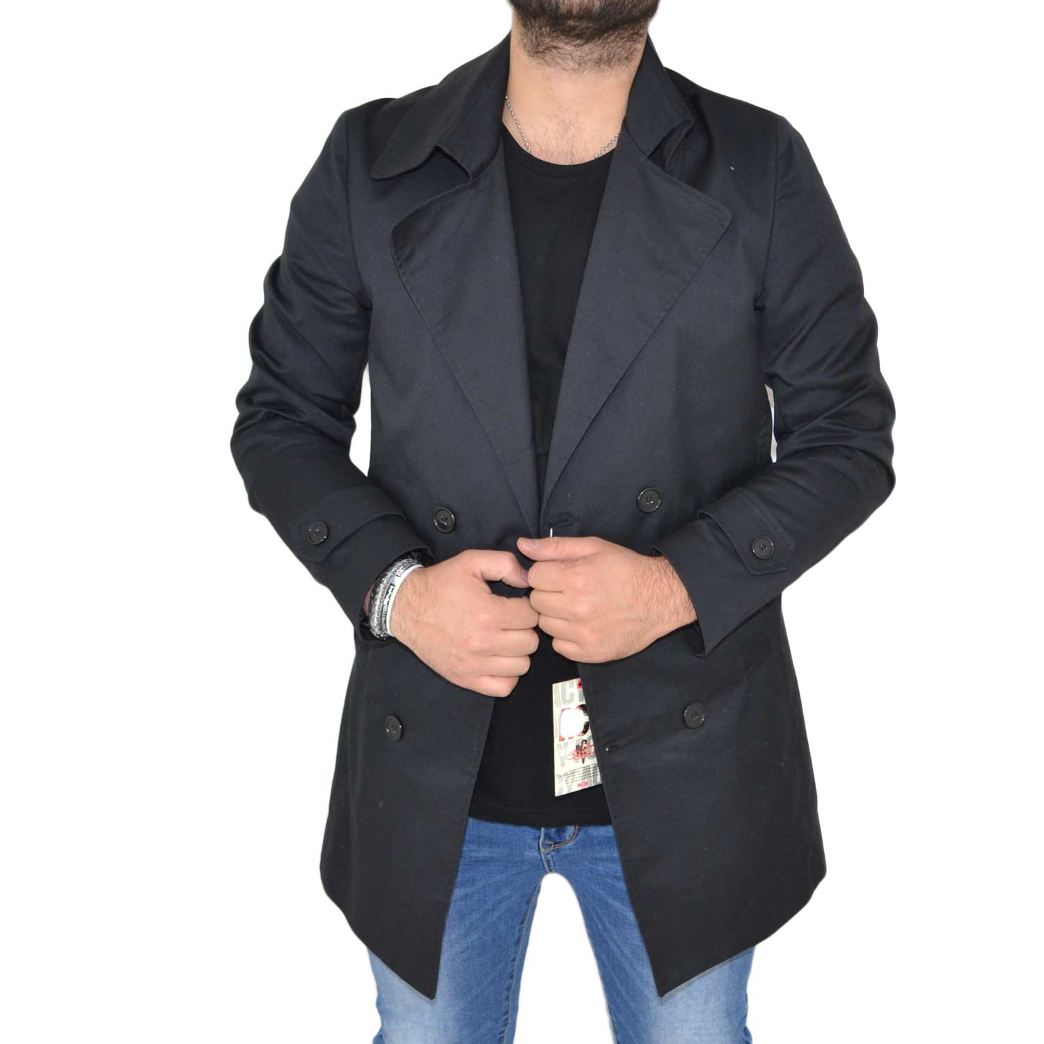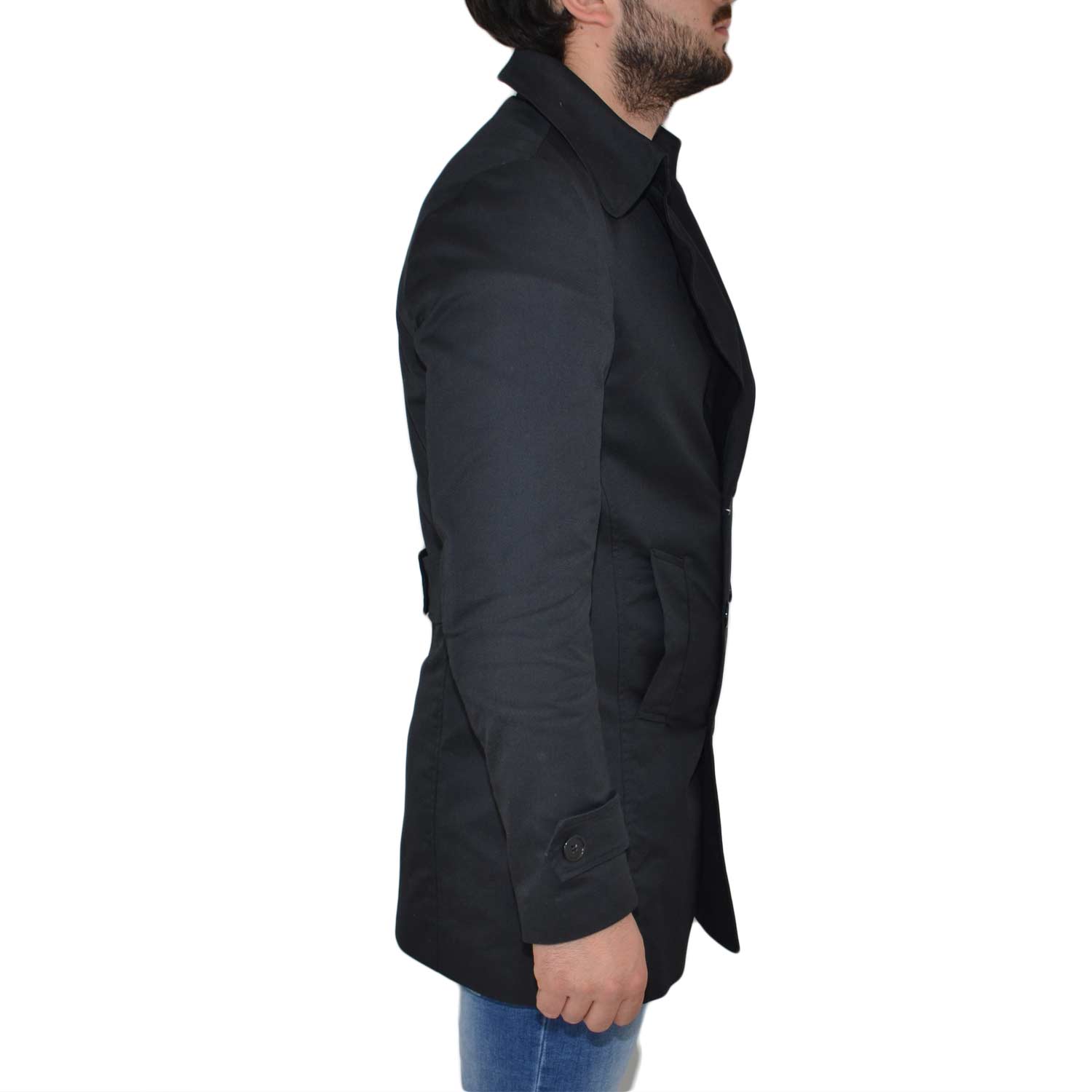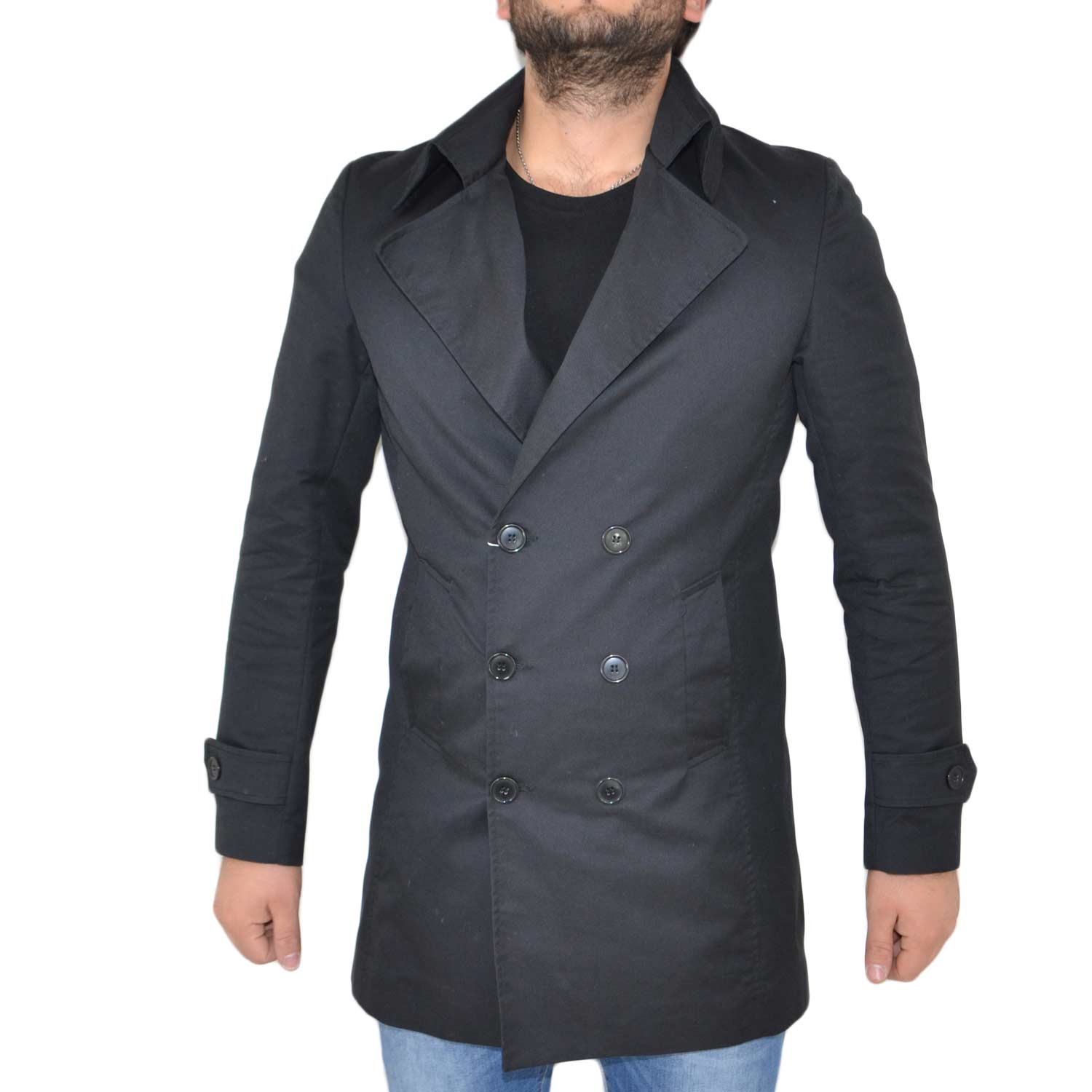 CAPPOTTO TRENCH UOMO INVERNALE ART 0123 NERO MADE IN ITALY ELEGANTE BOTTONI E TASCHE