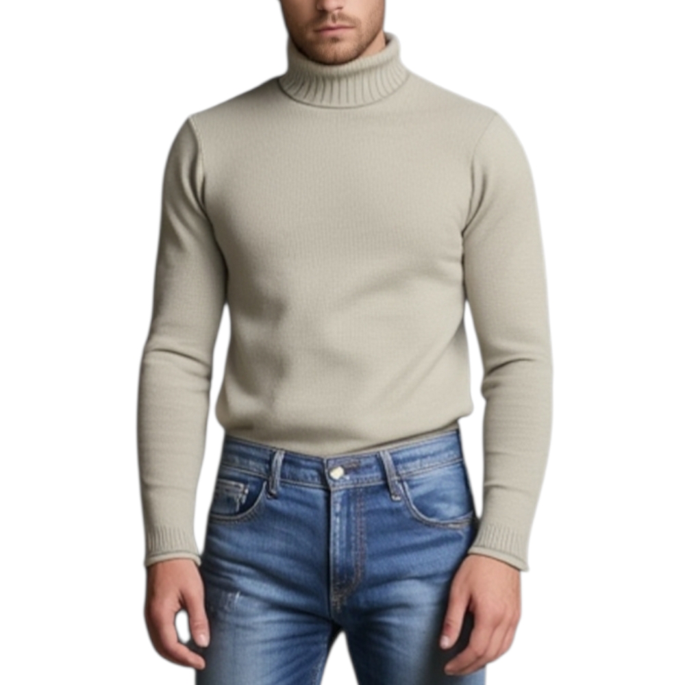 Maglione dolcevita uomo manica lunga con colletto stretto beige made in italy moda tendenza slim tinta unita basic