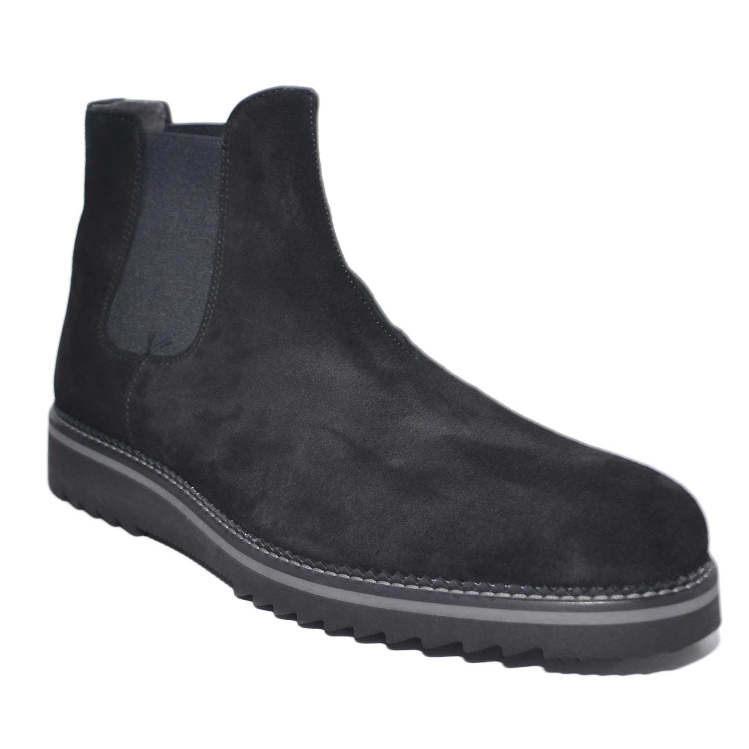 Scarpe uomo beatles vero pelle scamosciata nero art:b6598 fondo furia invernale antiscivolo made in italy