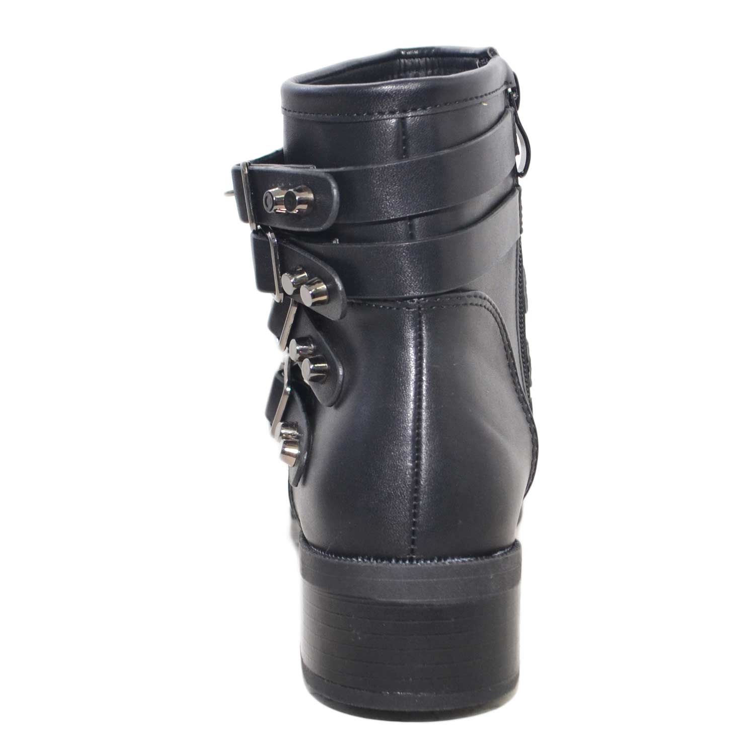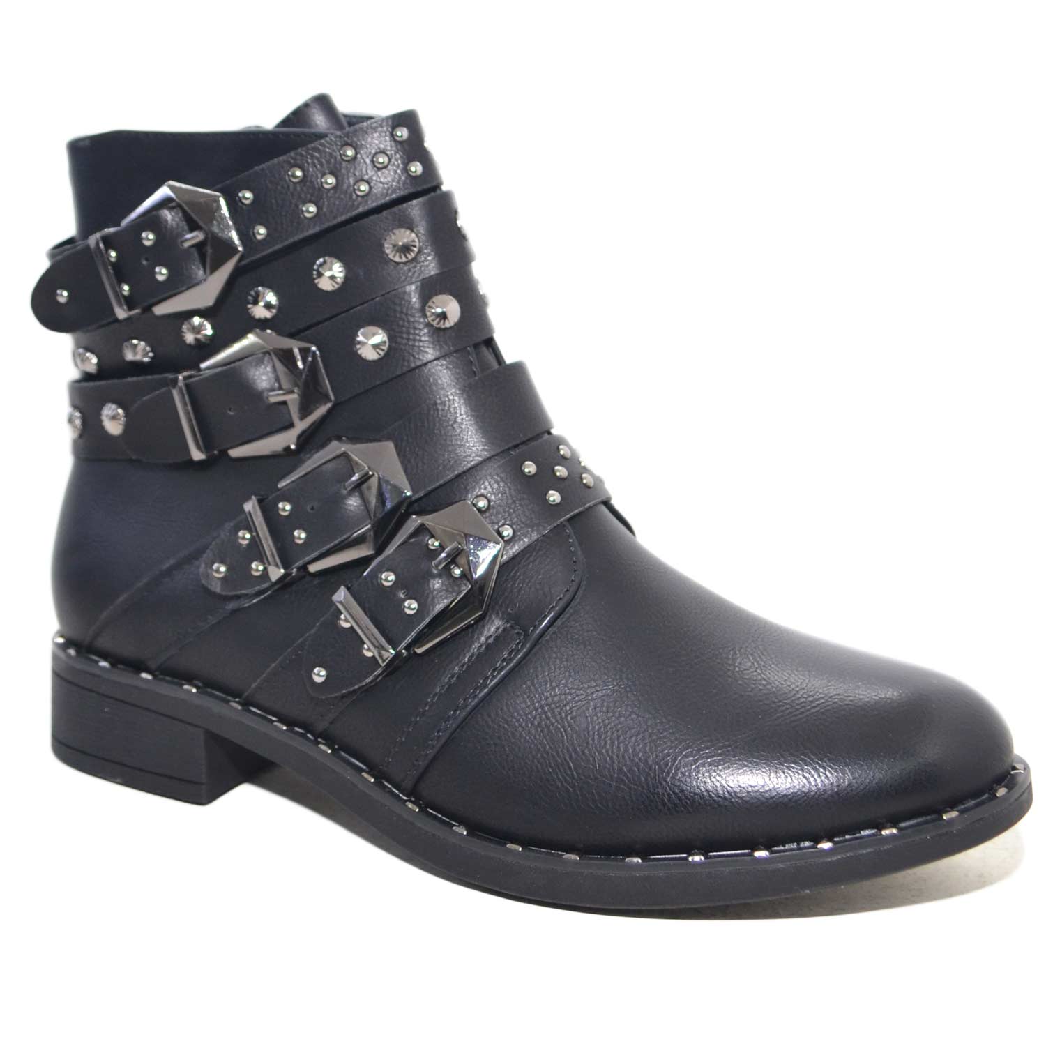 scarpe donna stivaletti nero quattro fibbie inglese donna comodi fondo antiscivolo moda glamour