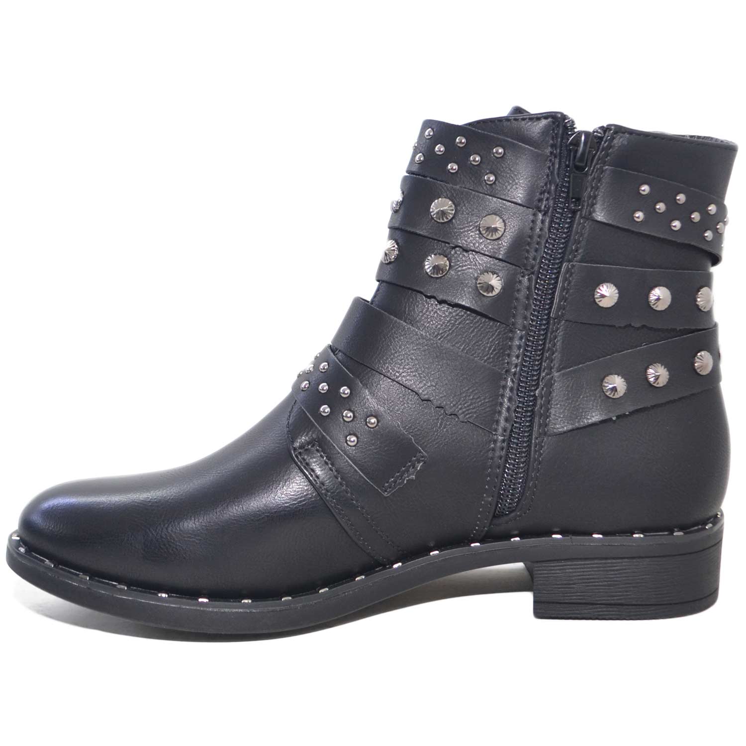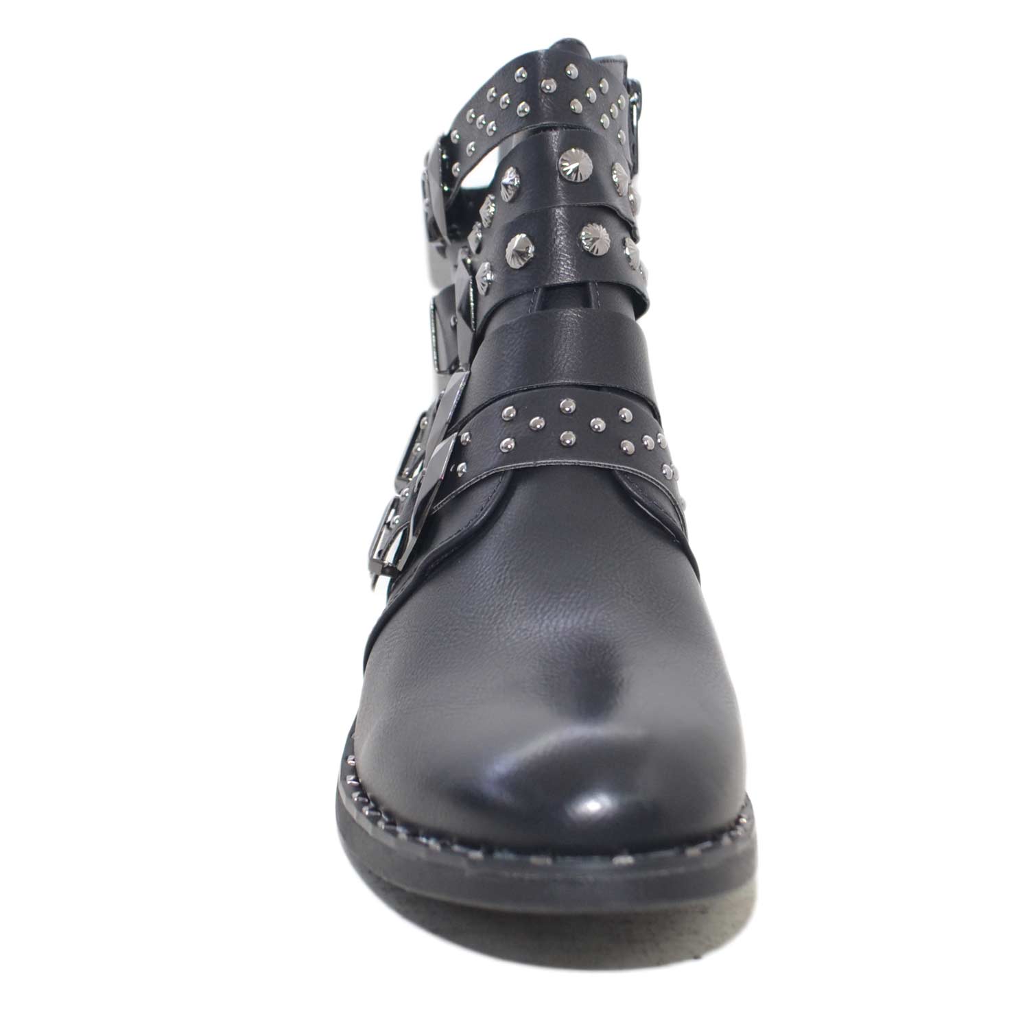 -DETTAGLI: stivaletti Road in ecopelle nera, cinturini con borchie