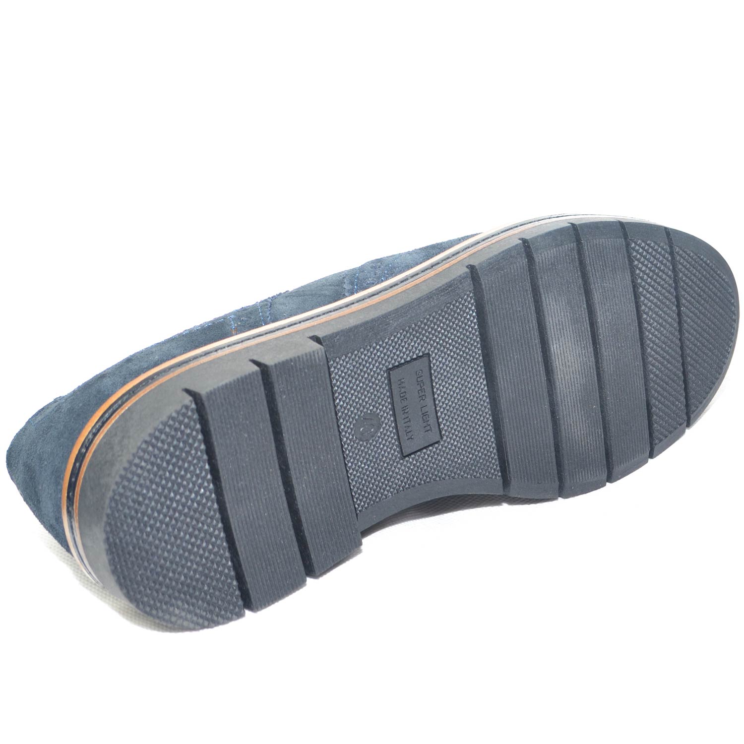 Stringata uomo liscia in vera pelle abrasivata blu fondo gomma alta moda tendenza made in Italy.