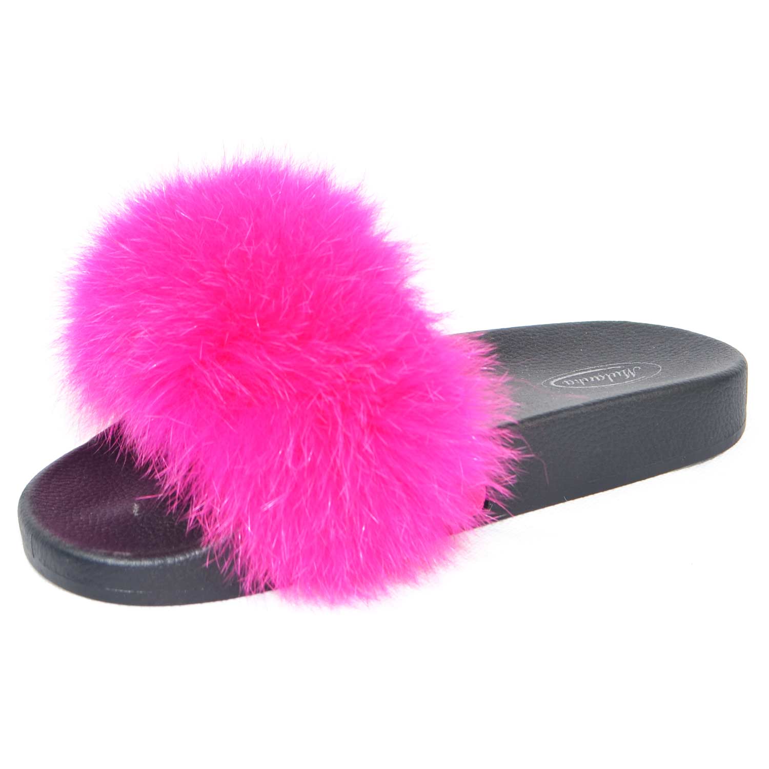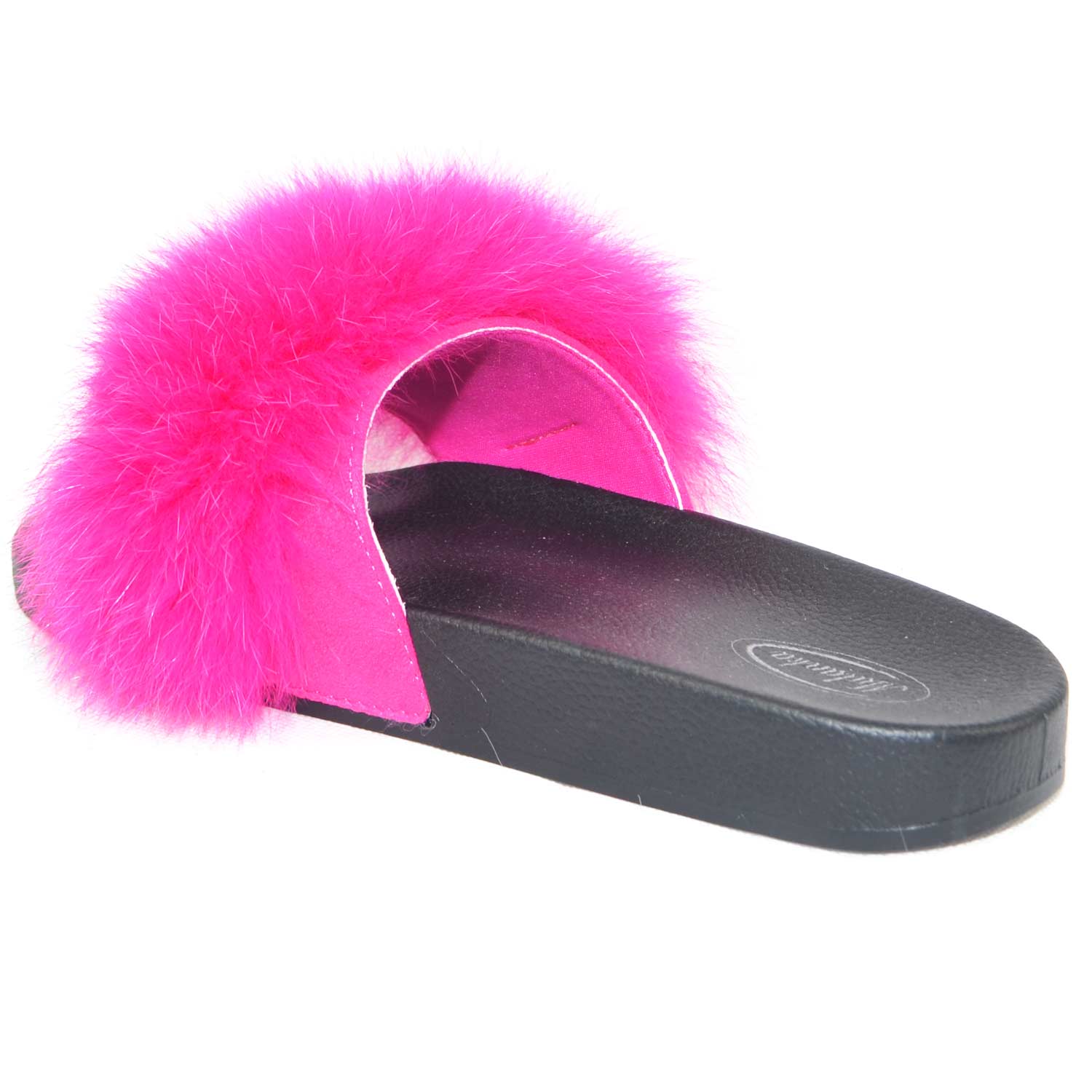 Pantofoline donna platform con pelliccia peluche fucsia voluminosa colorata morbide e antishock moda glamour