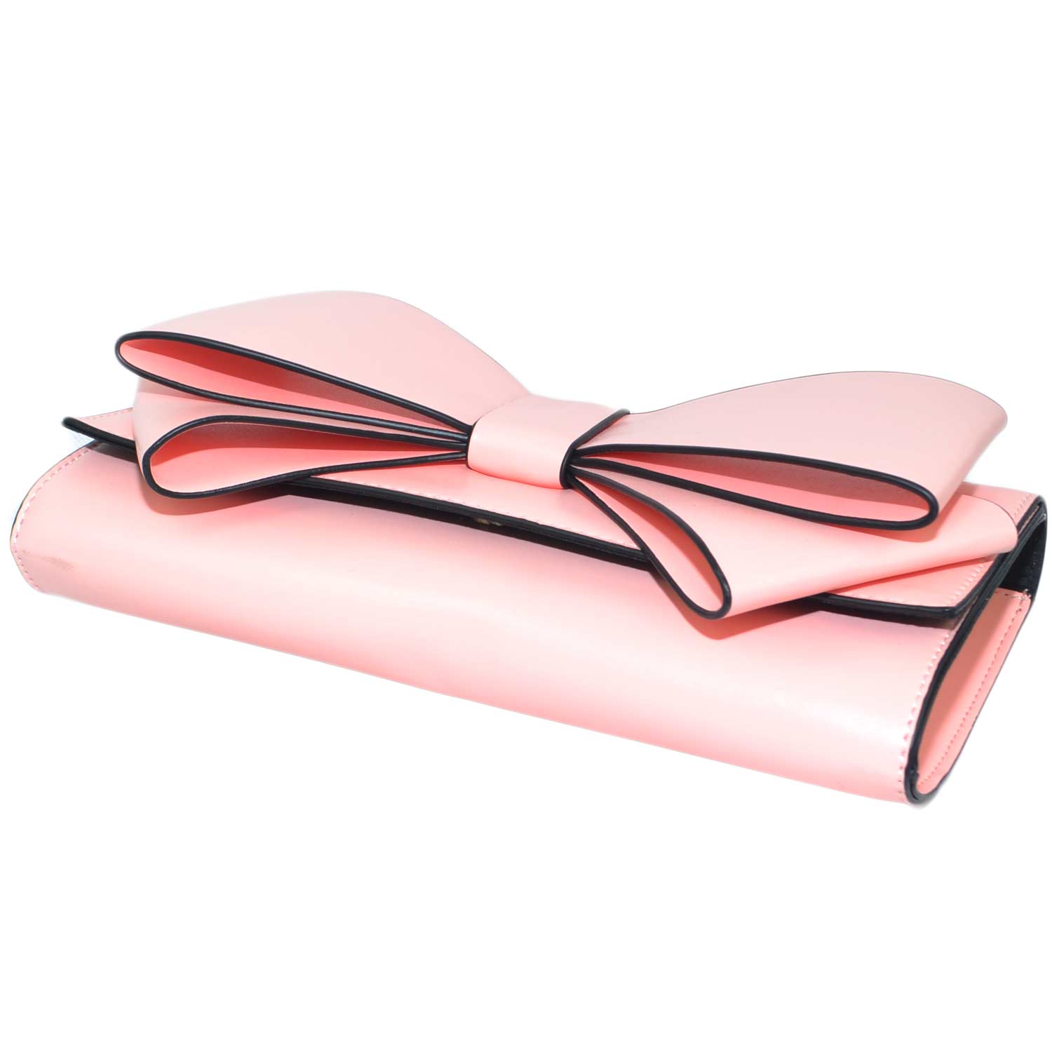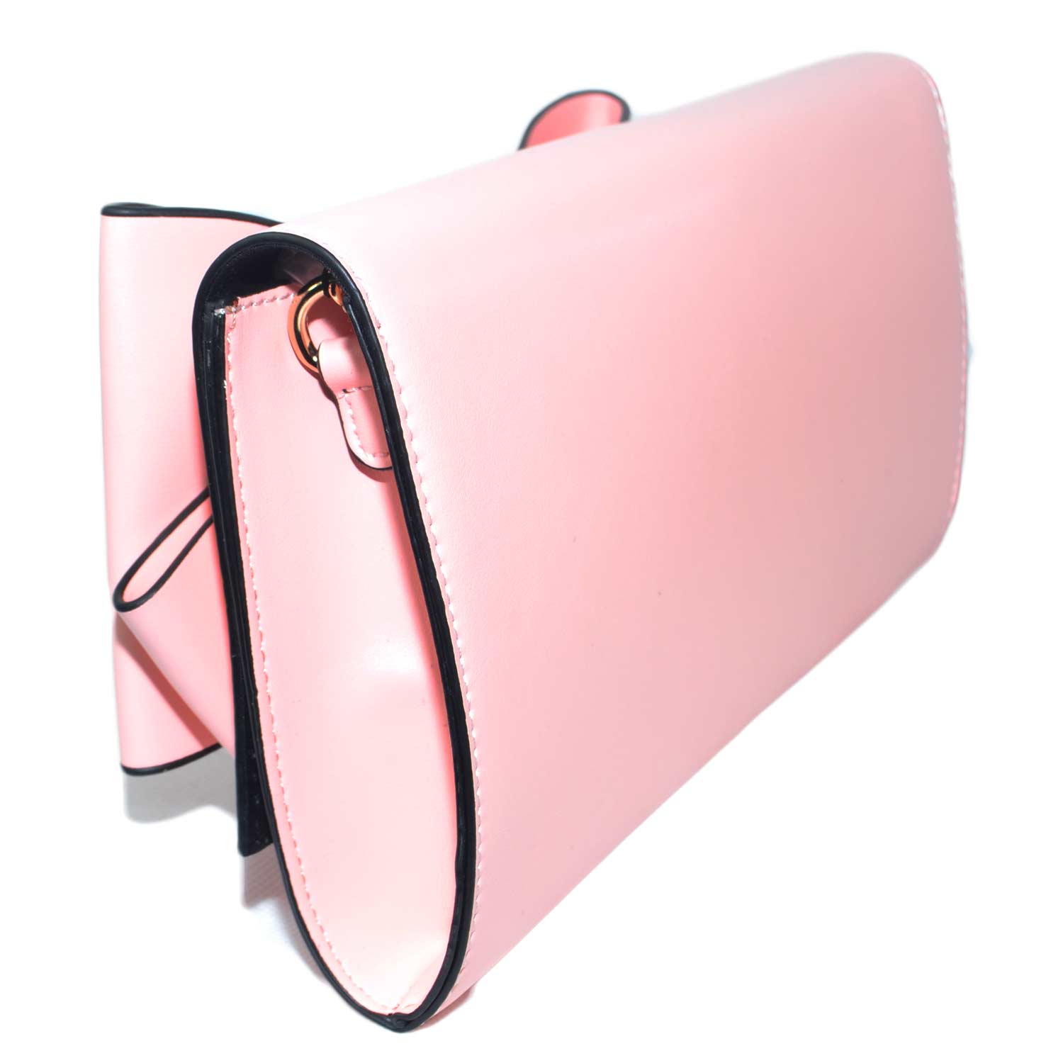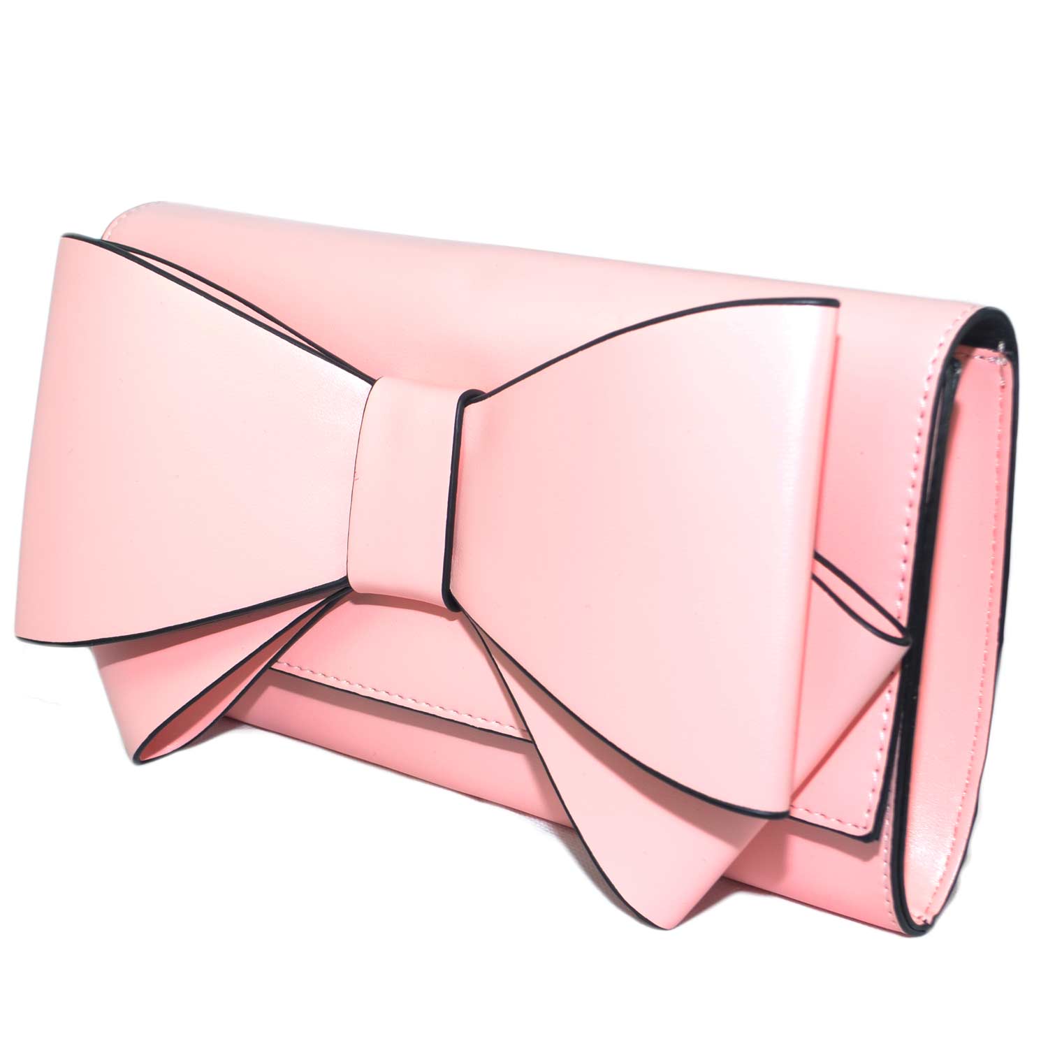 Pochette Clucth a mano rosa cipria con fiocco tono su tono e doppia catenina o tracolla