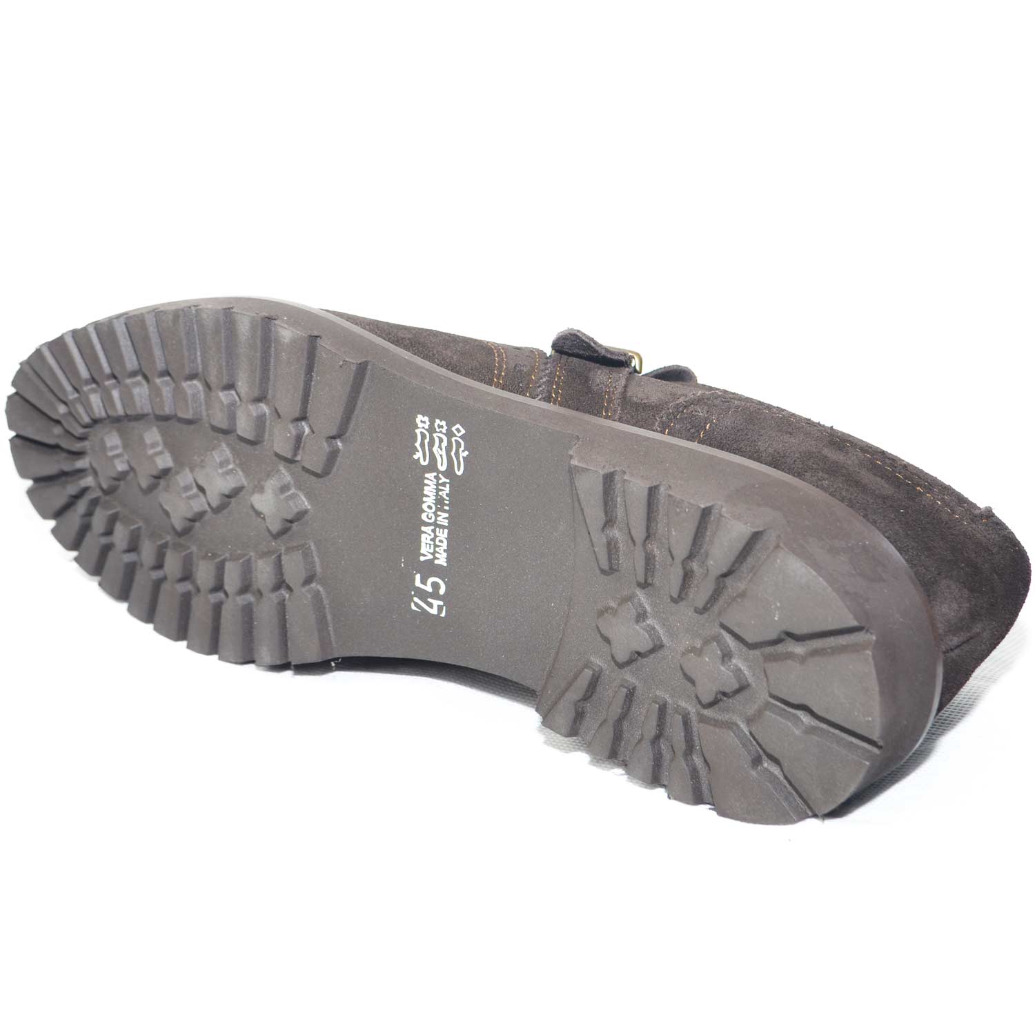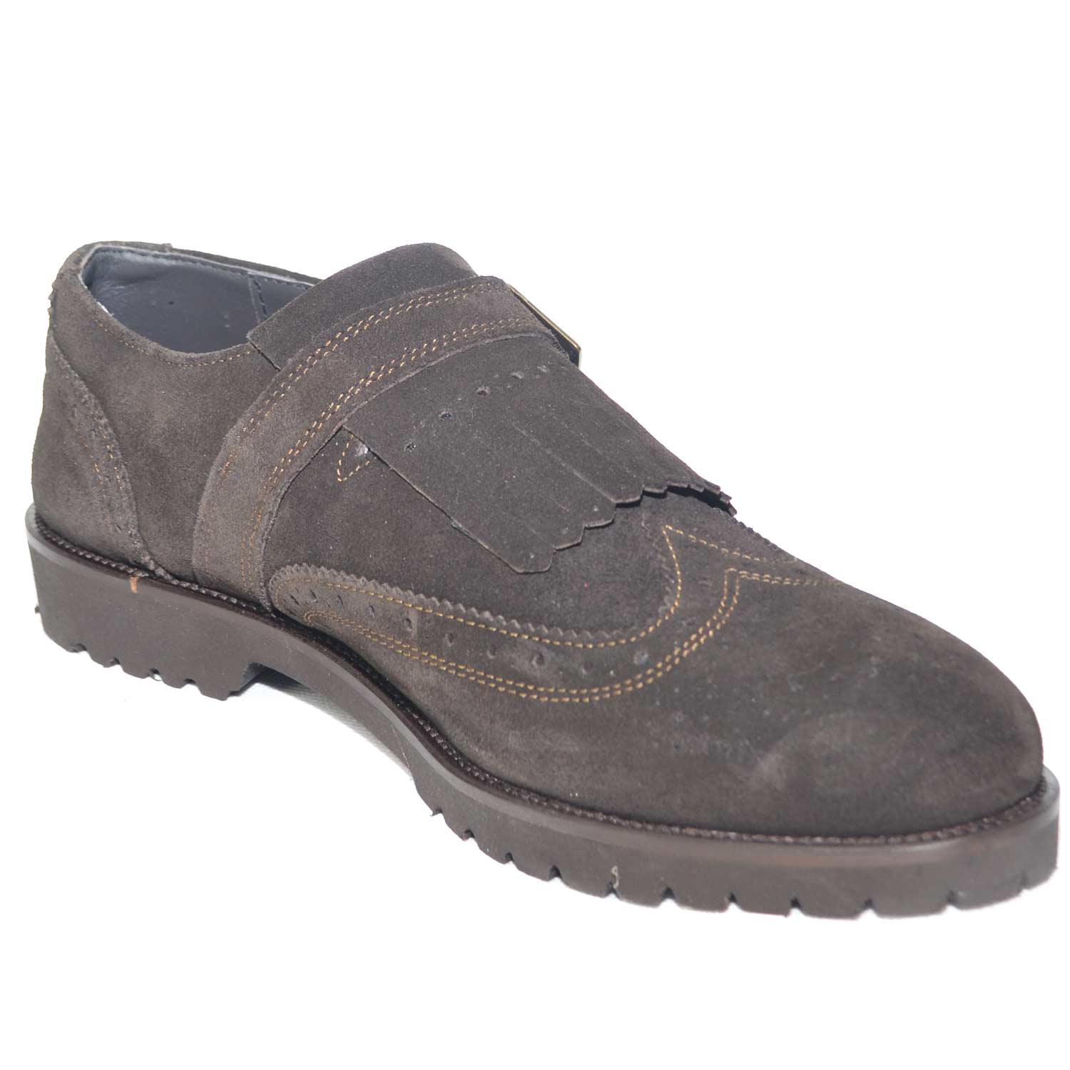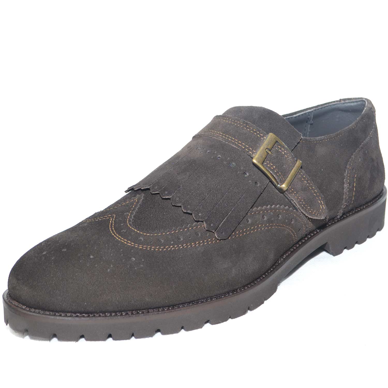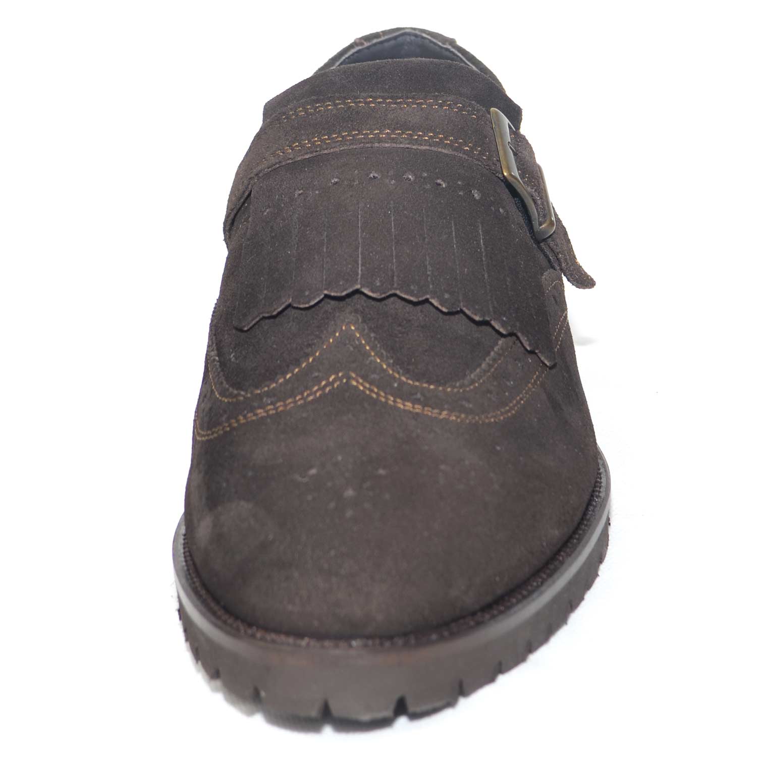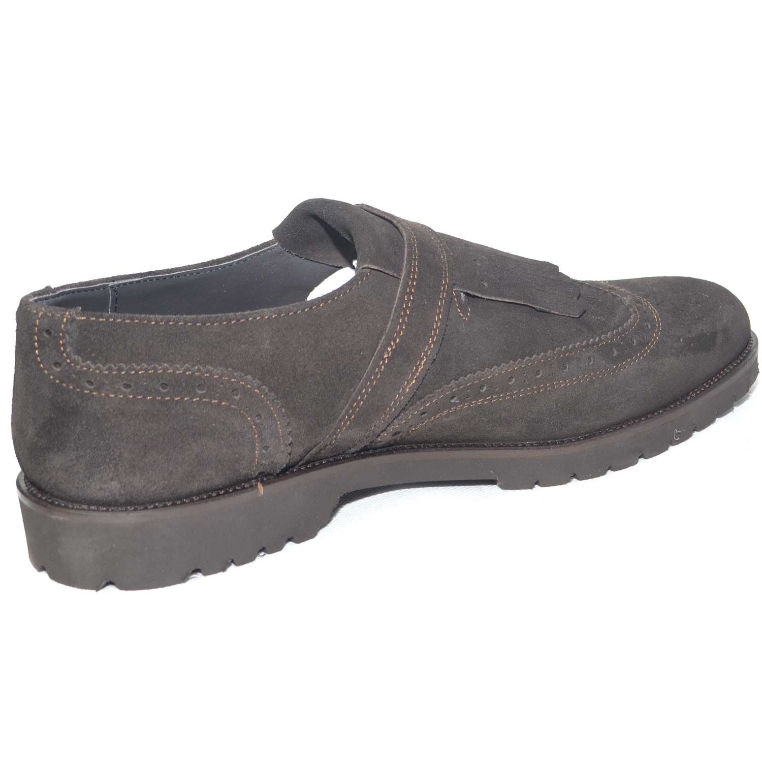 SCARPE UOMO FIBBIA FRANGE VERA PELLE SCAMOSCIATA MARRONE MADE IN ITALY FONDO ANTISCIVOLO MODA ARTIGIANALE