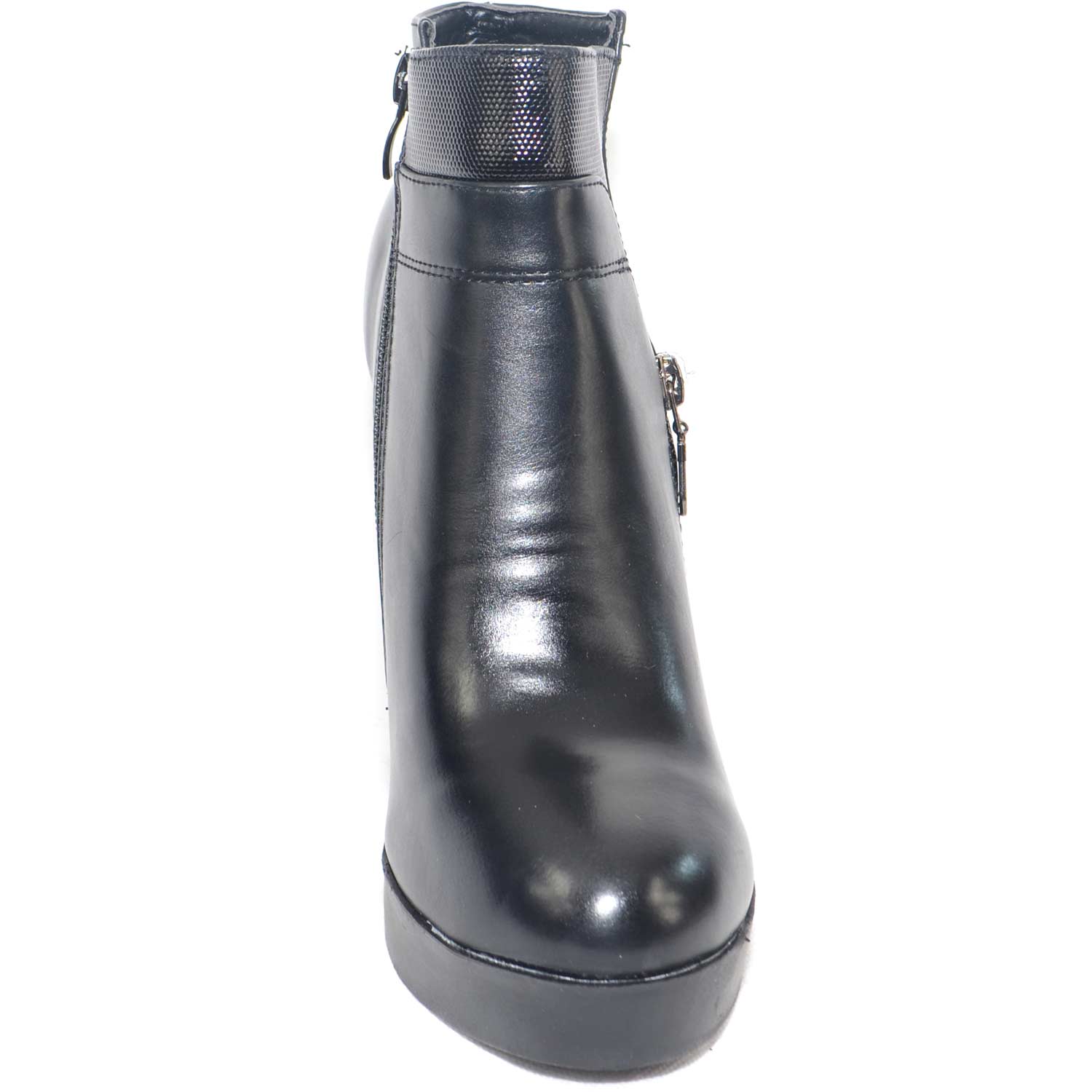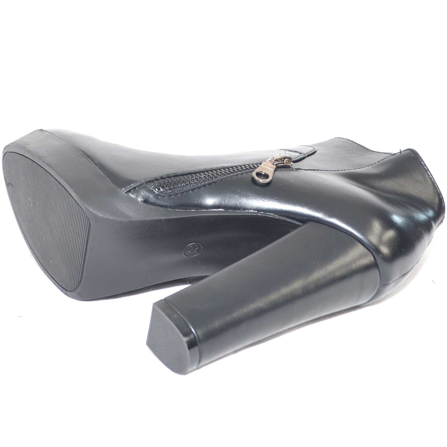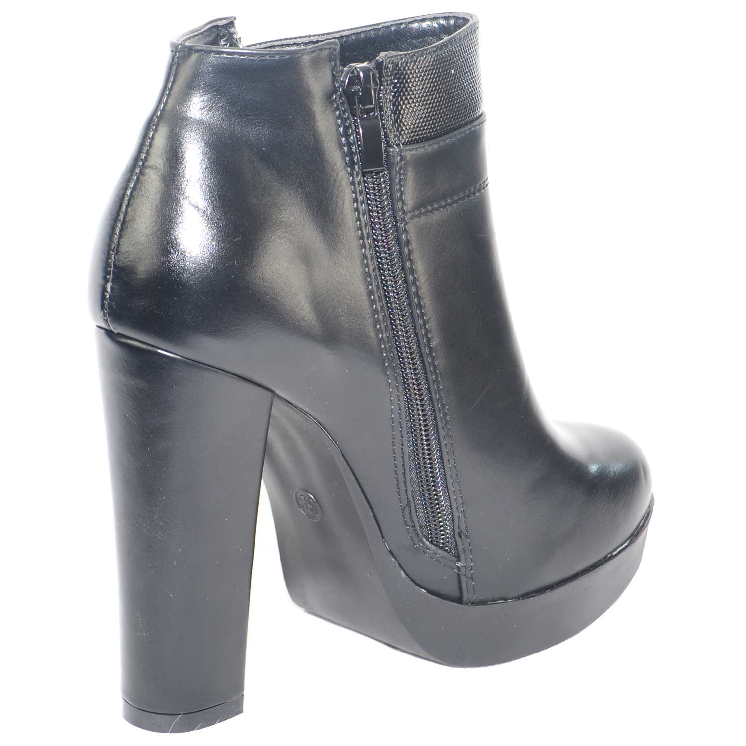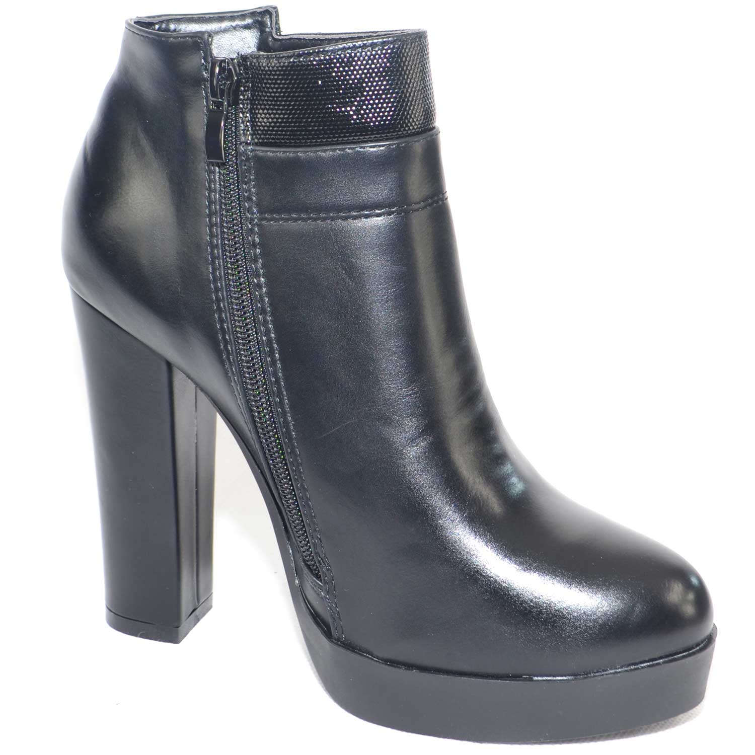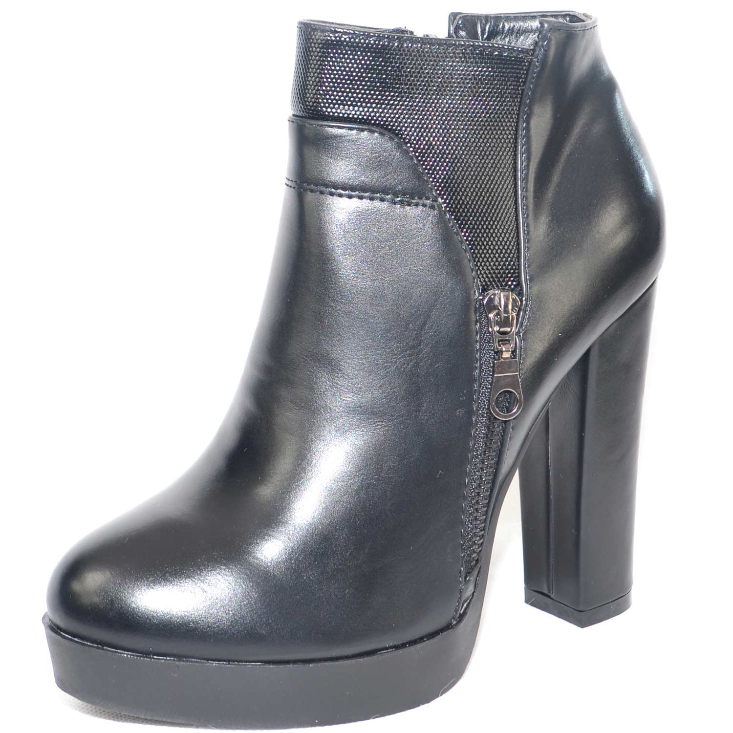 tronchetto alto nero con plateau e tacco largo applicazione zip