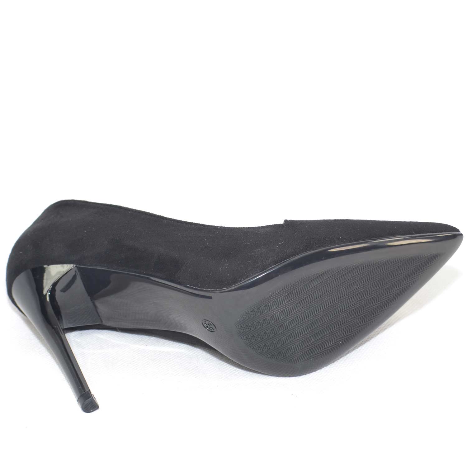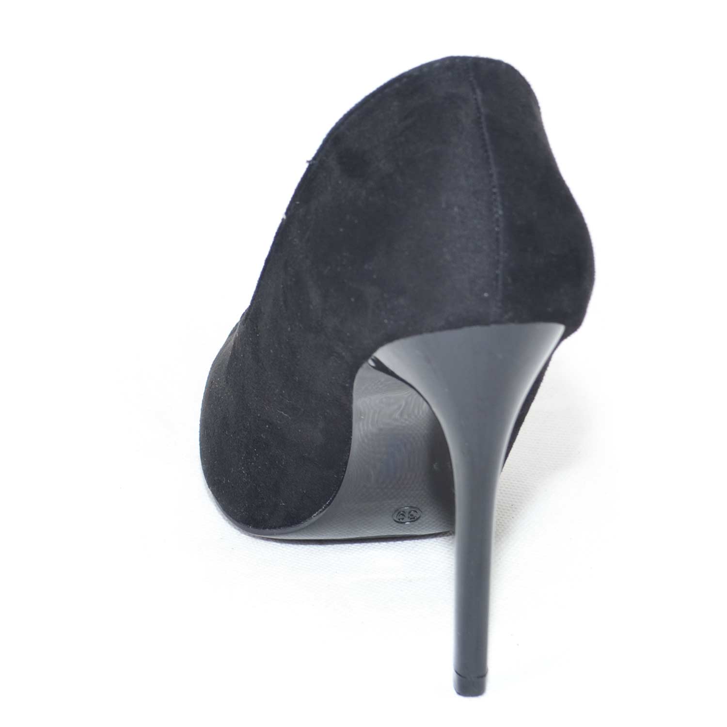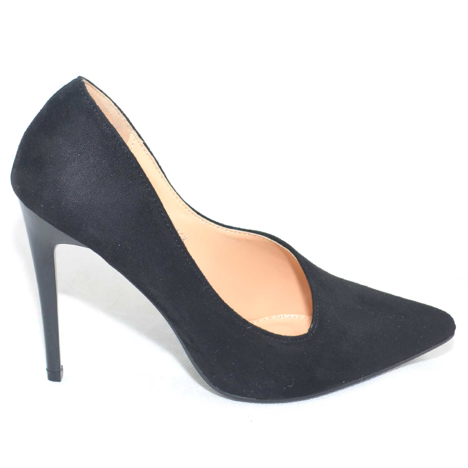 scarpe eleganti a punta con scollo asimmetrico in camoscio nero tacco a spillo