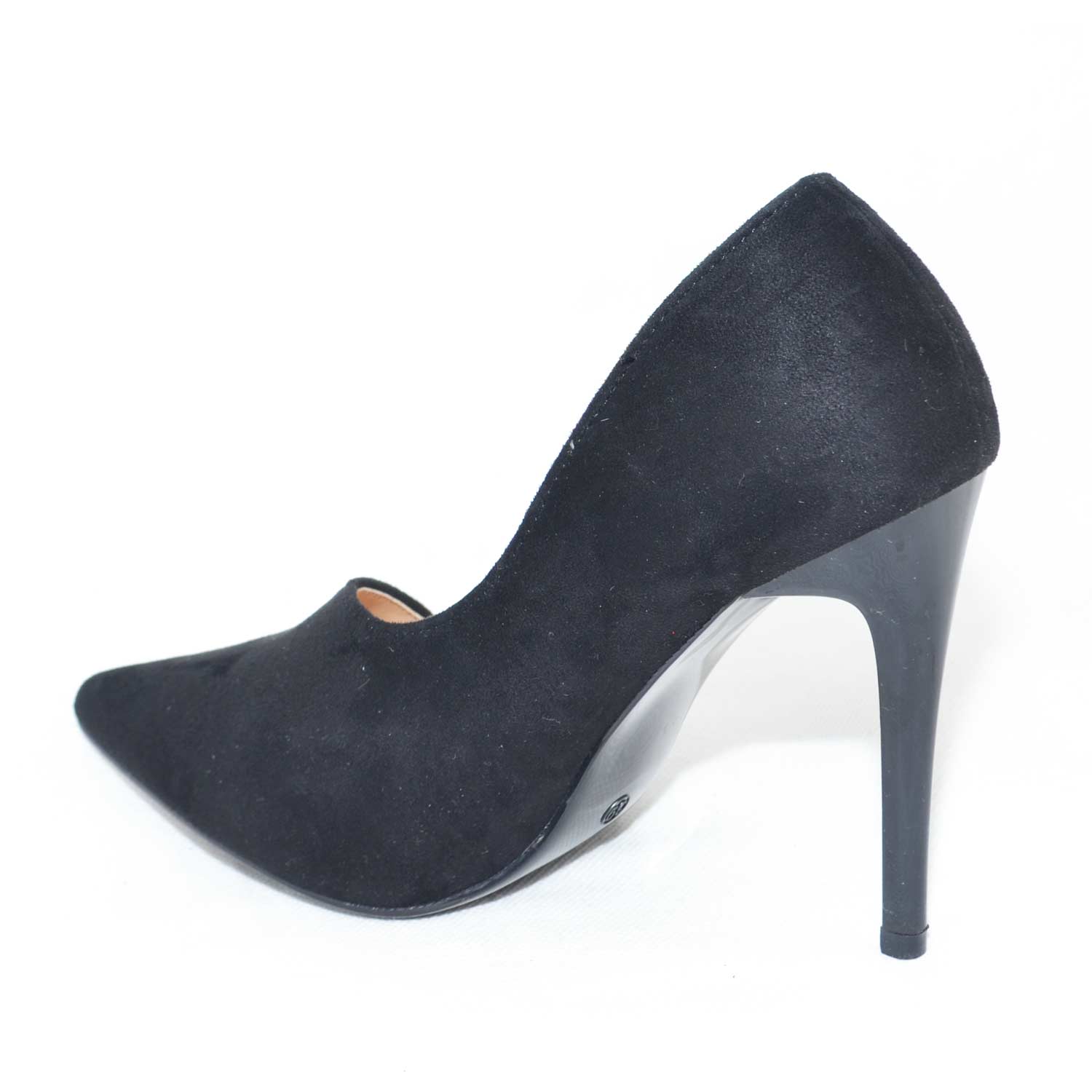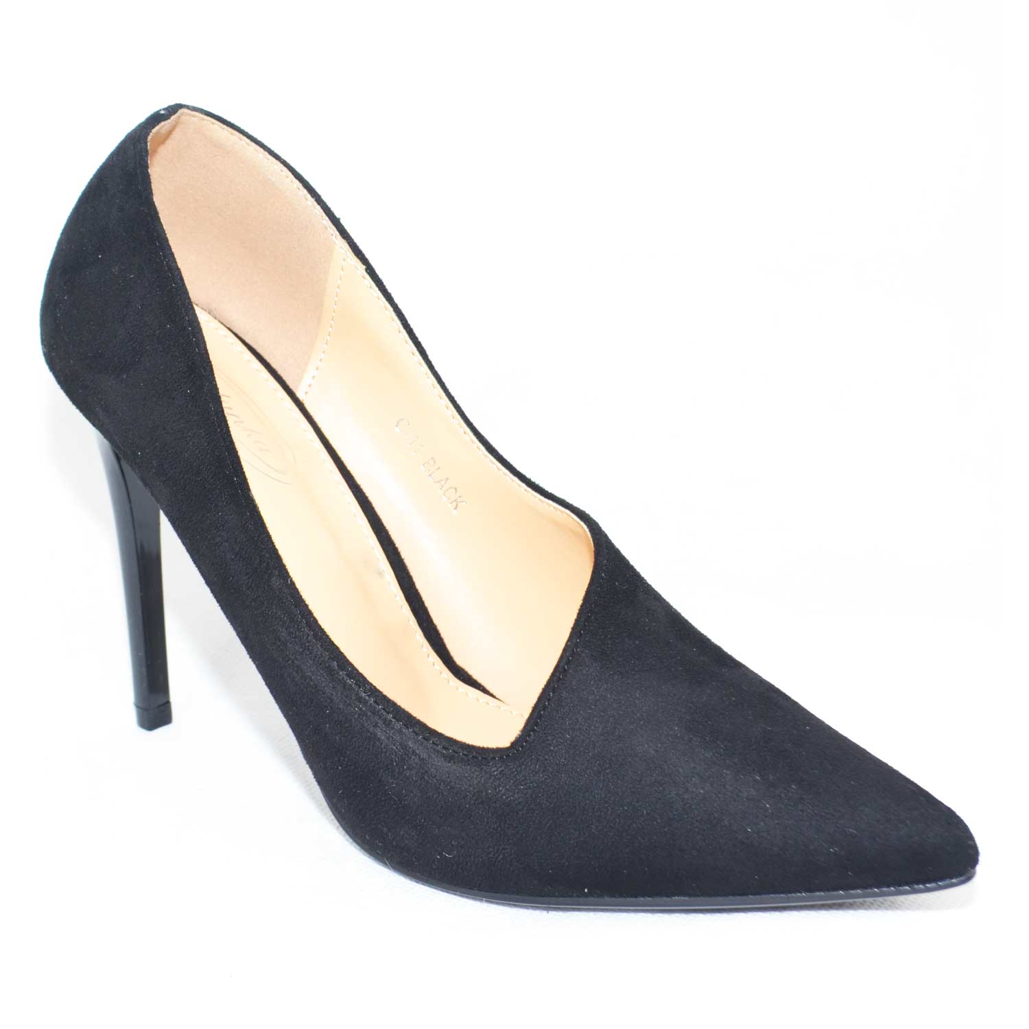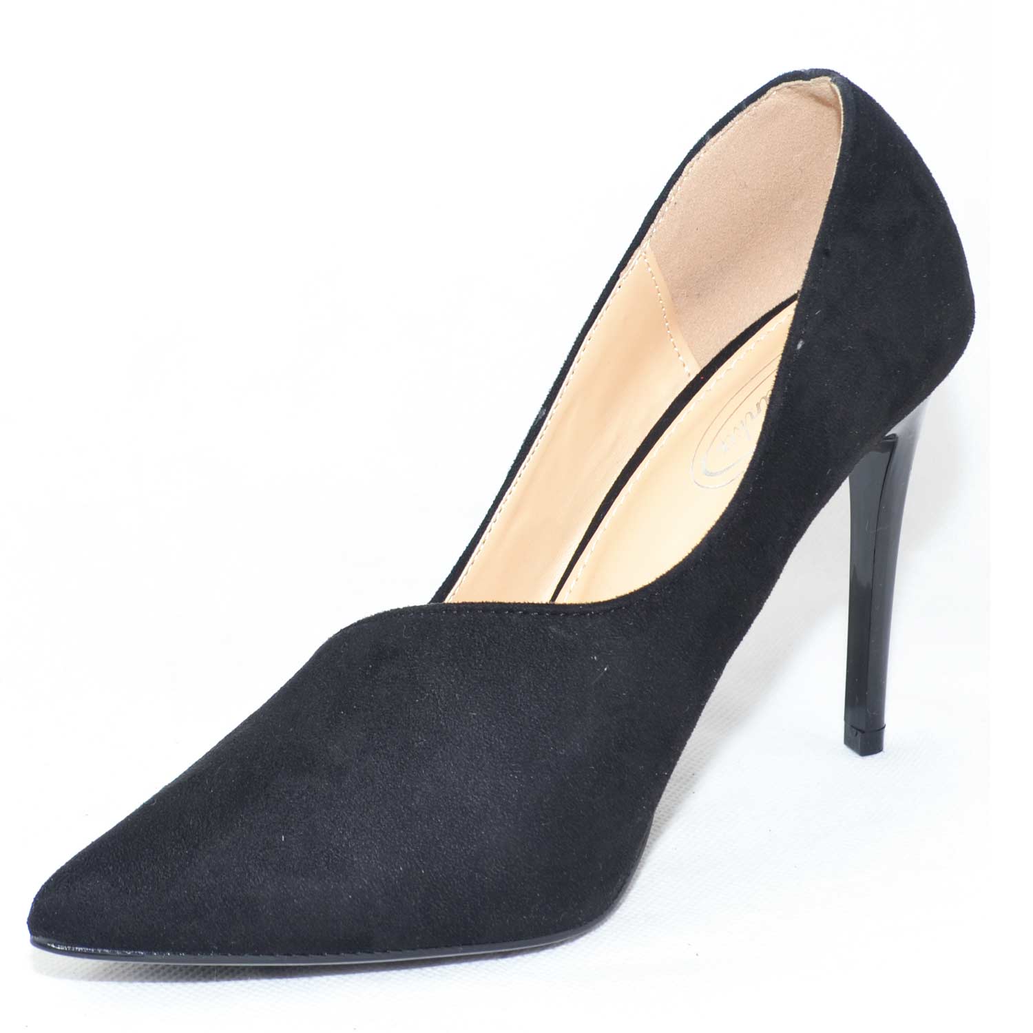 scarpe eleganti a punta con scollo asimmetrico in camoscio nero tacco a spillo