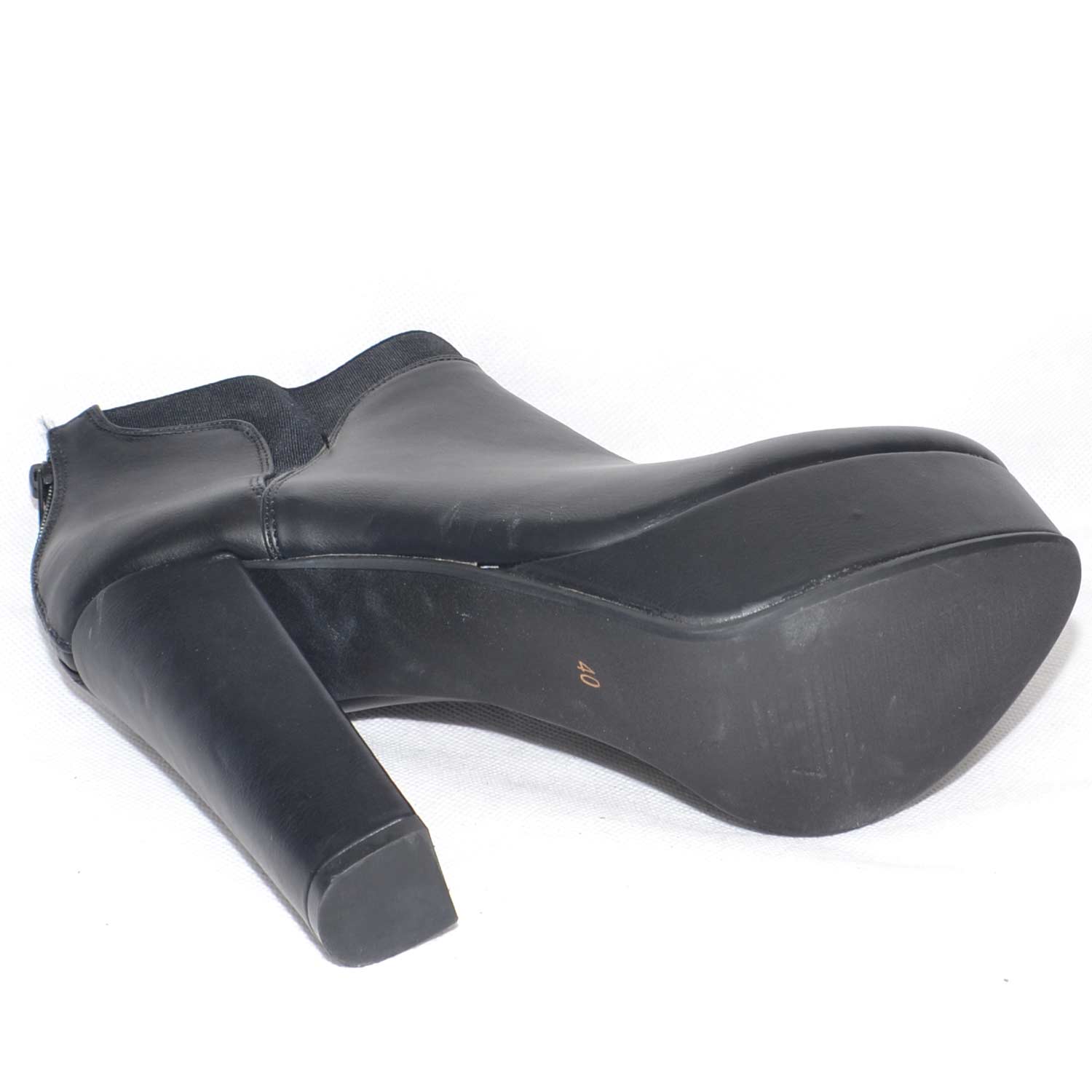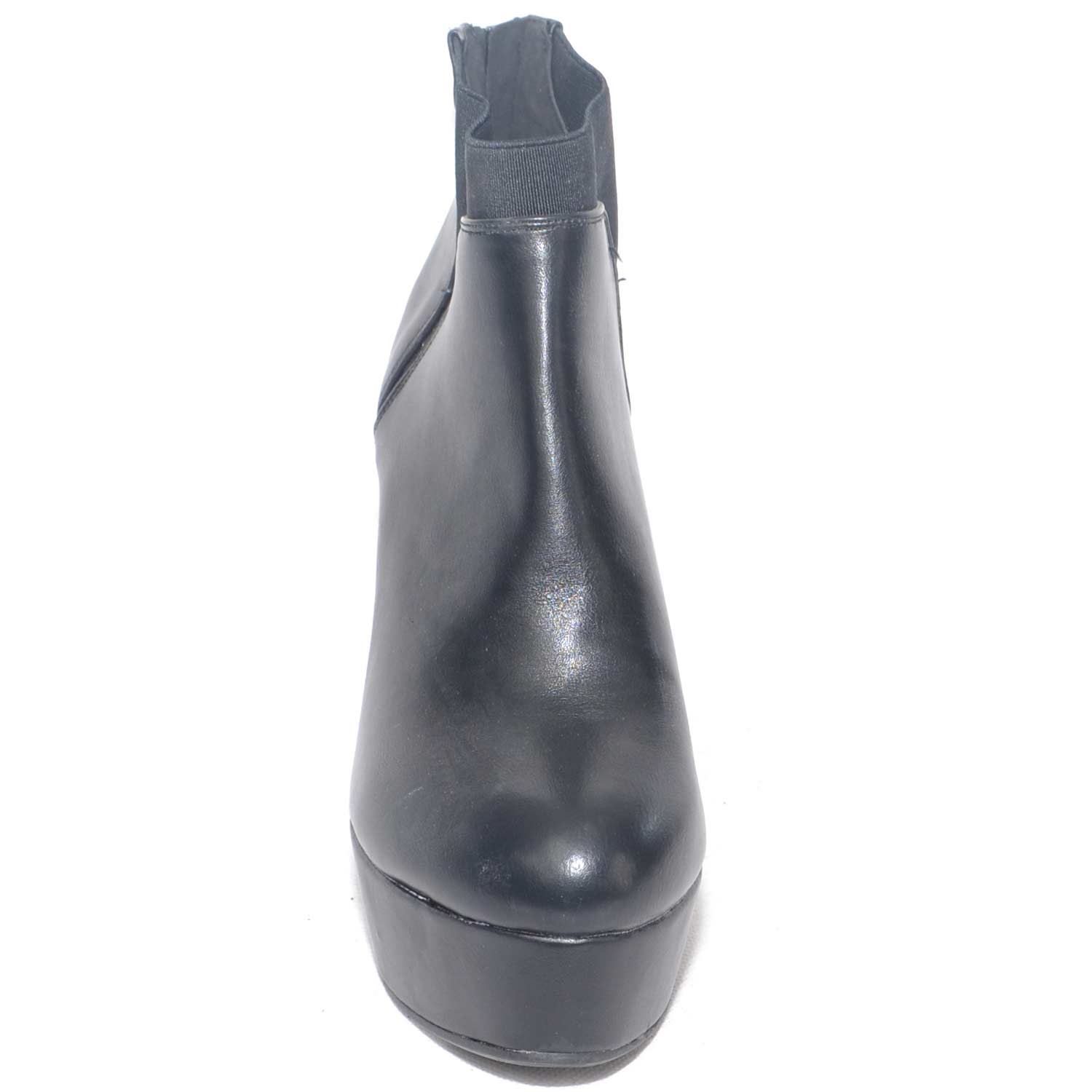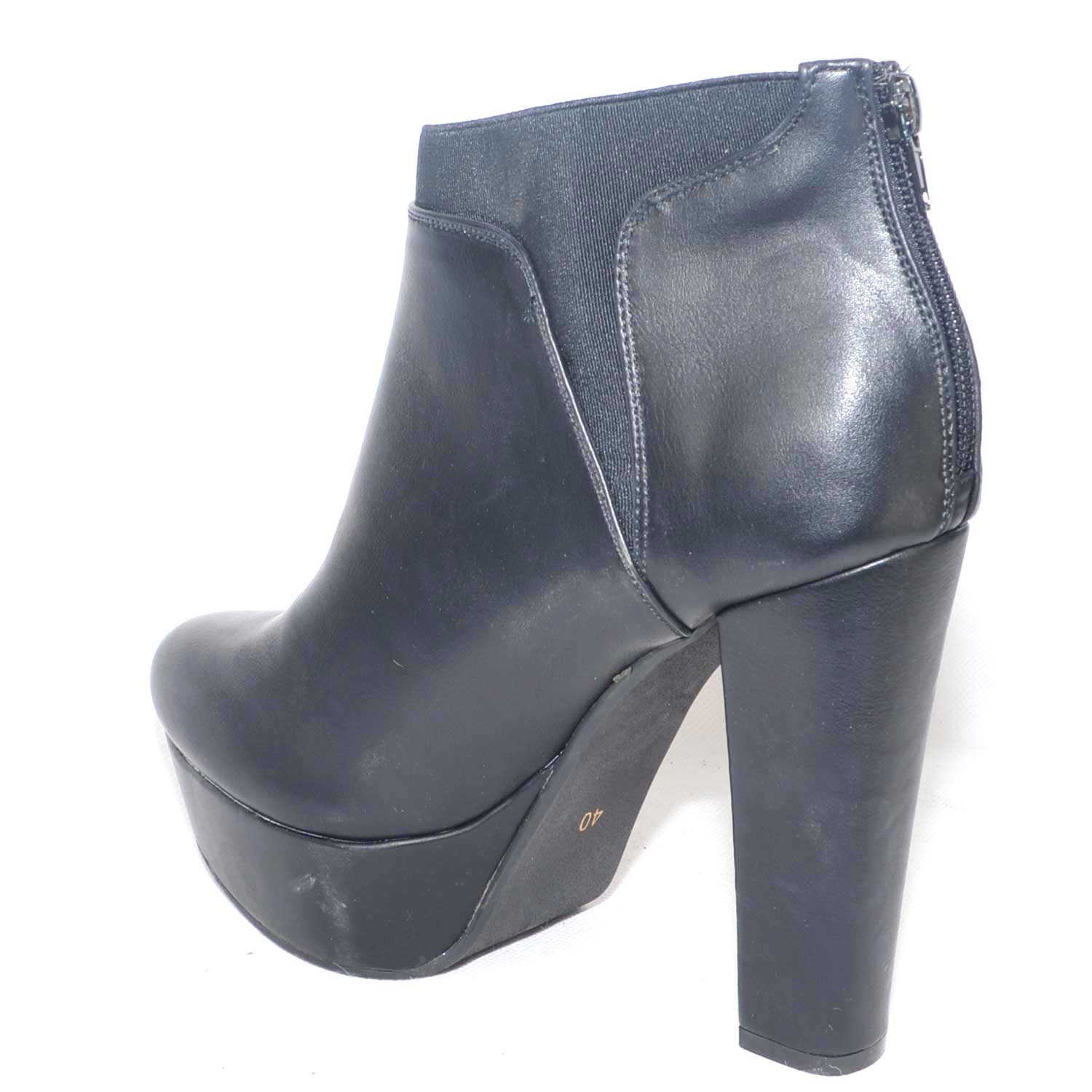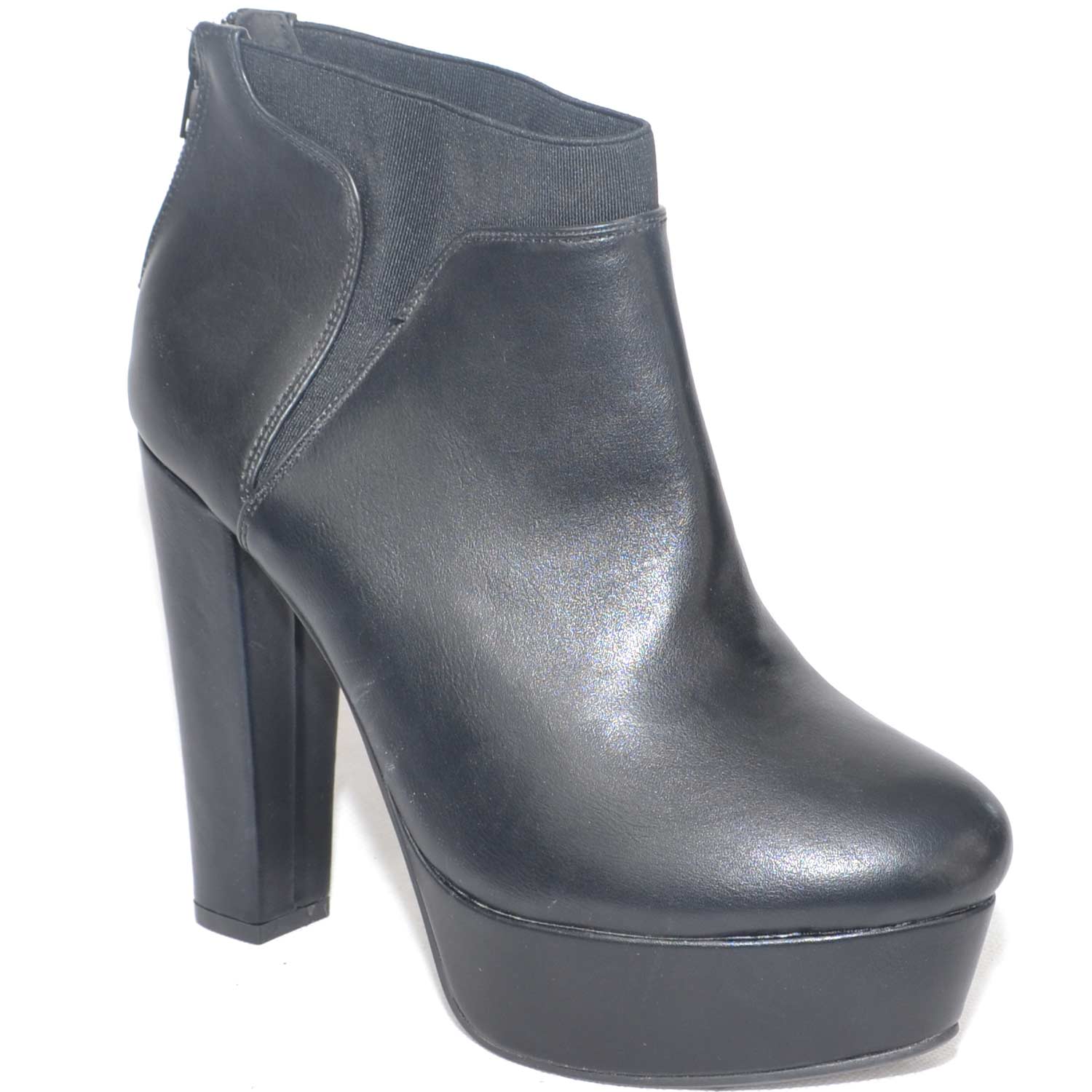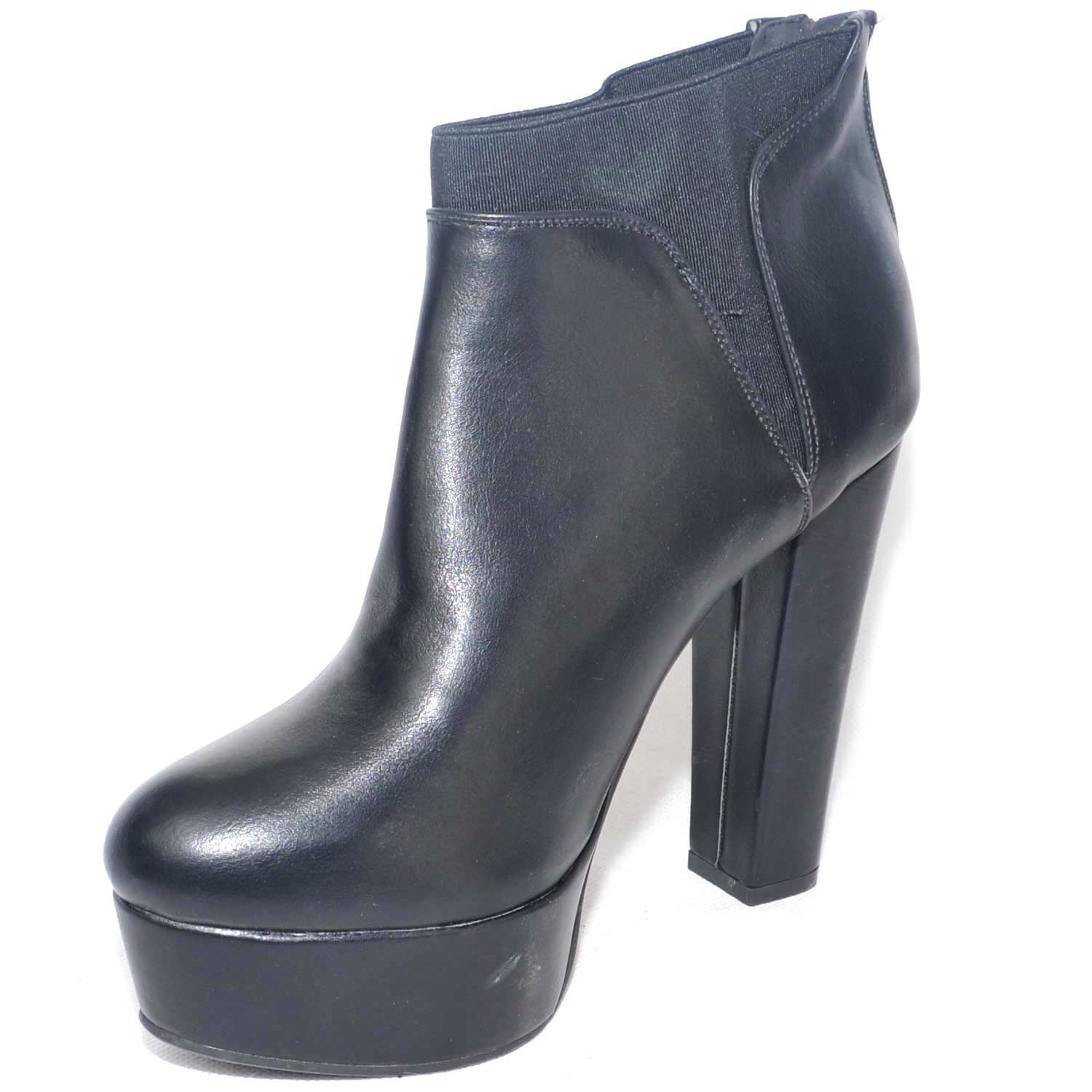 scarpe tronchetti donna plateau nero tacco largo con elastina e zip linea glamour con fondo antiscivolo