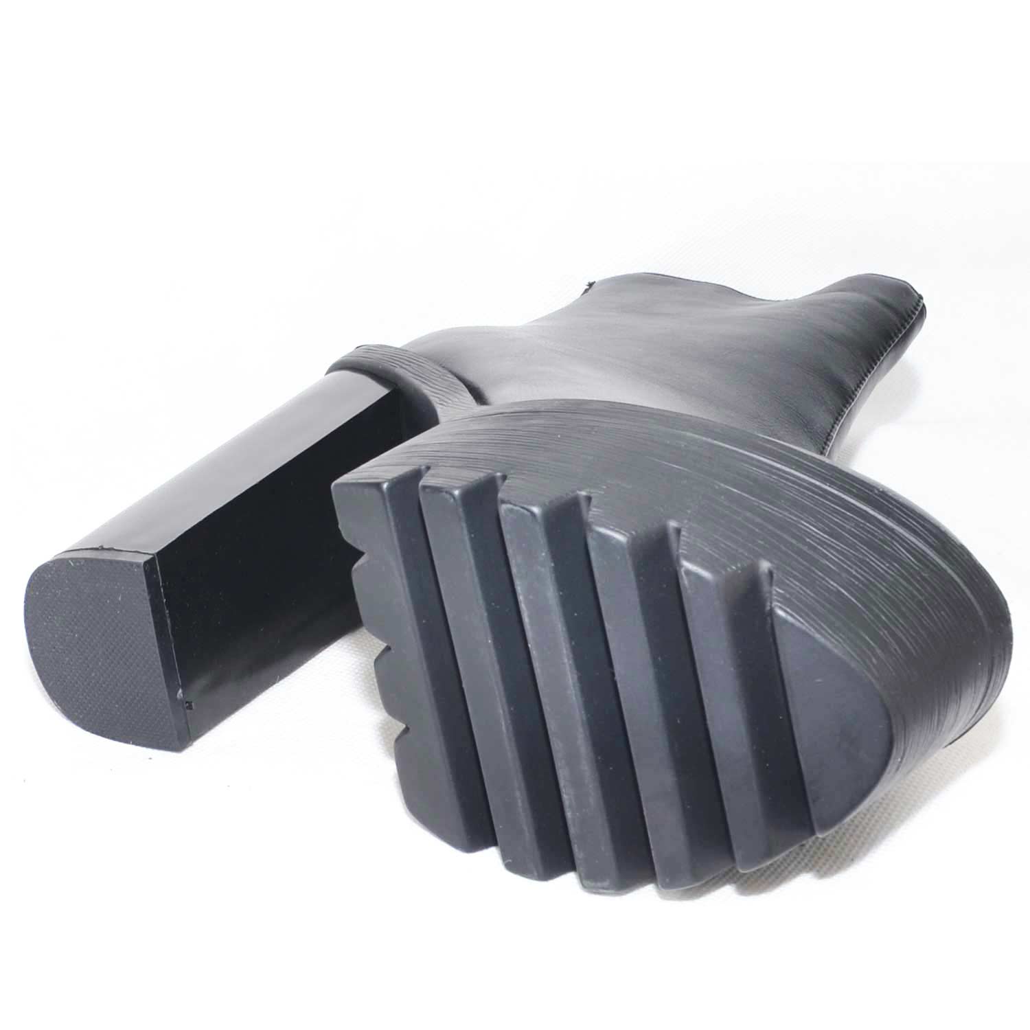 Il tronchetto con gambale alto tinta unita nero è ideale per la donna che ama i tacchi e gli accessori che non passano inosservati. Un modello alto grintoso ma femminile in pelle suede in tinta e tacco con platform importante rivestiti in pelle. Realizzato interamente in nuance nera è facile e rapido da indossare grazie alla zip al tallone e sta bene con ogni abbinamento per dare personalità agli abiti più semplici e per definire un look incisivo.