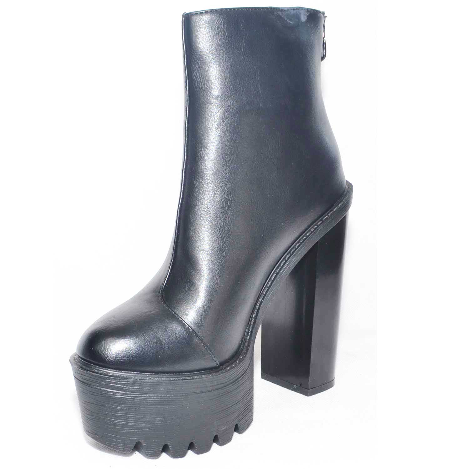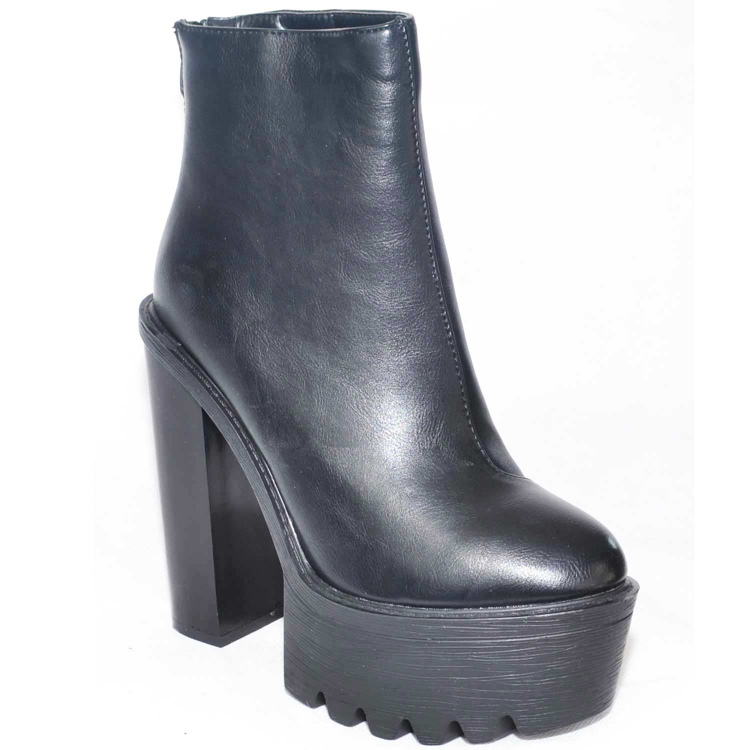scarpe donna tronchetto donna linea glamour con plateau alto e tacco carrarmato roccia antiscivolo