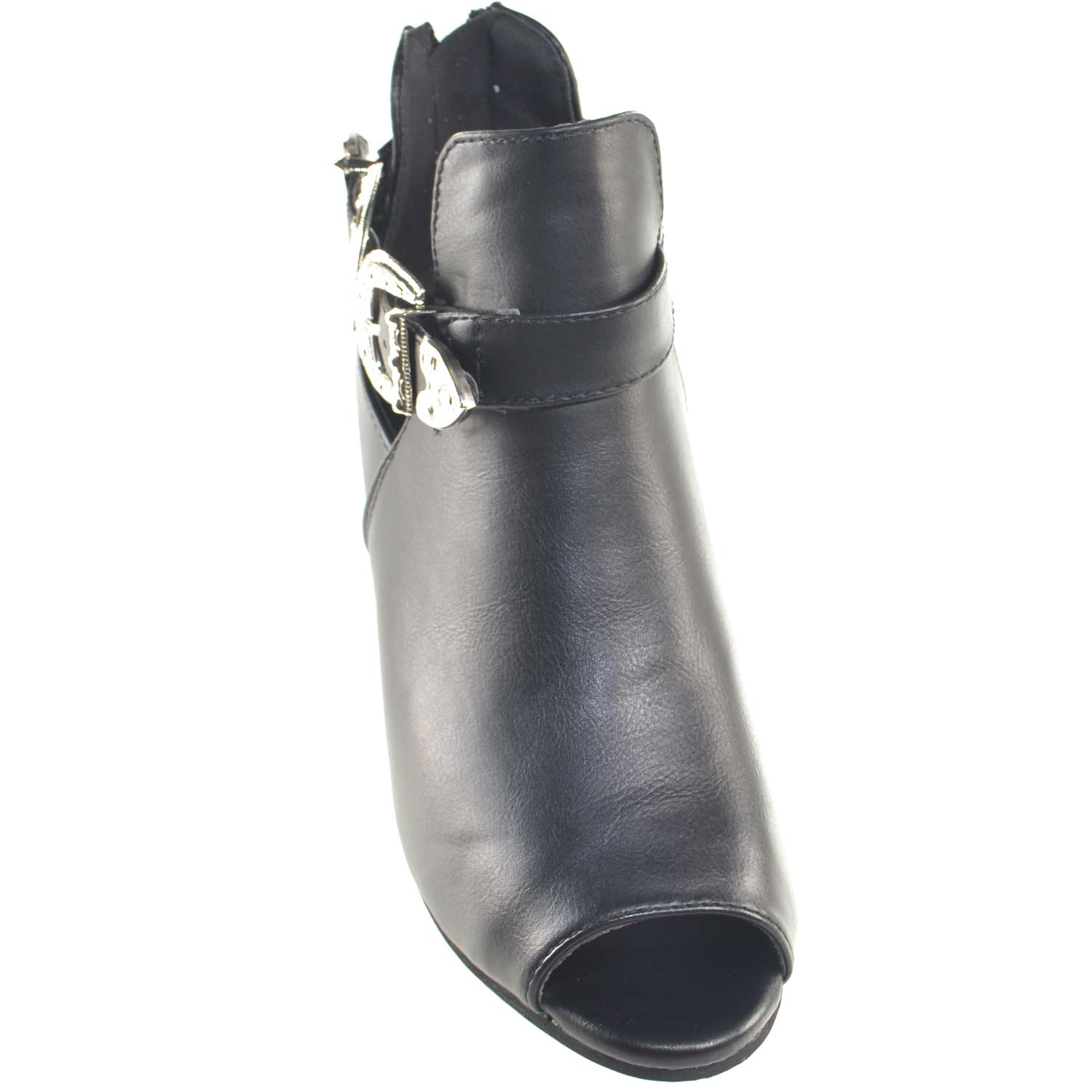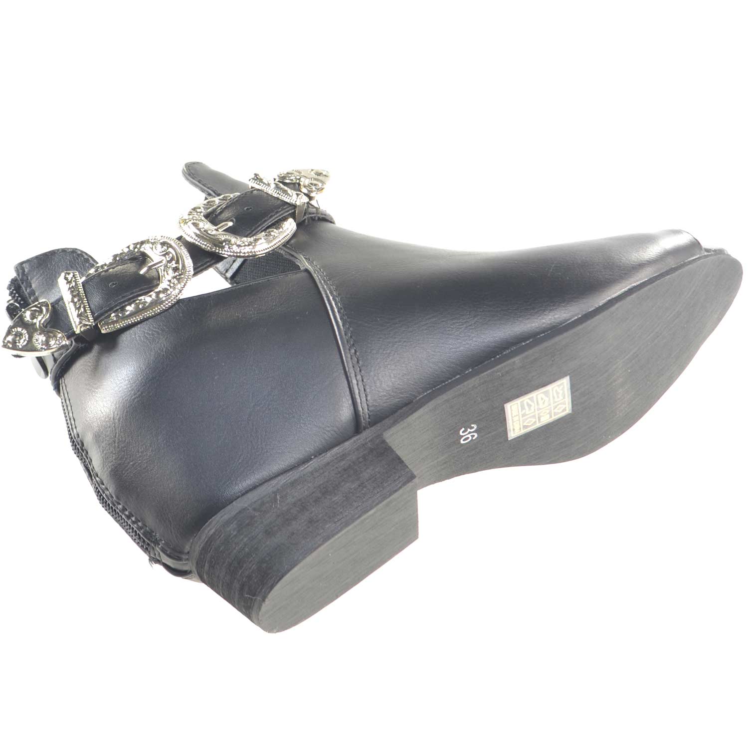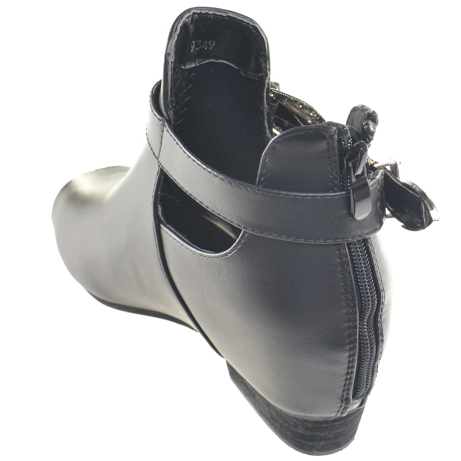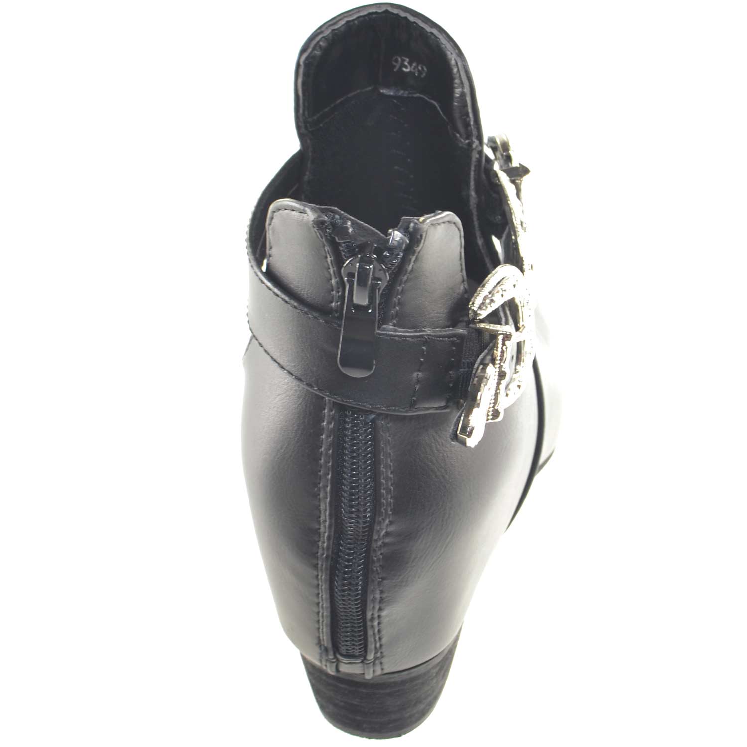 Scarpe donna stivaletto glamour doppia fibbia zip moda tendenza zeppa interna comfort scollo primavera estate
