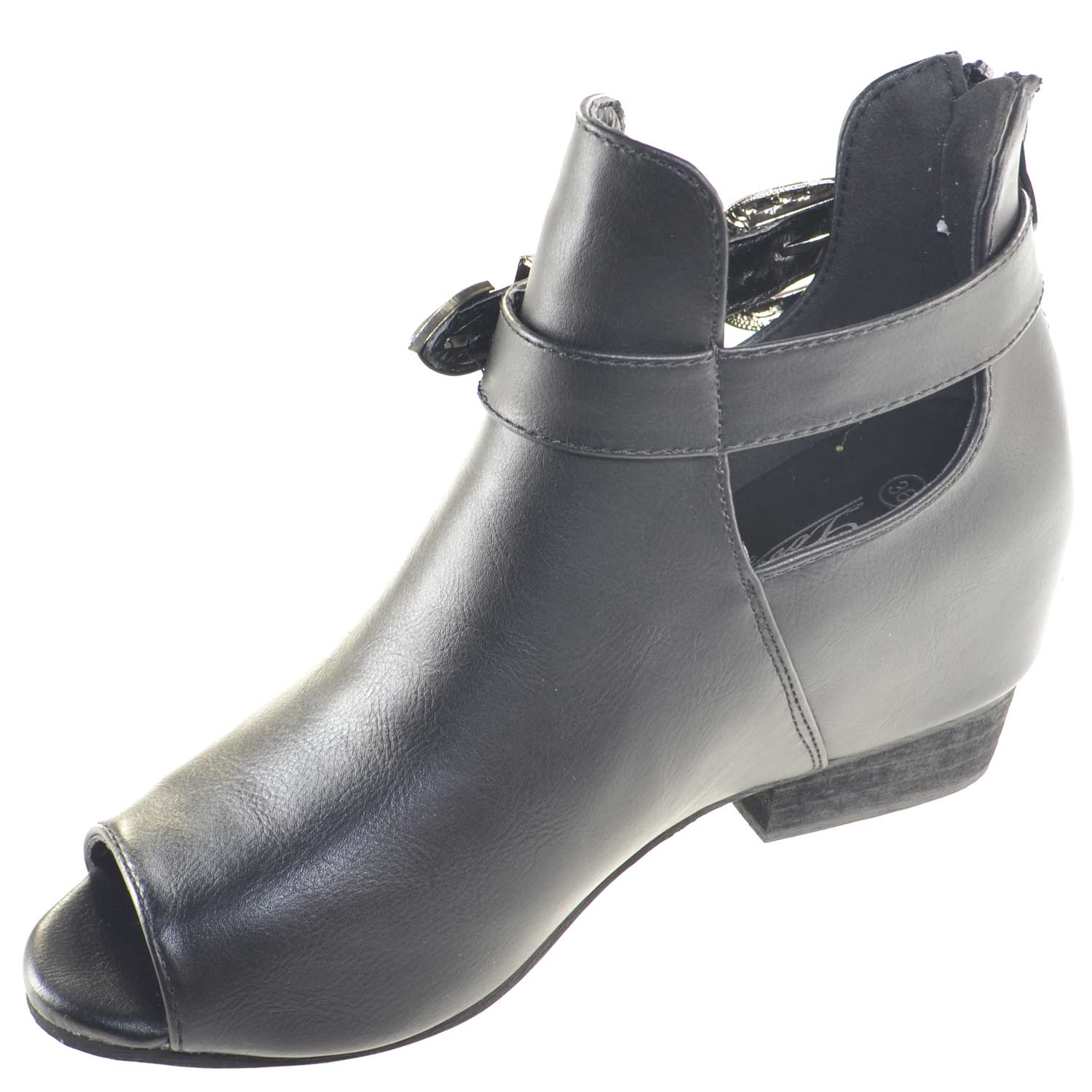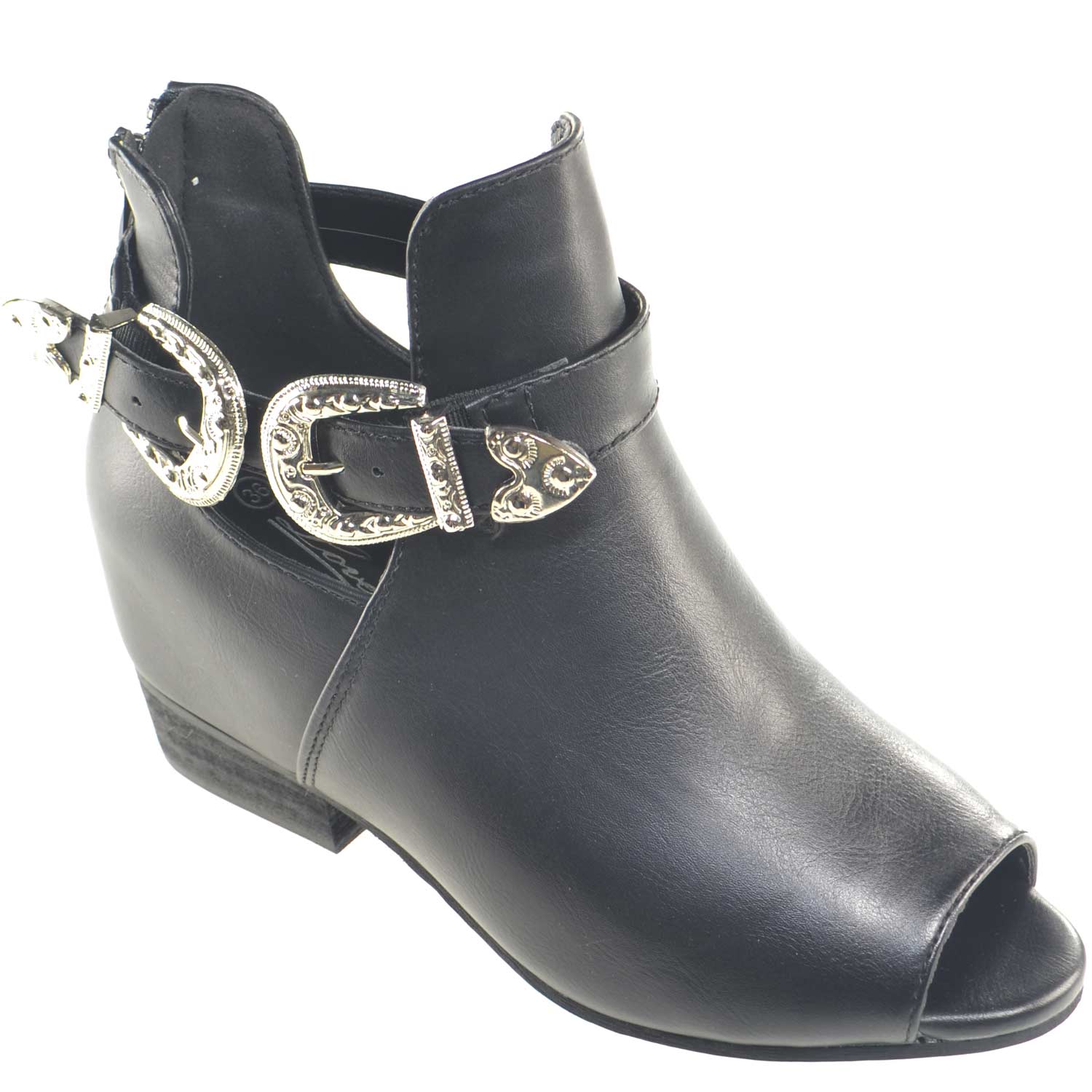 Scarpe donna stivaletti zeppa interno aperto spuntato è un modello femminile intramontabile. La tomaia in ecopelle open toe veste elegantemente il collo del piede e rende la calzatura un modello ideale per la donna che esalta la propria femminilità con accessori cinturino doppia fibbia di carattere e di facile chiusura grazie anche alla zip. Uno stivaletto estivo elegante e comodo grazie al tacco zeppa comfort comodissimo, dal design tradizionale ma sempre di tendenza con colore facile da abbinare e elegante perfetto per le occasioni importanti della donna di classe che ama essere seducente.