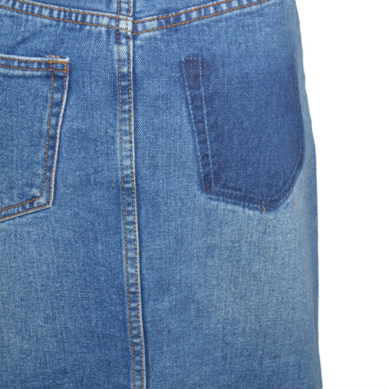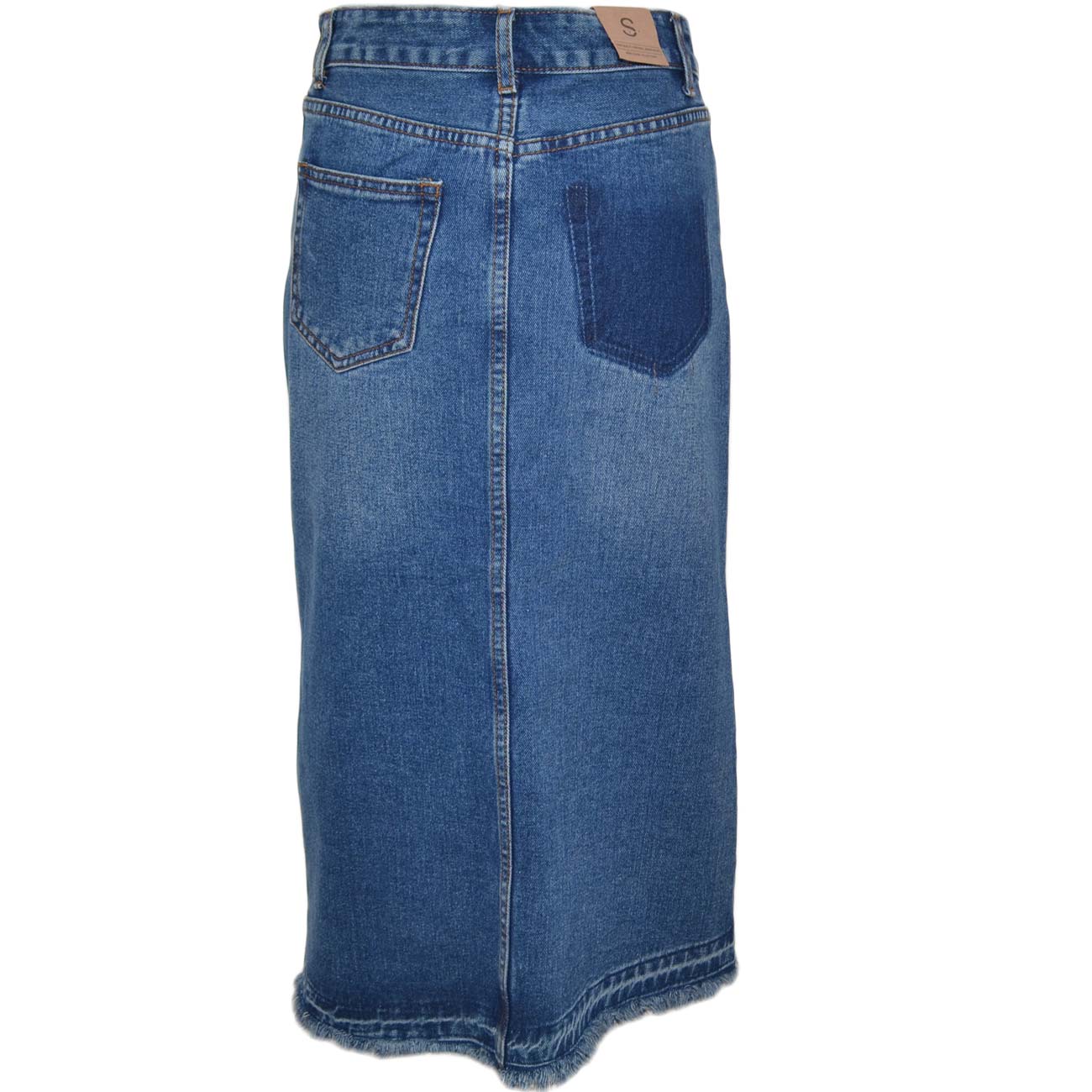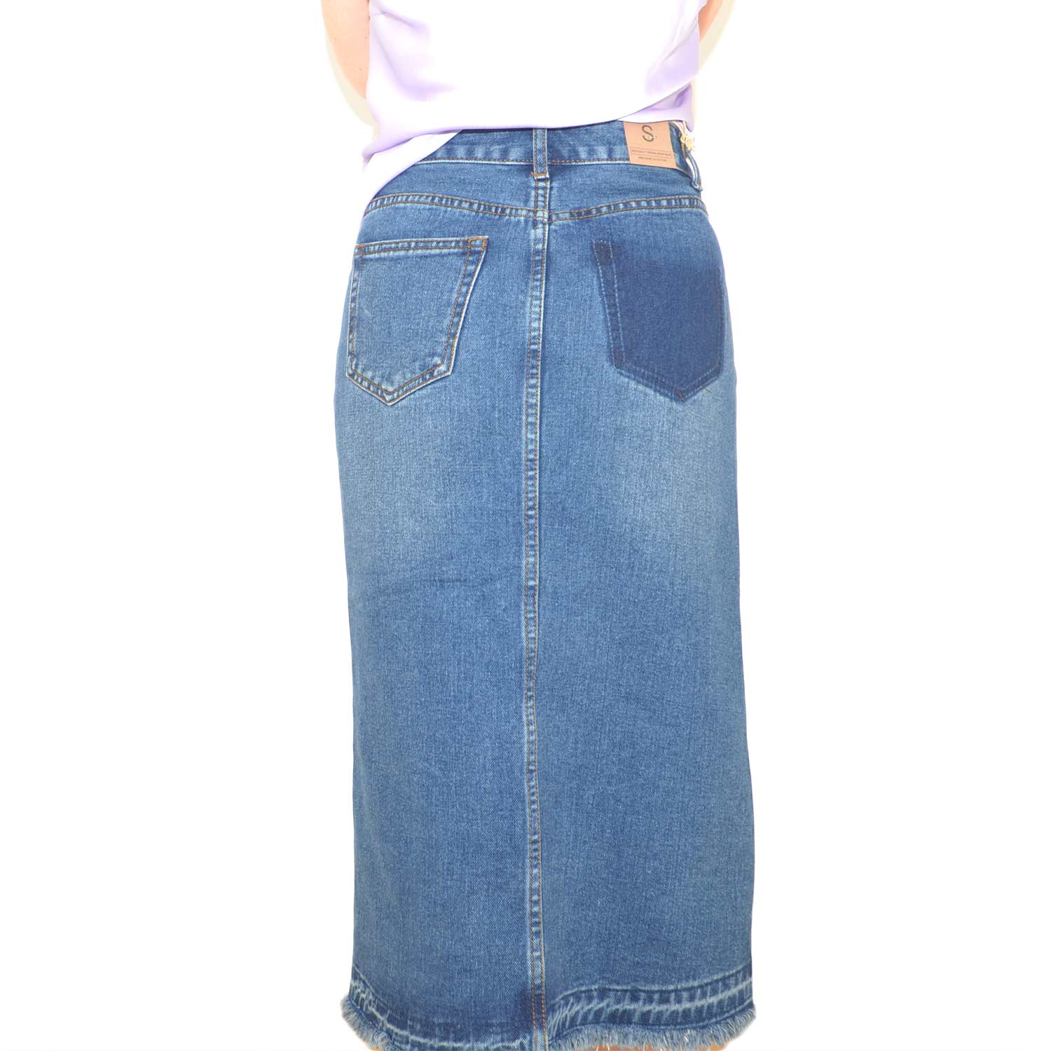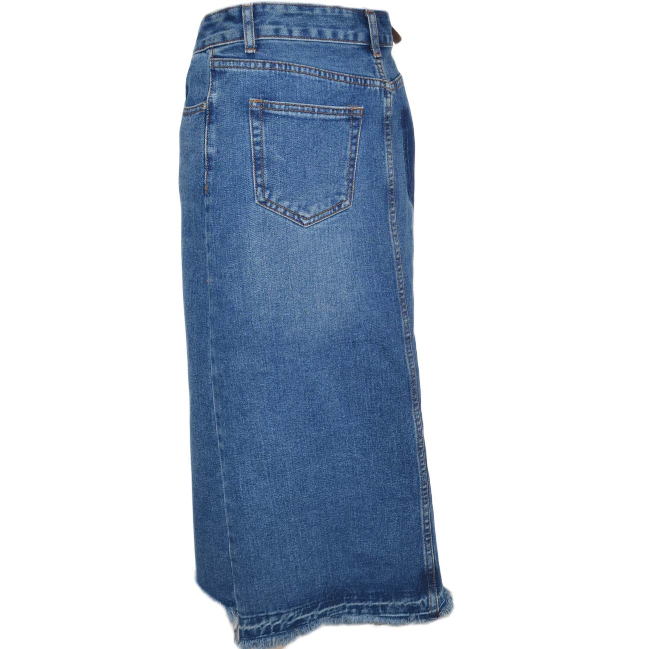 STILE: questa gonna basic in jeans si presenta sobria ed elegante. La lunghezza media e il lavaggio alla moda creano un look adatto a qualsiasi occasione. Spacco ampio presente nella parte anteriore