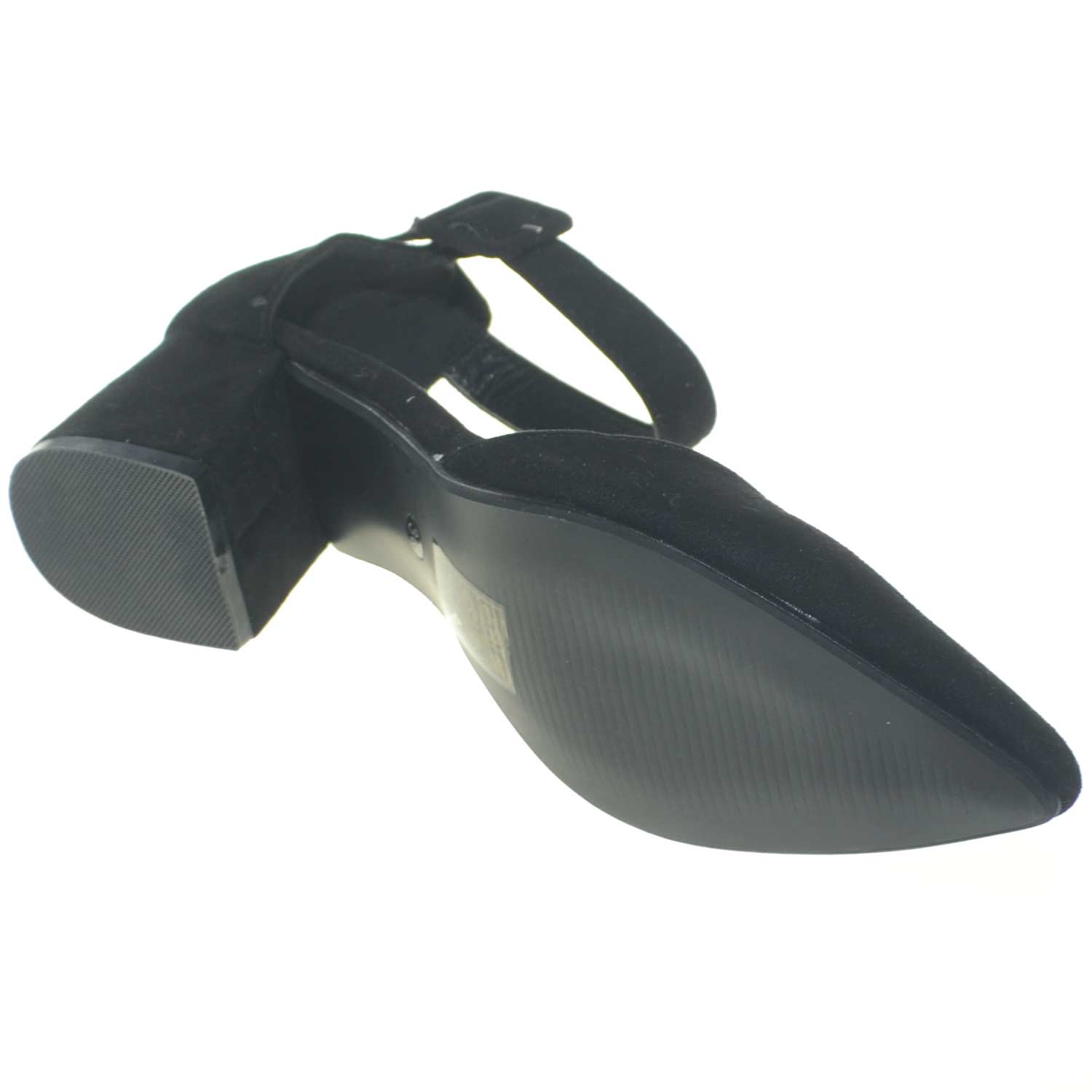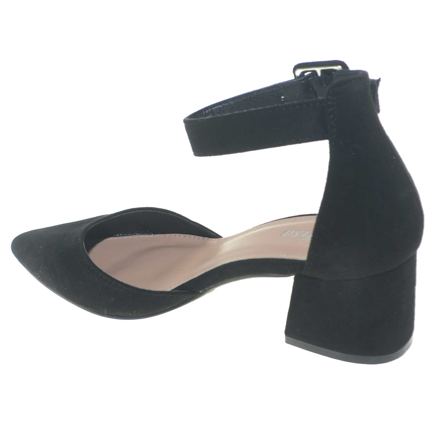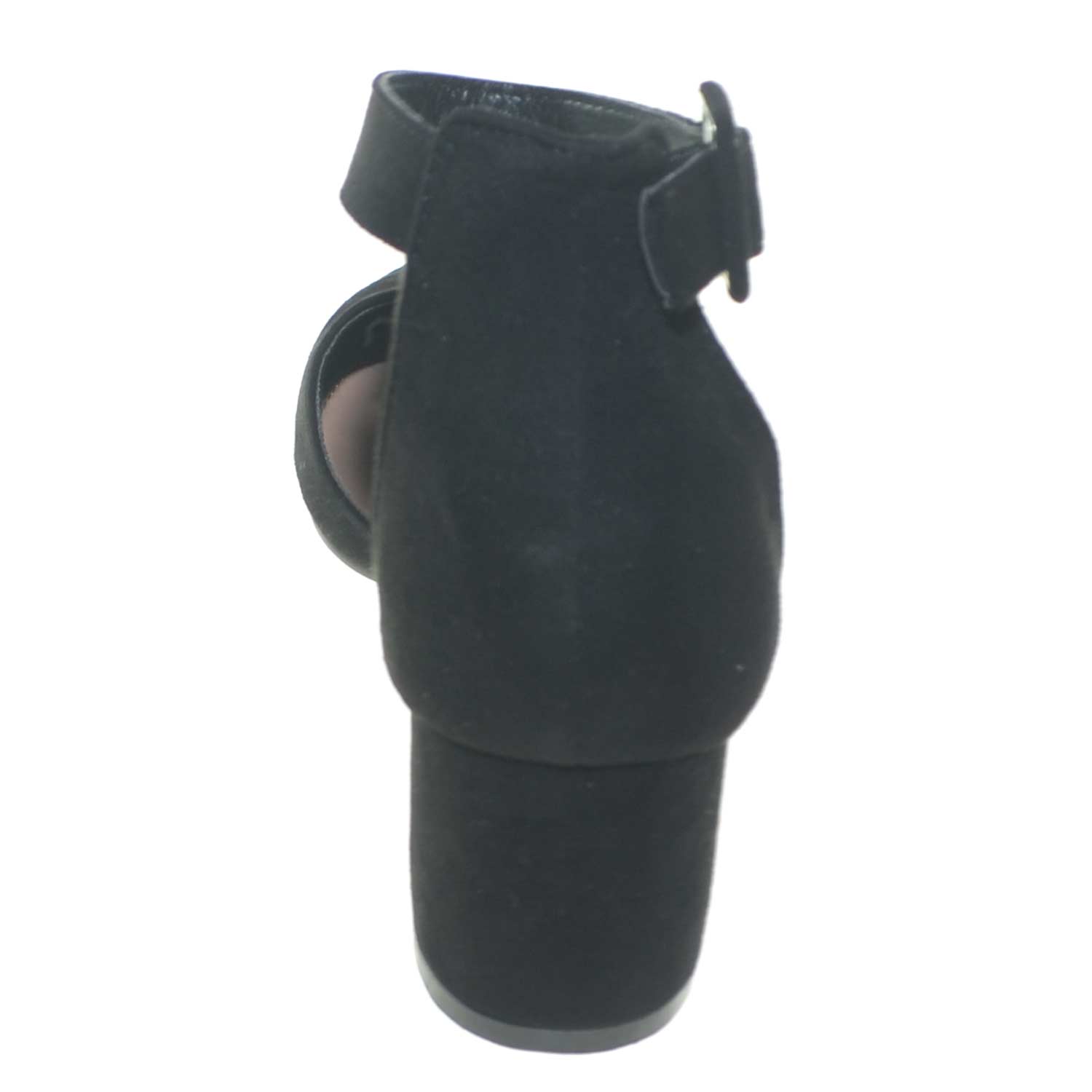 Sandalo tacco comfort aperto a punta in camoscio nero con tacco e cinturino alla caviglia glamour
