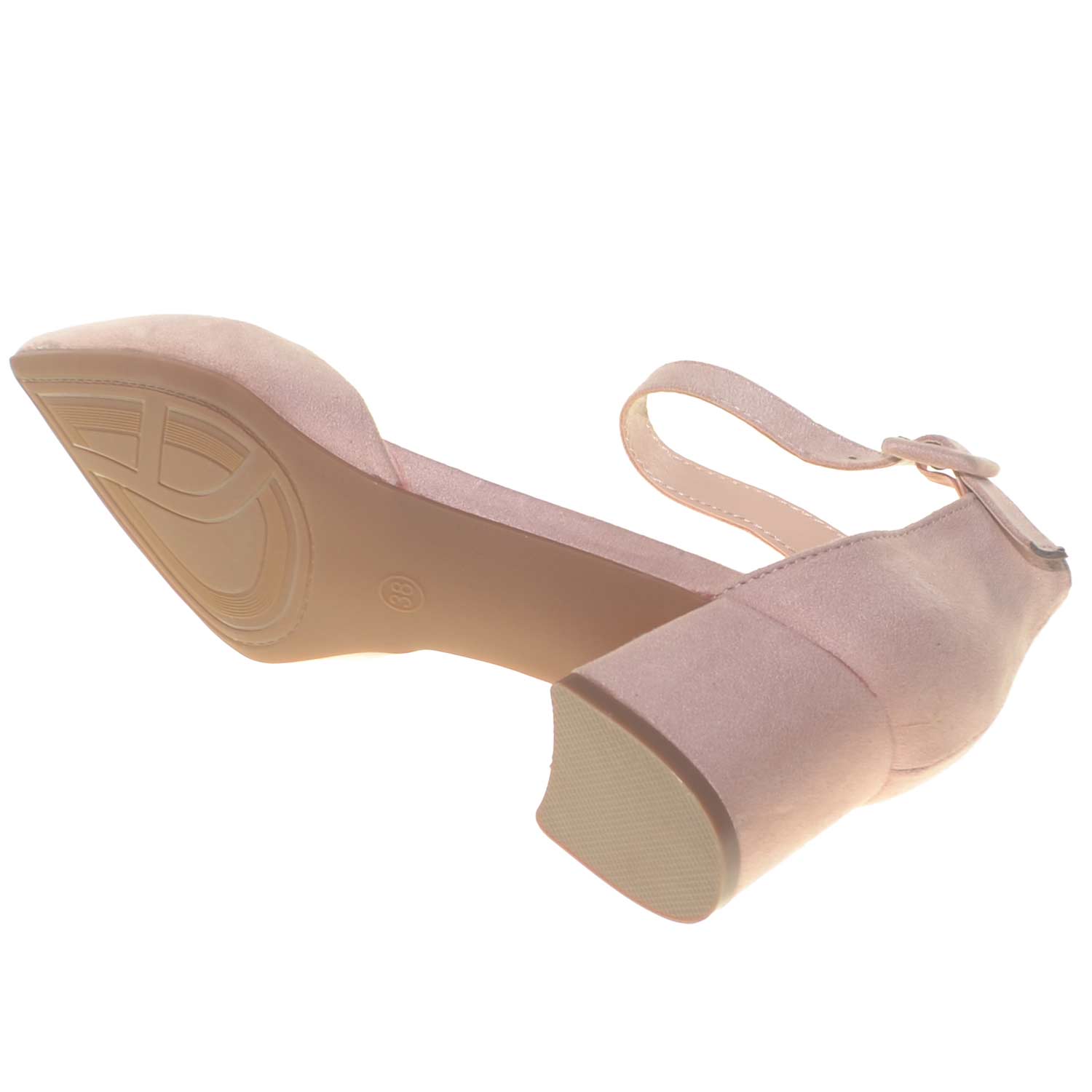 Sandalo tacco comfort aperto a punta in camoscio rosa cipria con tacco e cinturino alla caviglia glamour
