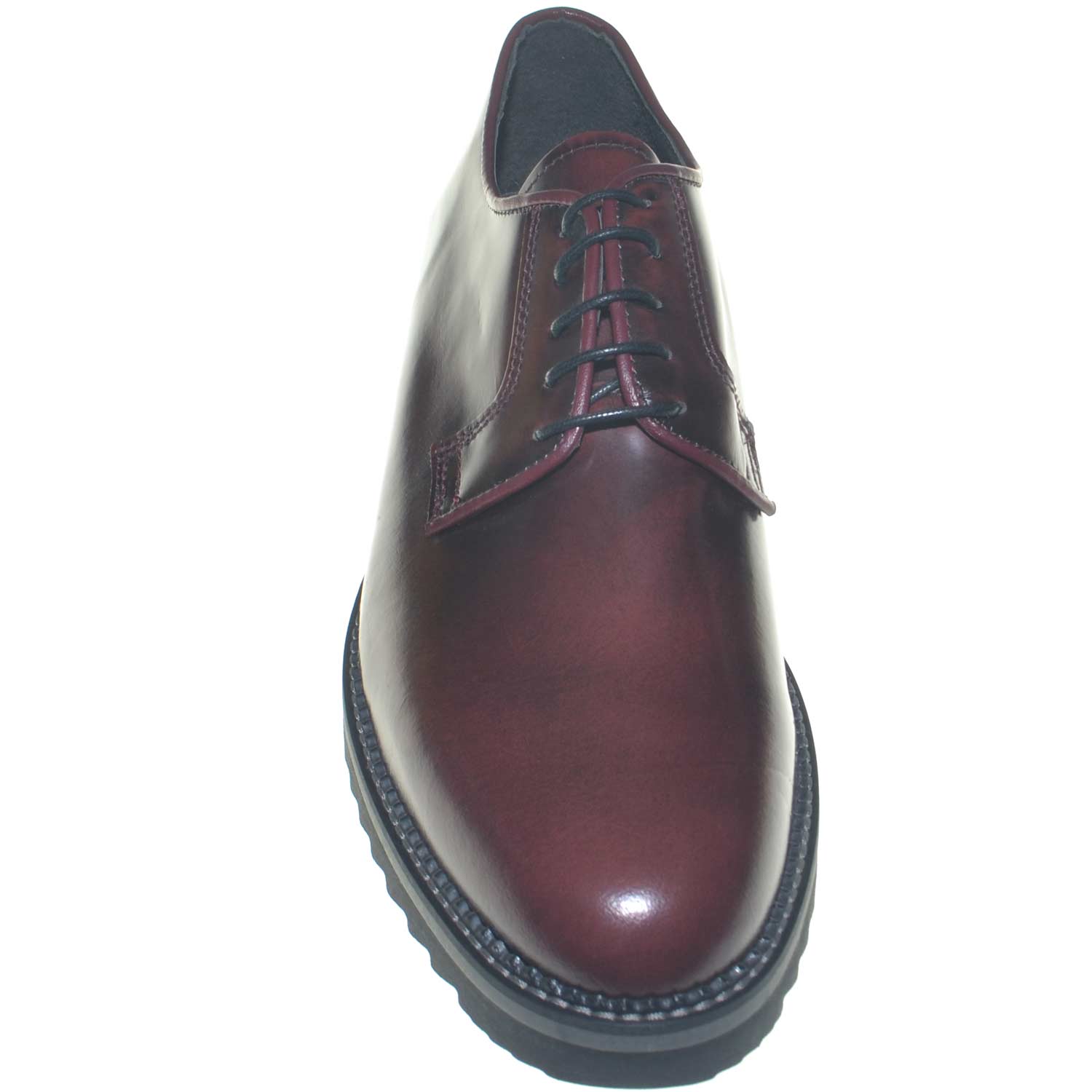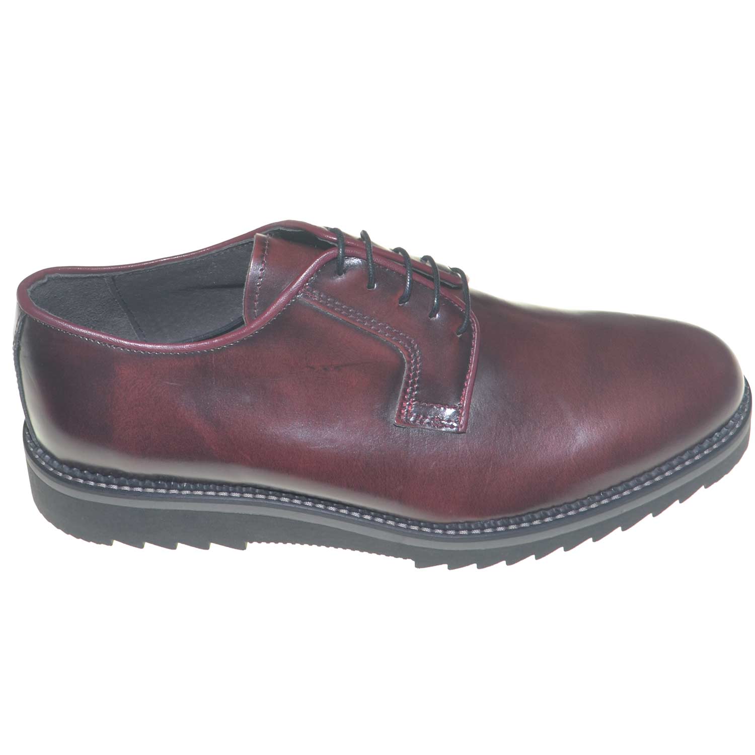 Le scarpe stringate color bordeaux spazzolato sono totalmente in vera pelle abrasivato lucida. La calzata è resa confortevole dalla stringatura regolabile francese classica a chiusura rapita. La suola in gomma a tacco basso è adatto anche con outfit business. Un modello classico di moda maschile perfetto in situazioni formali bella anche con outfit casual.