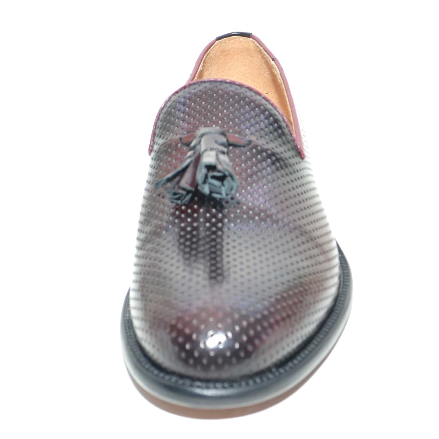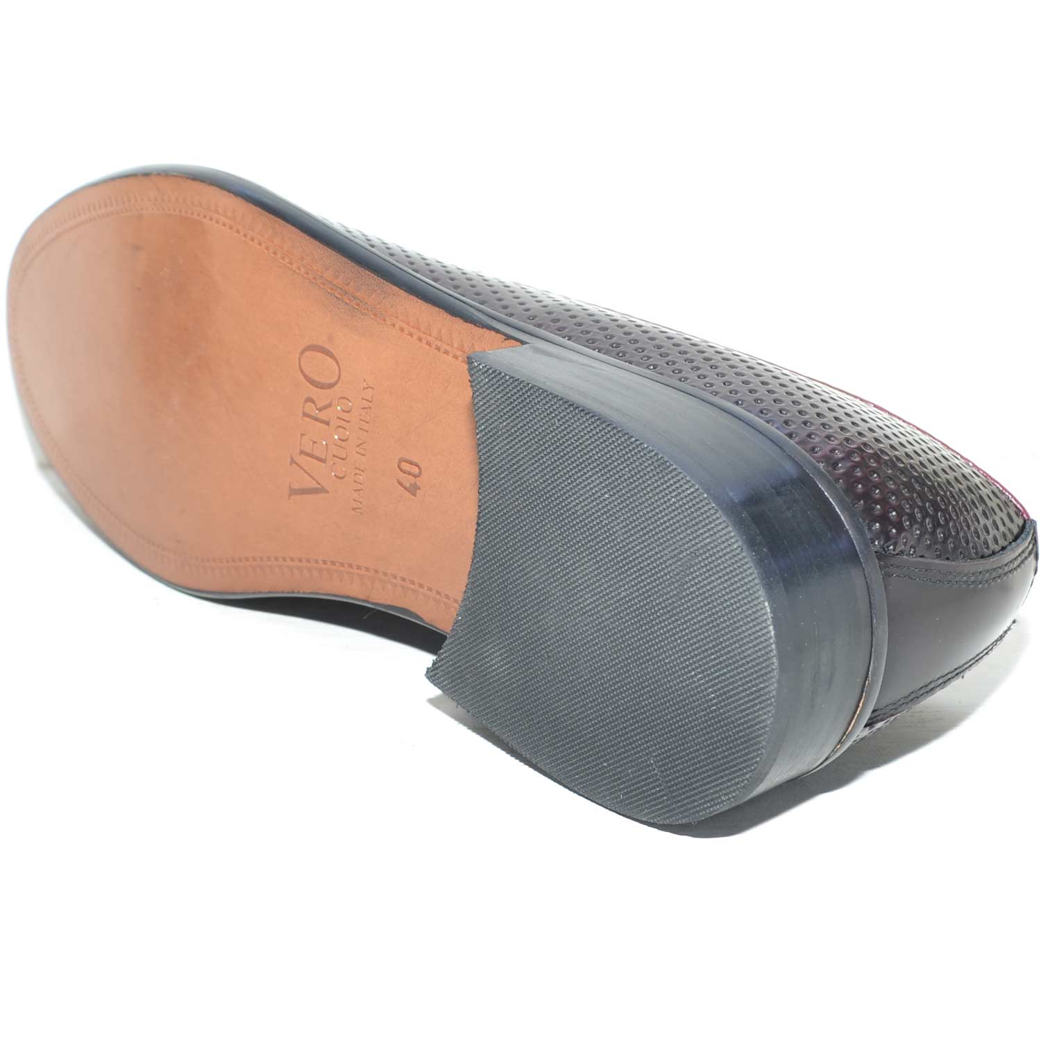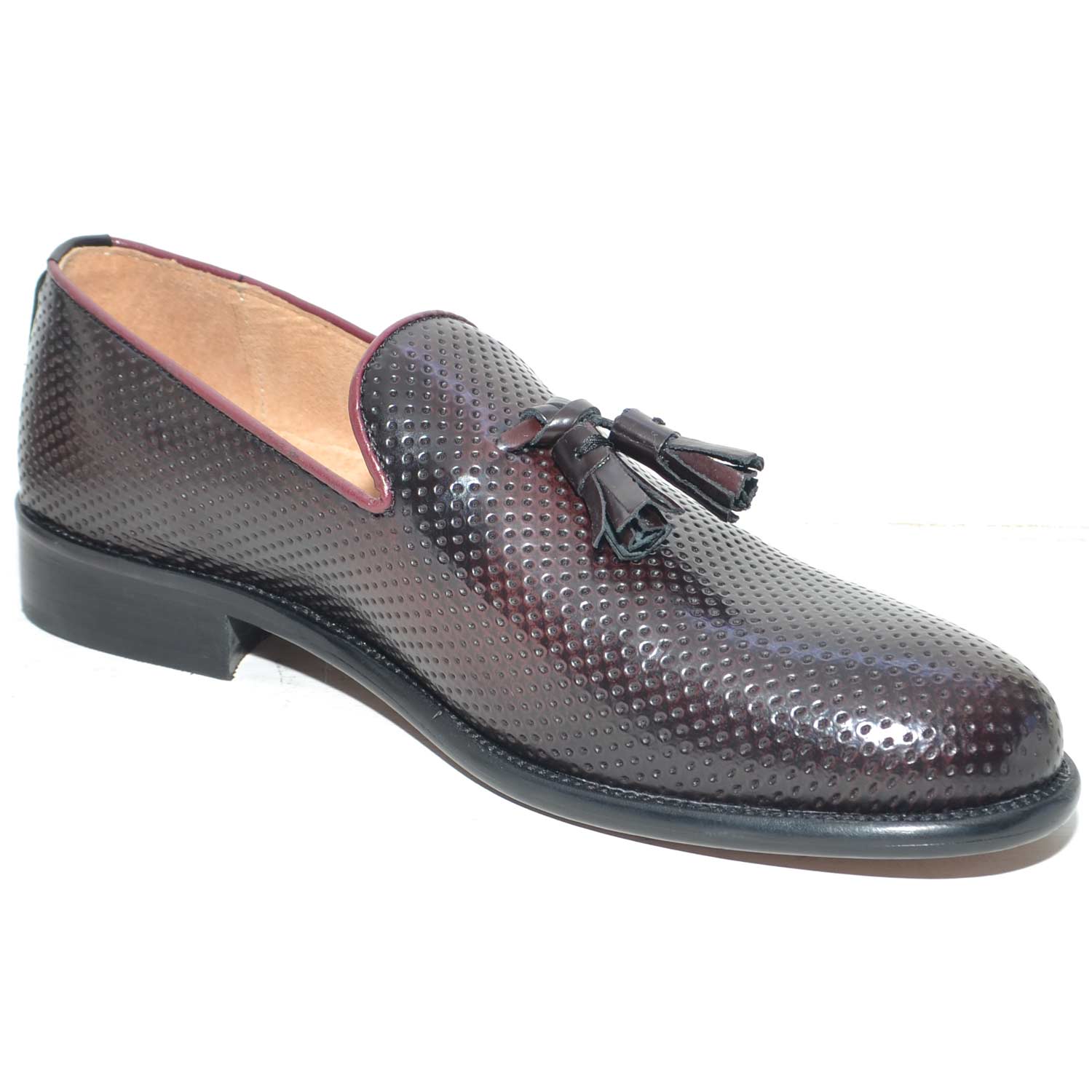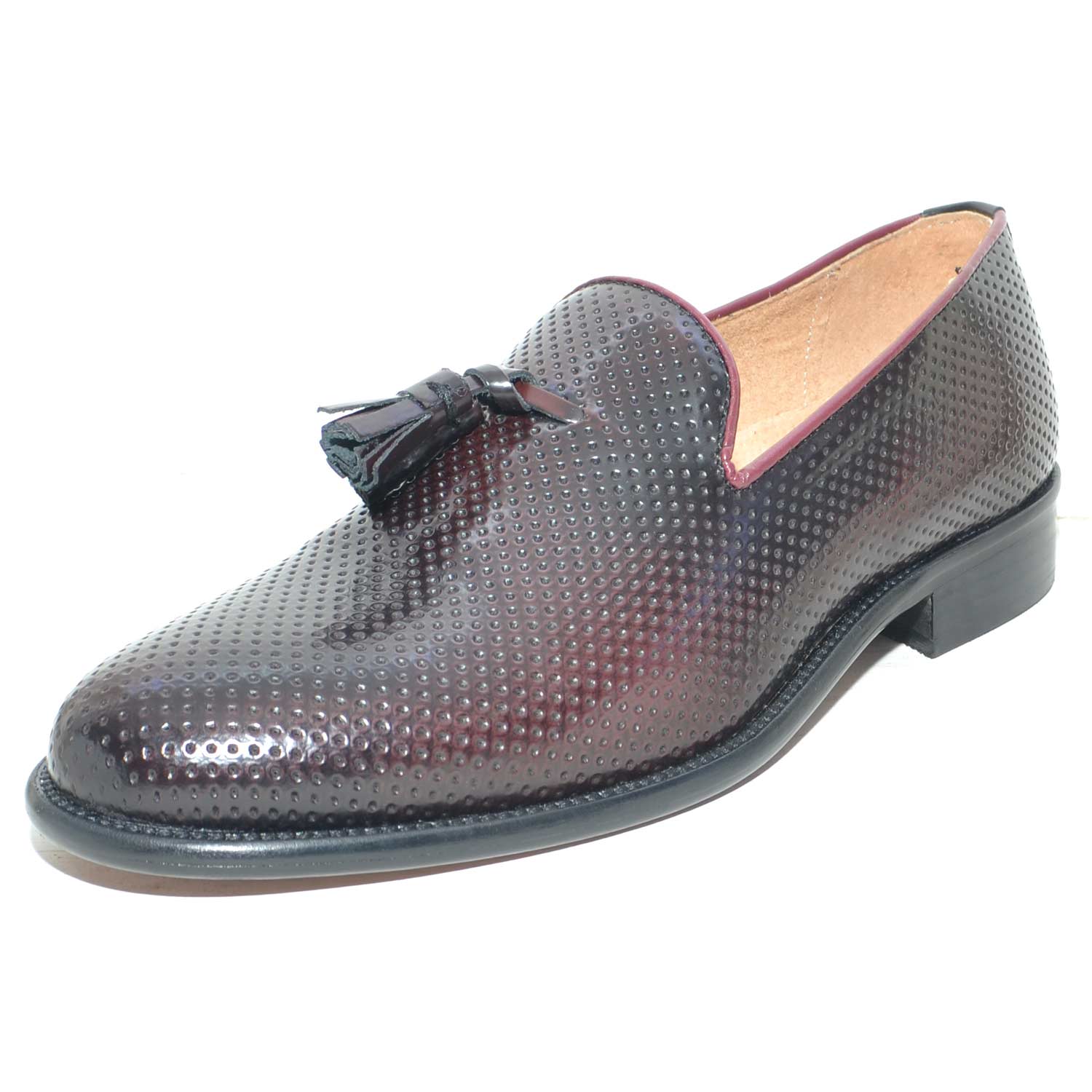 Scarpe uomo mocassino microforato in vera pelle abrasivato lucido con bon bon fondo cuoio made in italy comfort man