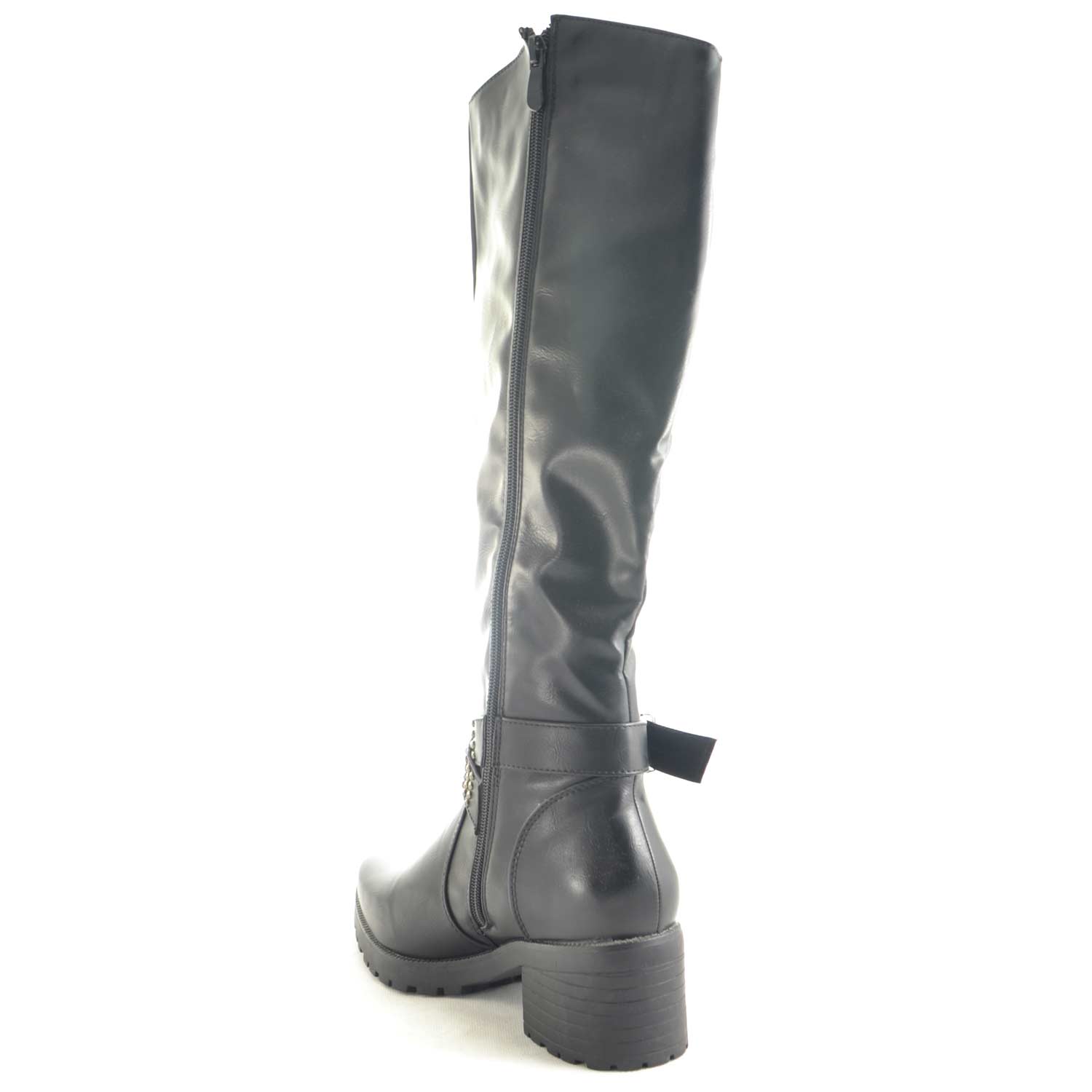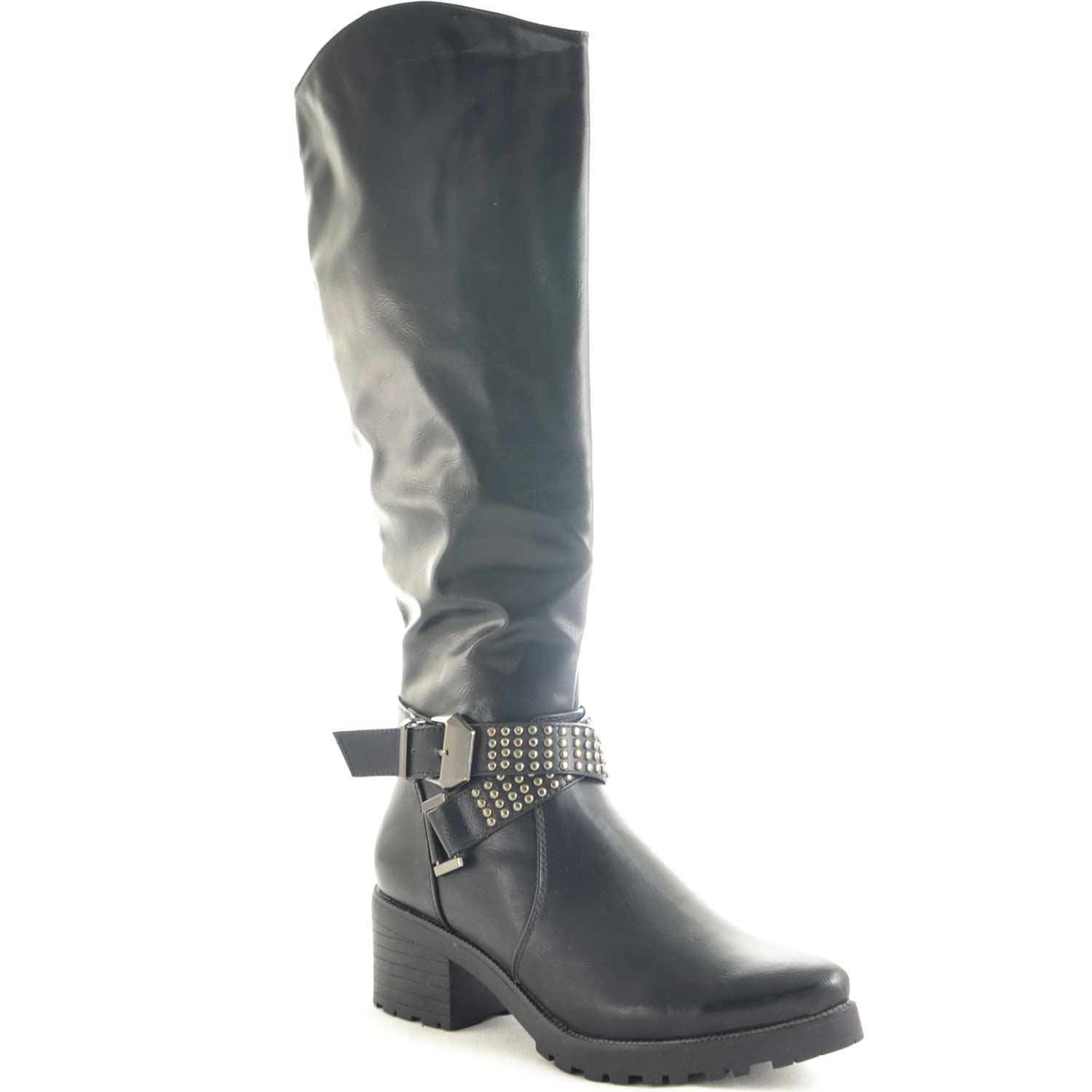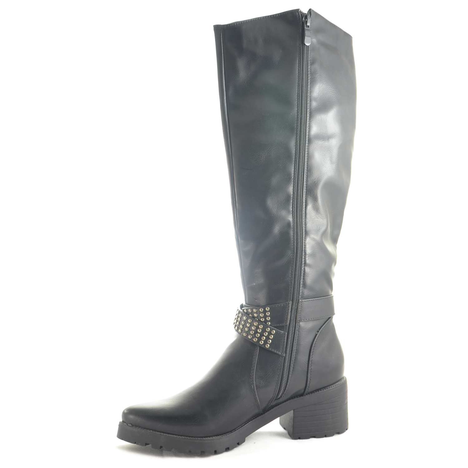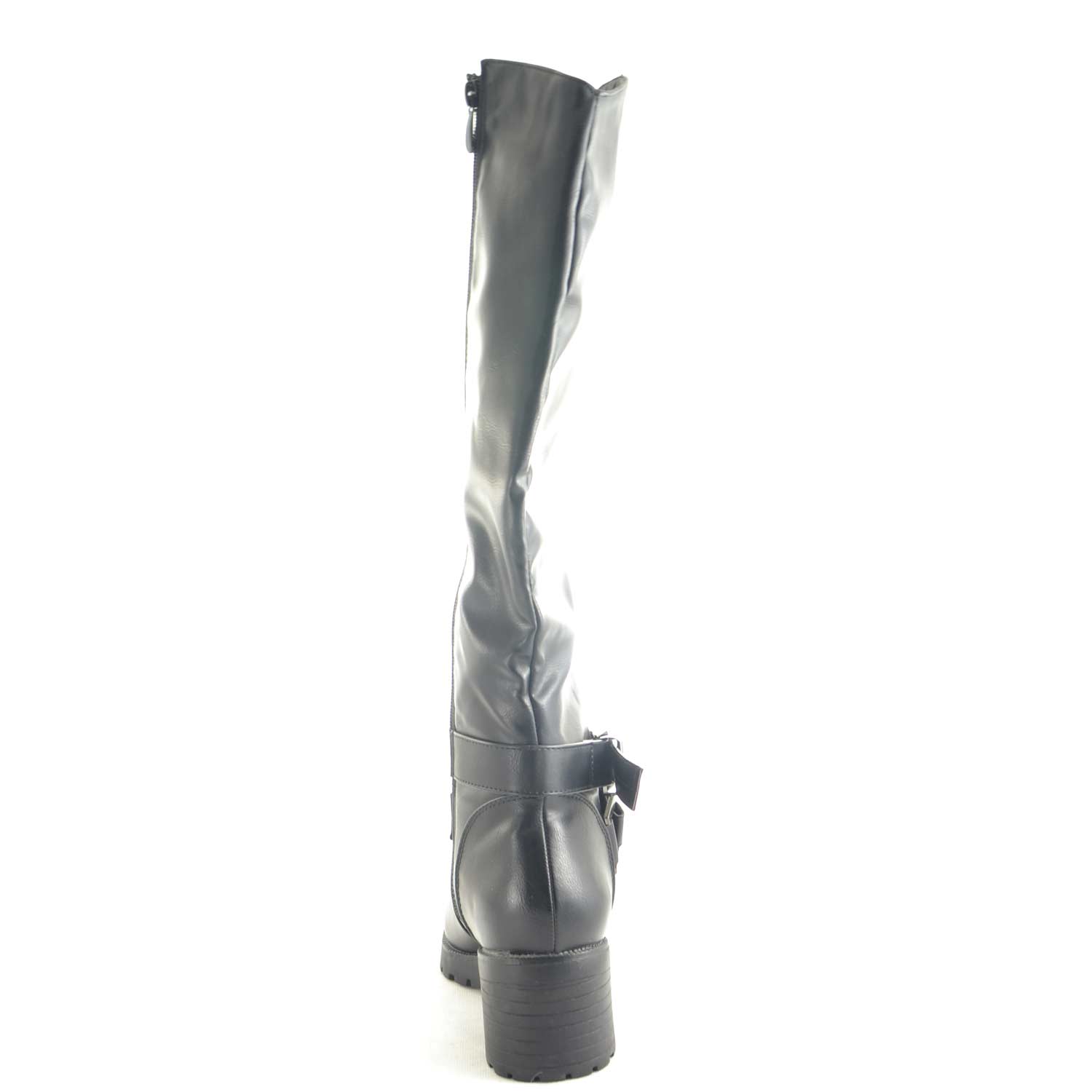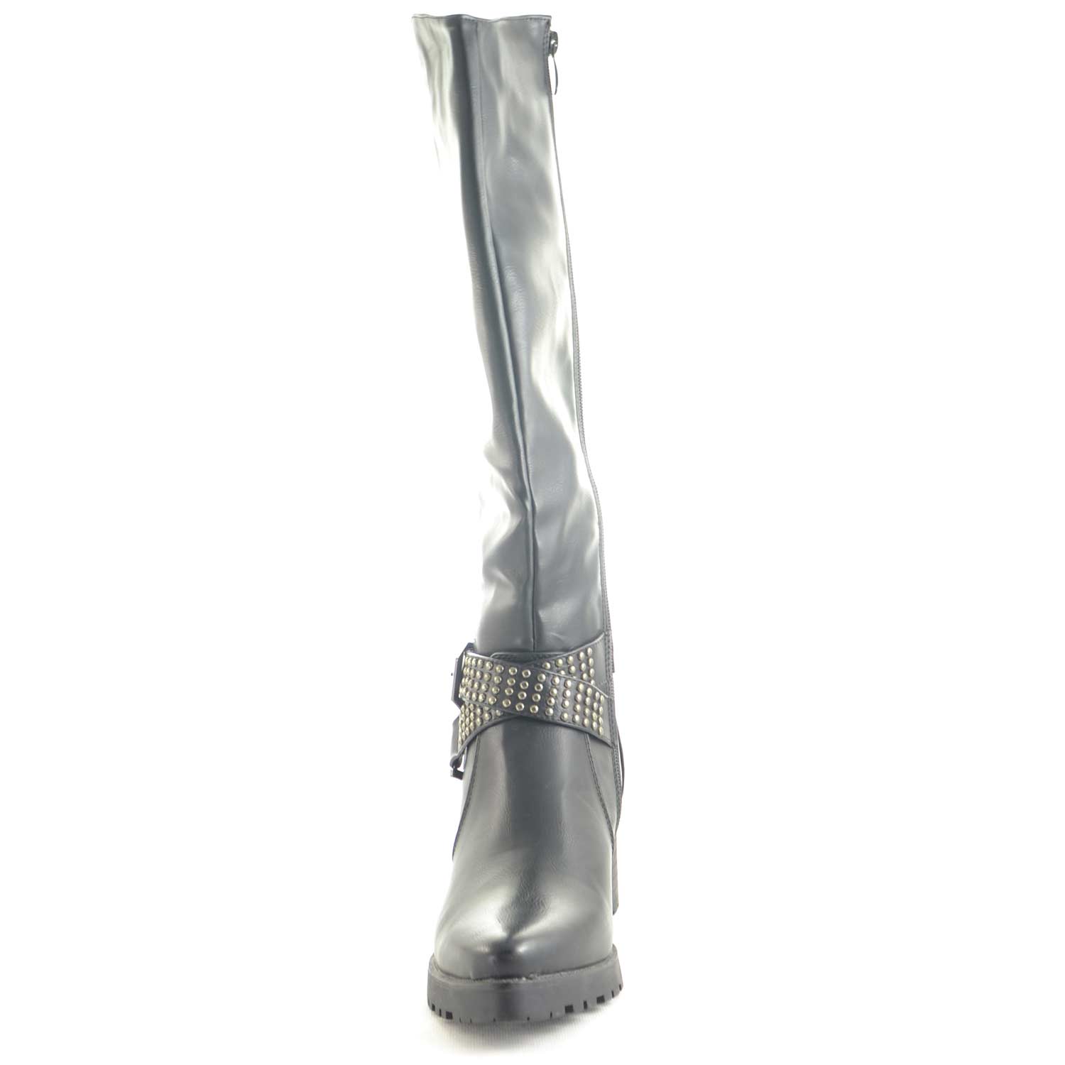 Stivale alto donna sotto ginocchio in ecopelle nero con fibbie e borchie