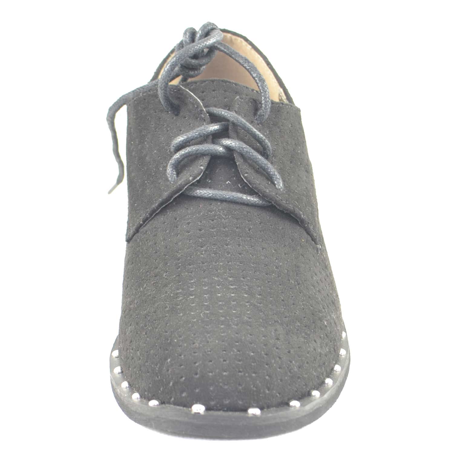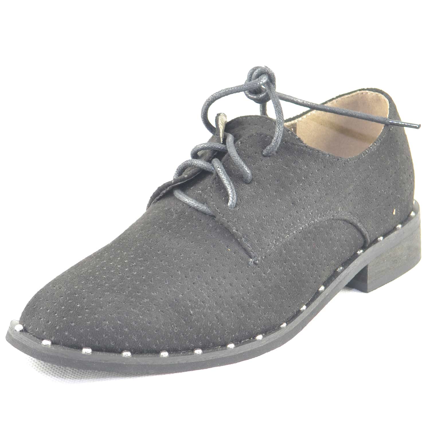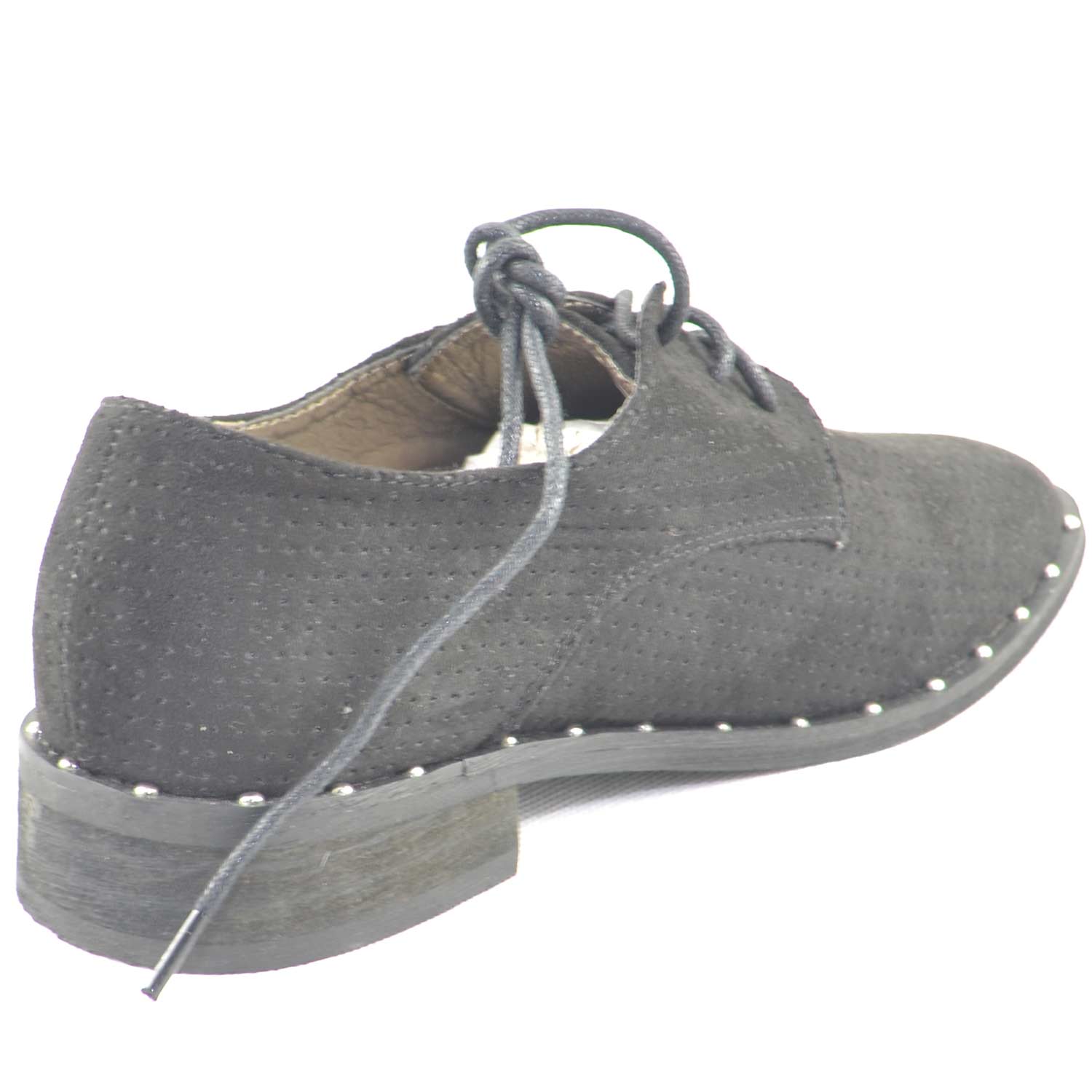 Scarpe donna francesine parigine estive camoscio nero forato fondo applicazioni borchiate