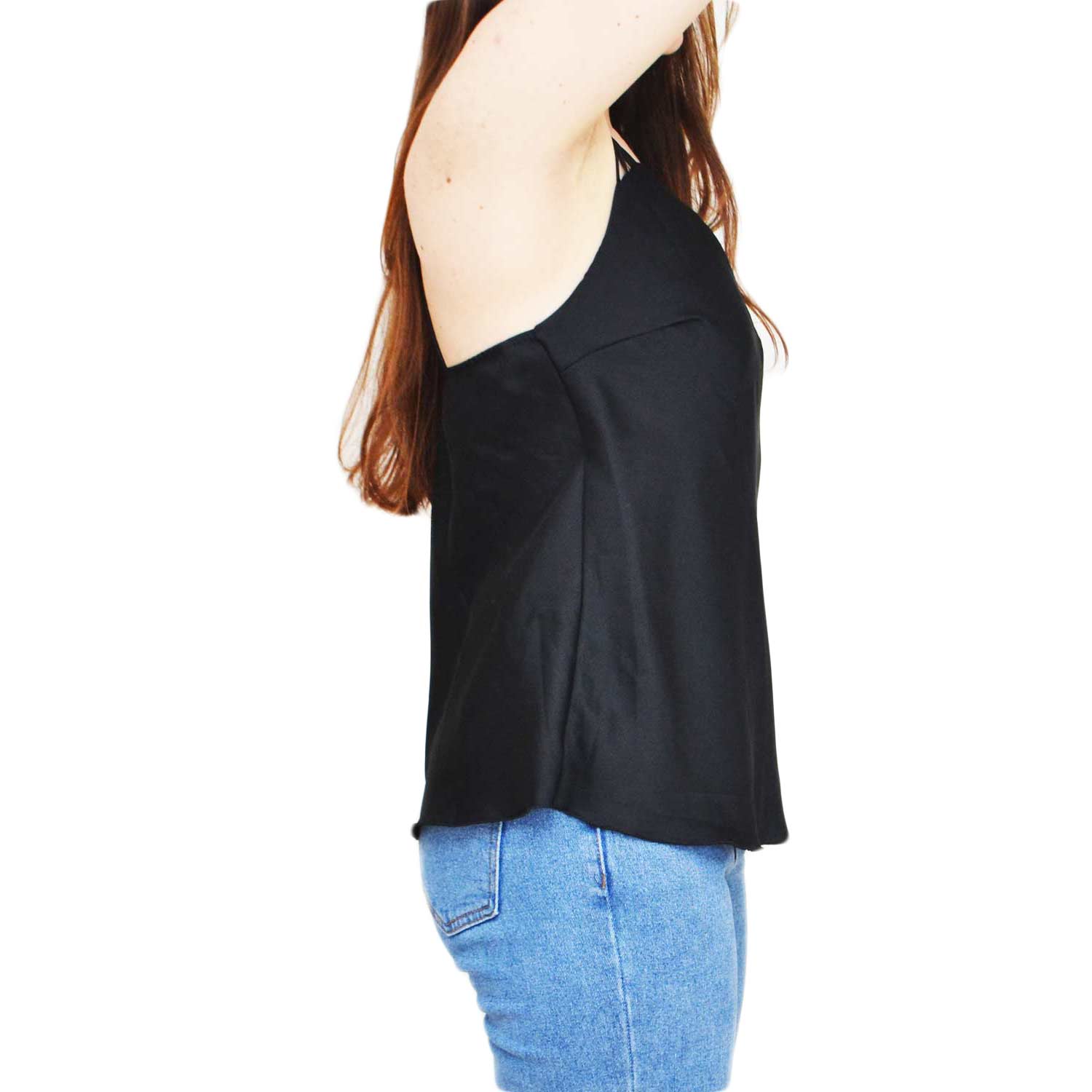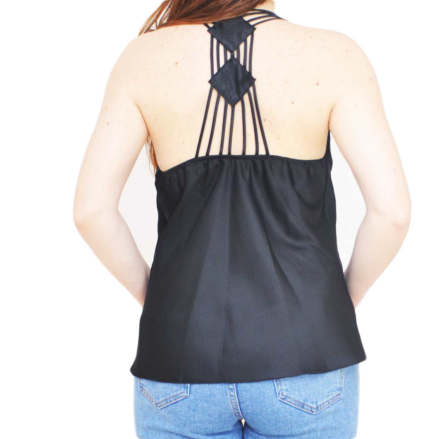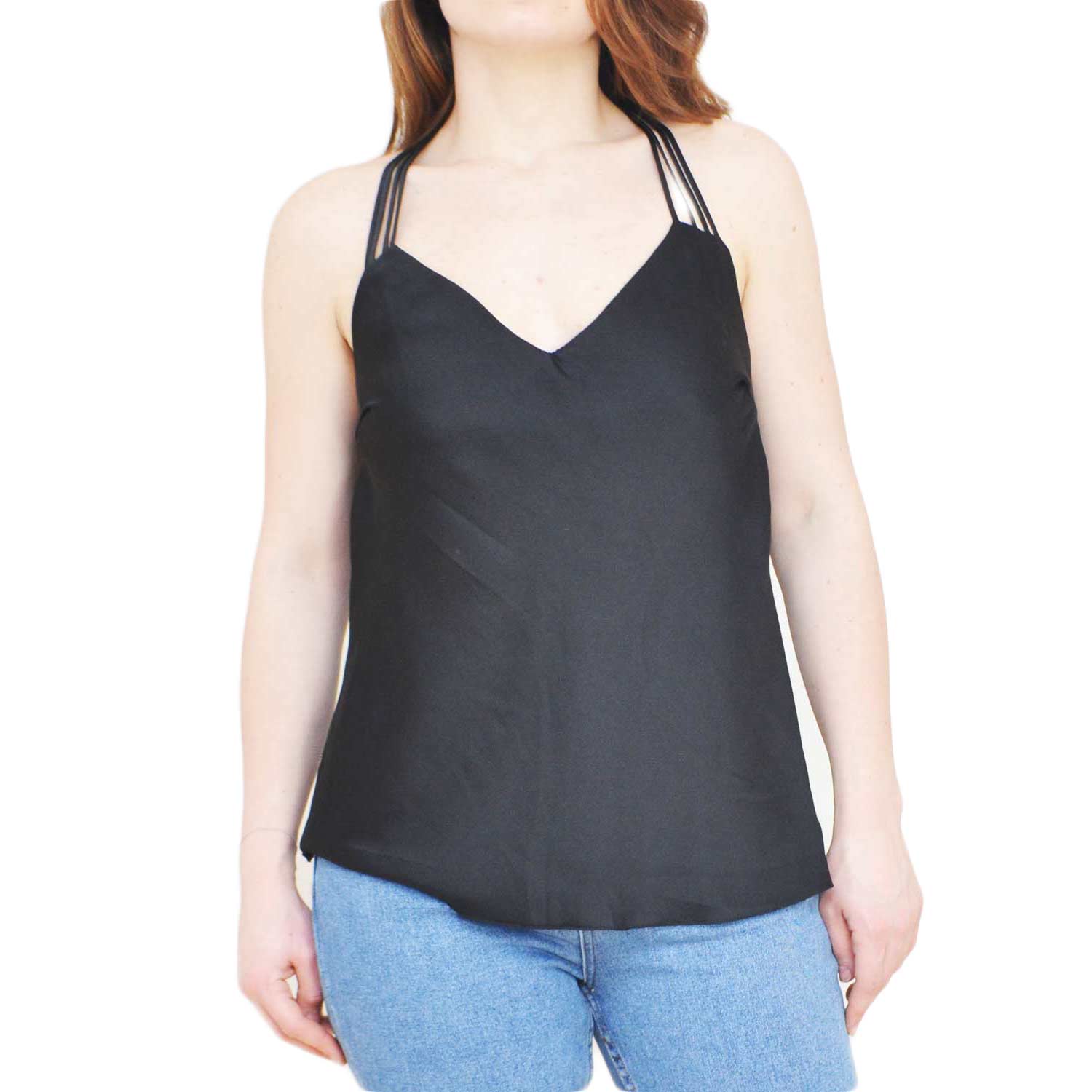 TOP SOTTOGIACCA NERO DONNA IN RASO CON SCOLLO A V E INTRECCIO SULLA SCHIENA SCOPERTA ELEGANTE GLAMOUR MODA