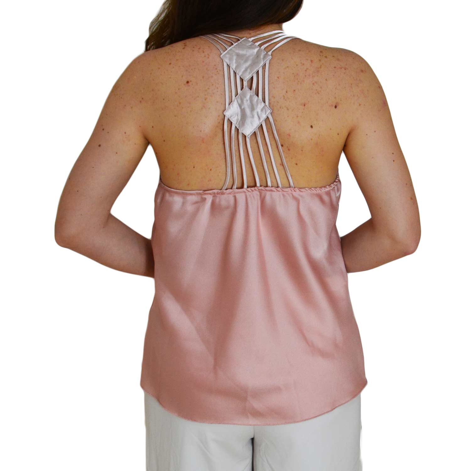 TOP SOTTOGIACCA ROSA CIPRIA DONNA IN RASO CON SCOLLO A V E INTRECCIO SULLA SCHIENA SCOPERTA ELEGANTE GLAMOUR MODA