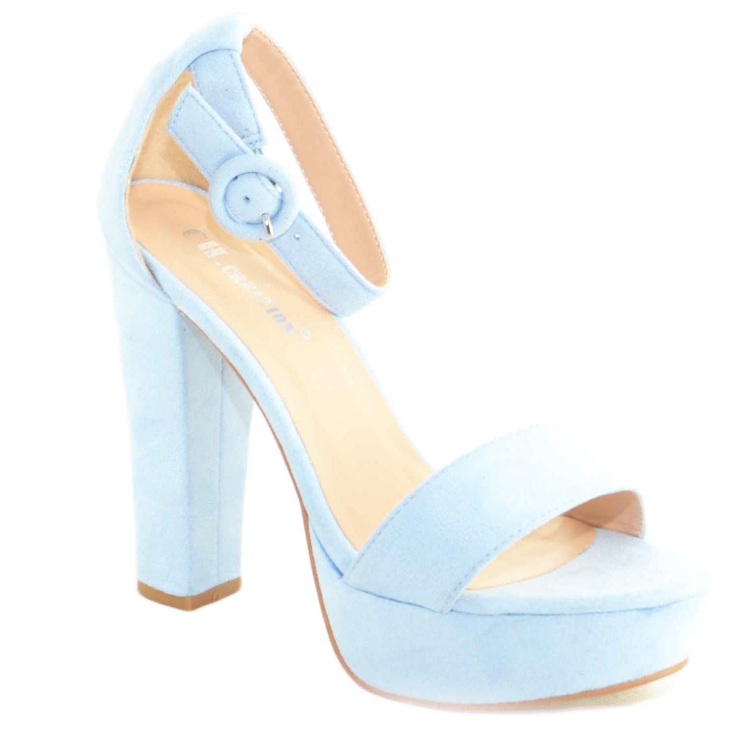 Sandalo con tacco alto e plateau allacciato alla caviglia color CELESTE estate 2018 glamour Codice: 3530