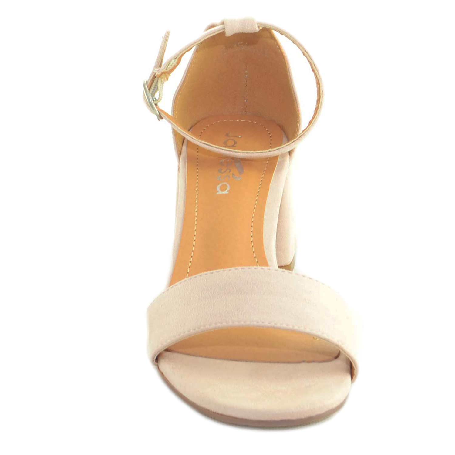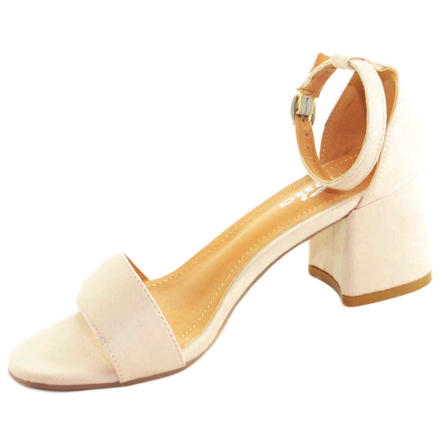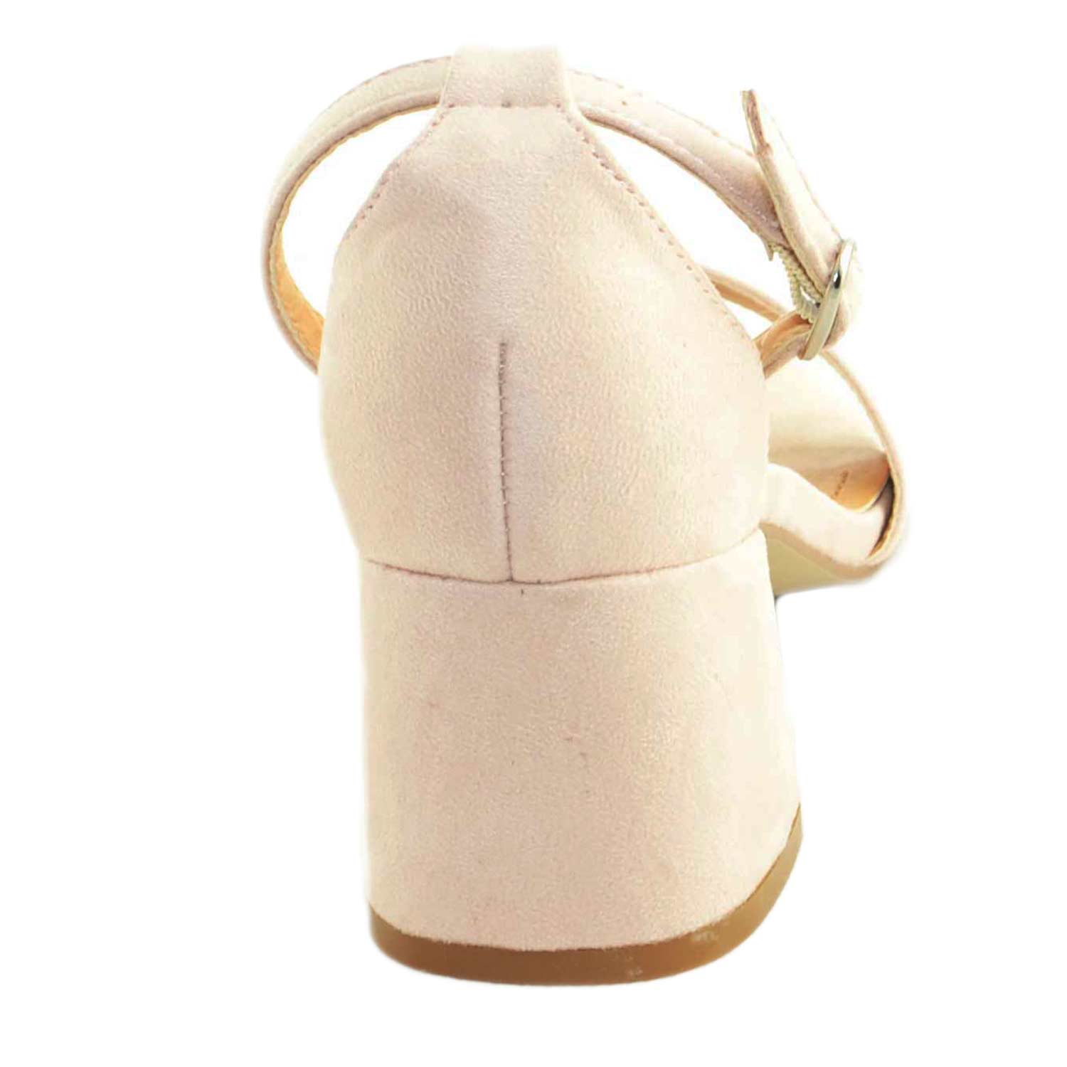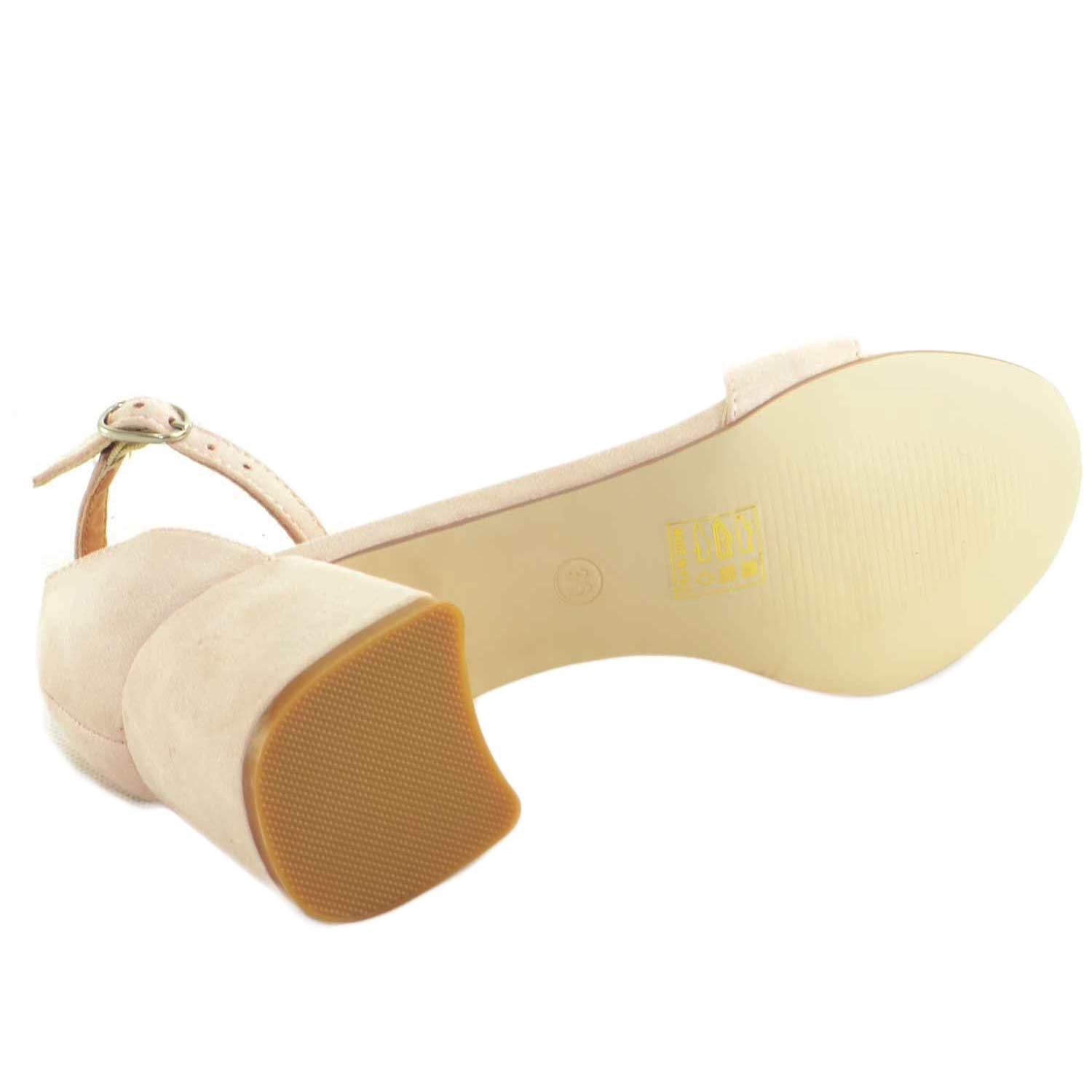 Sandalo in pelle sintetica scamosciata con allacciatura alla caviglia.