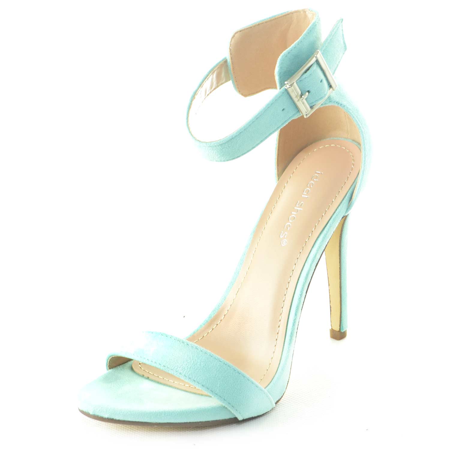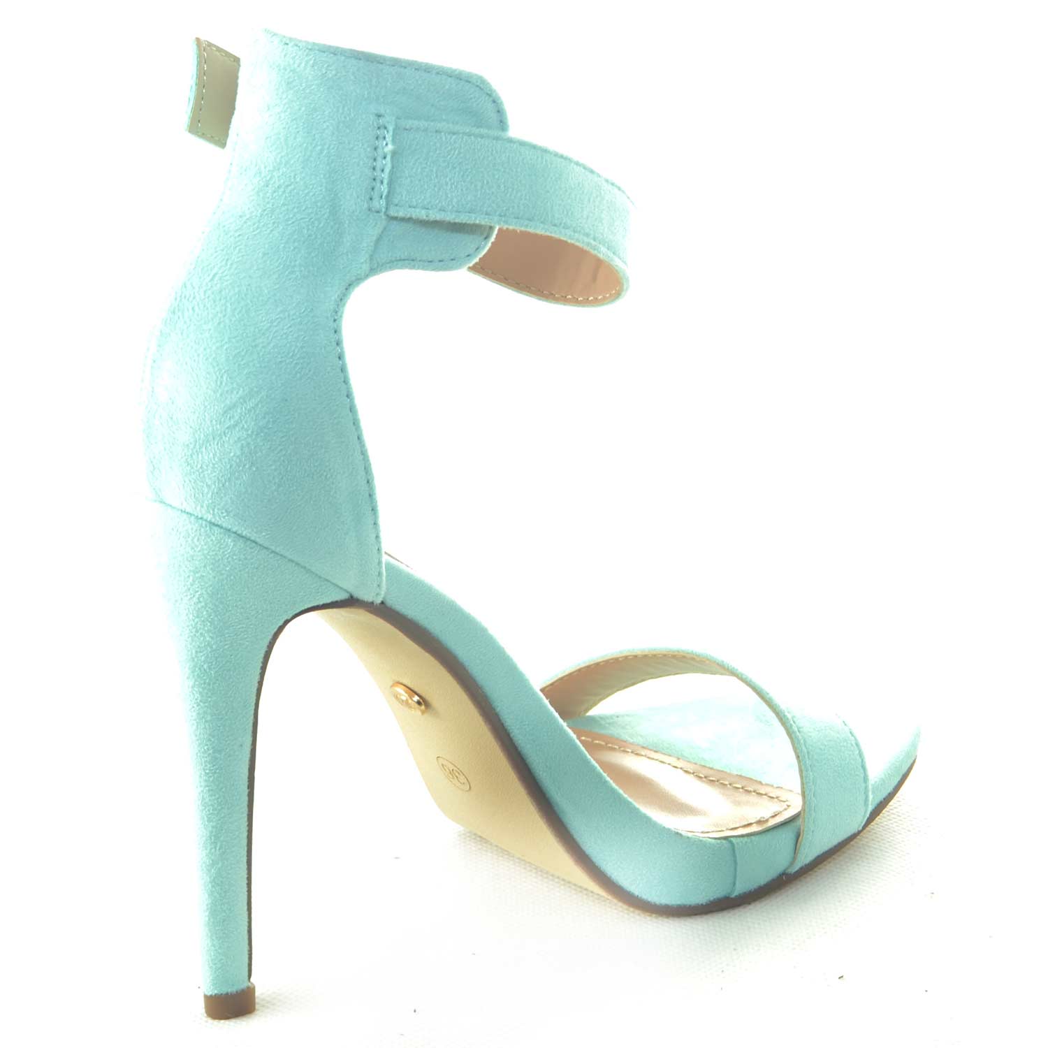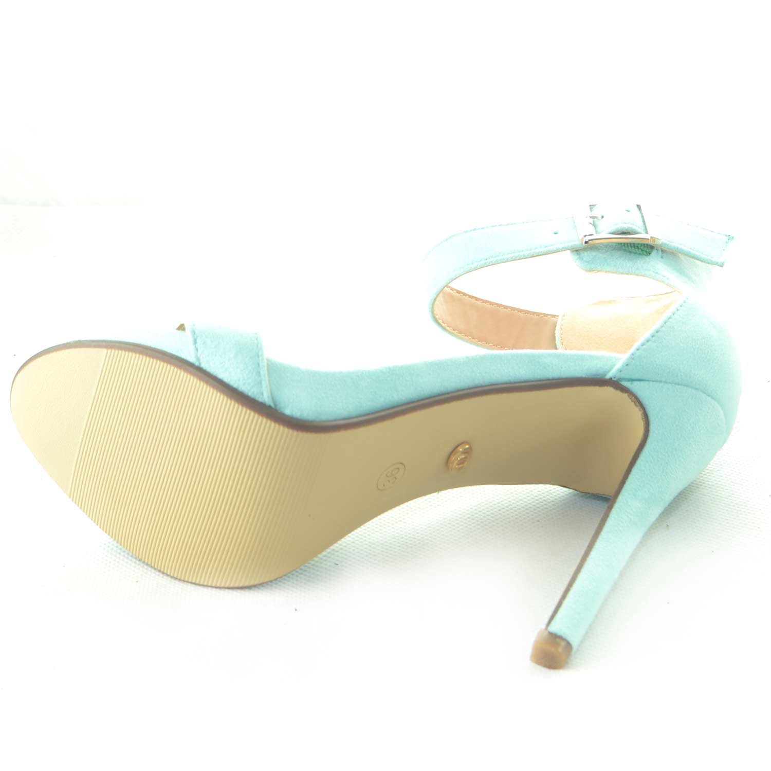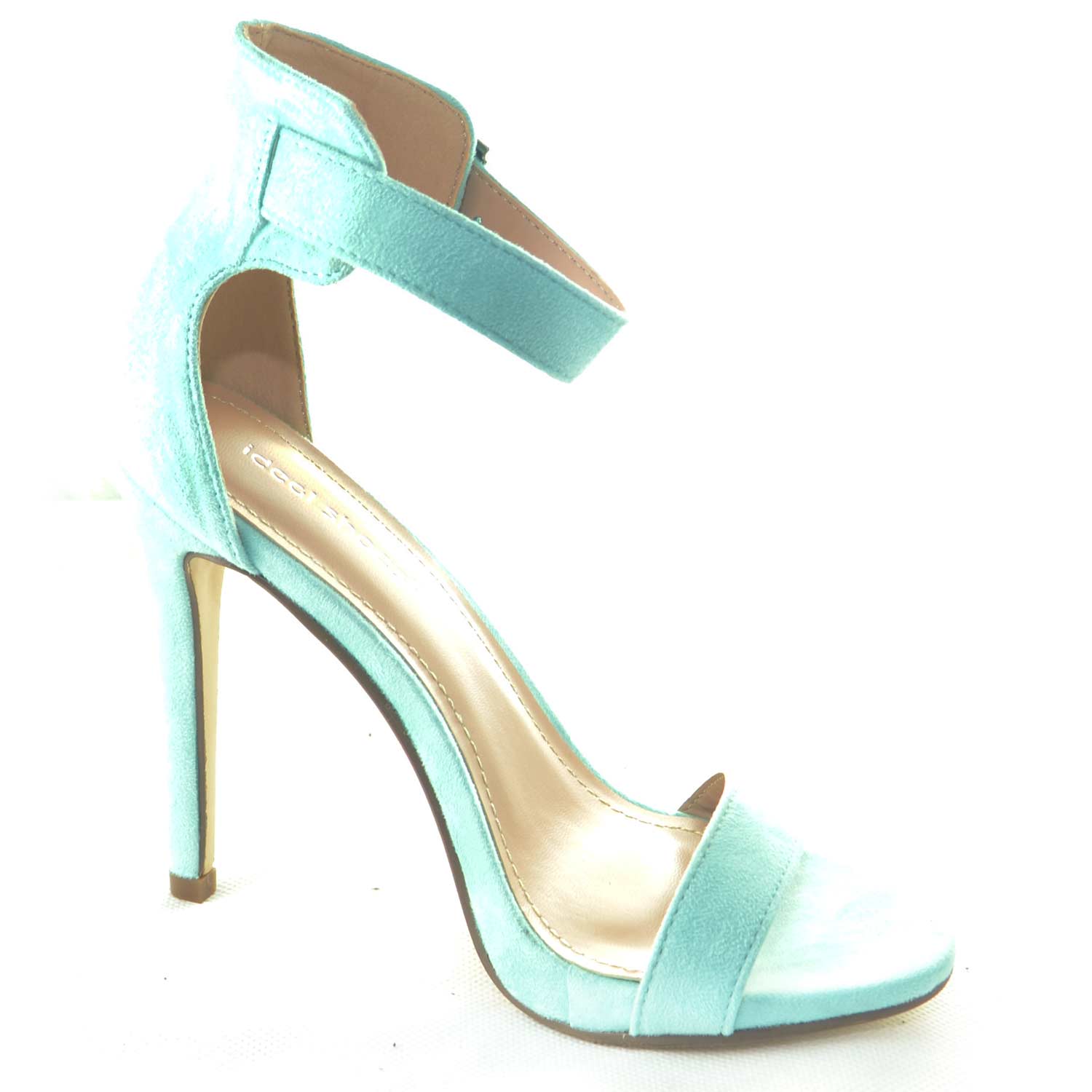 SANDALO DONNA CAMOSCIO VERDE ACQUA TIFFANY TACCO A SPILLO LINEA BASIC E CINTURINO ALLA CAVIGLIA CERIMONIA LUXURY