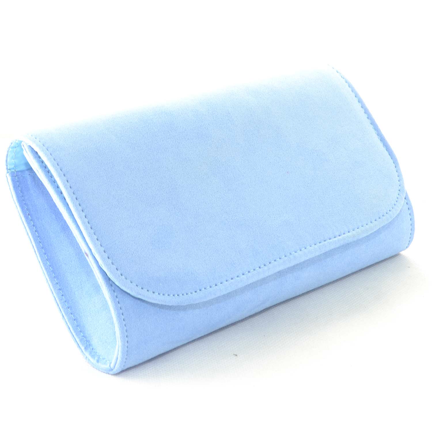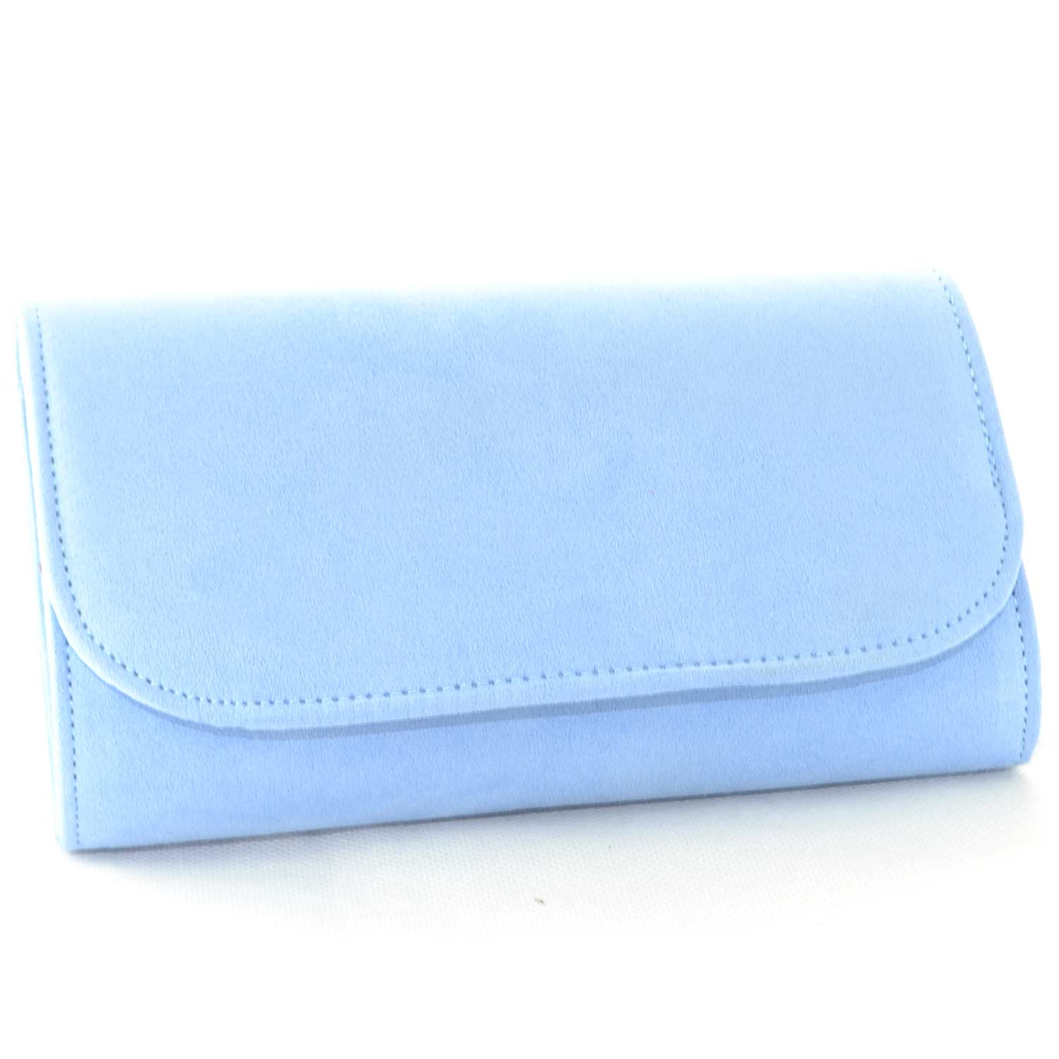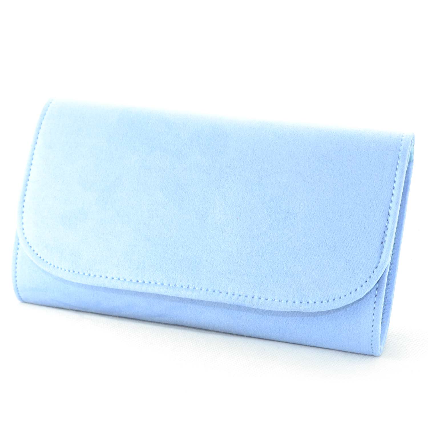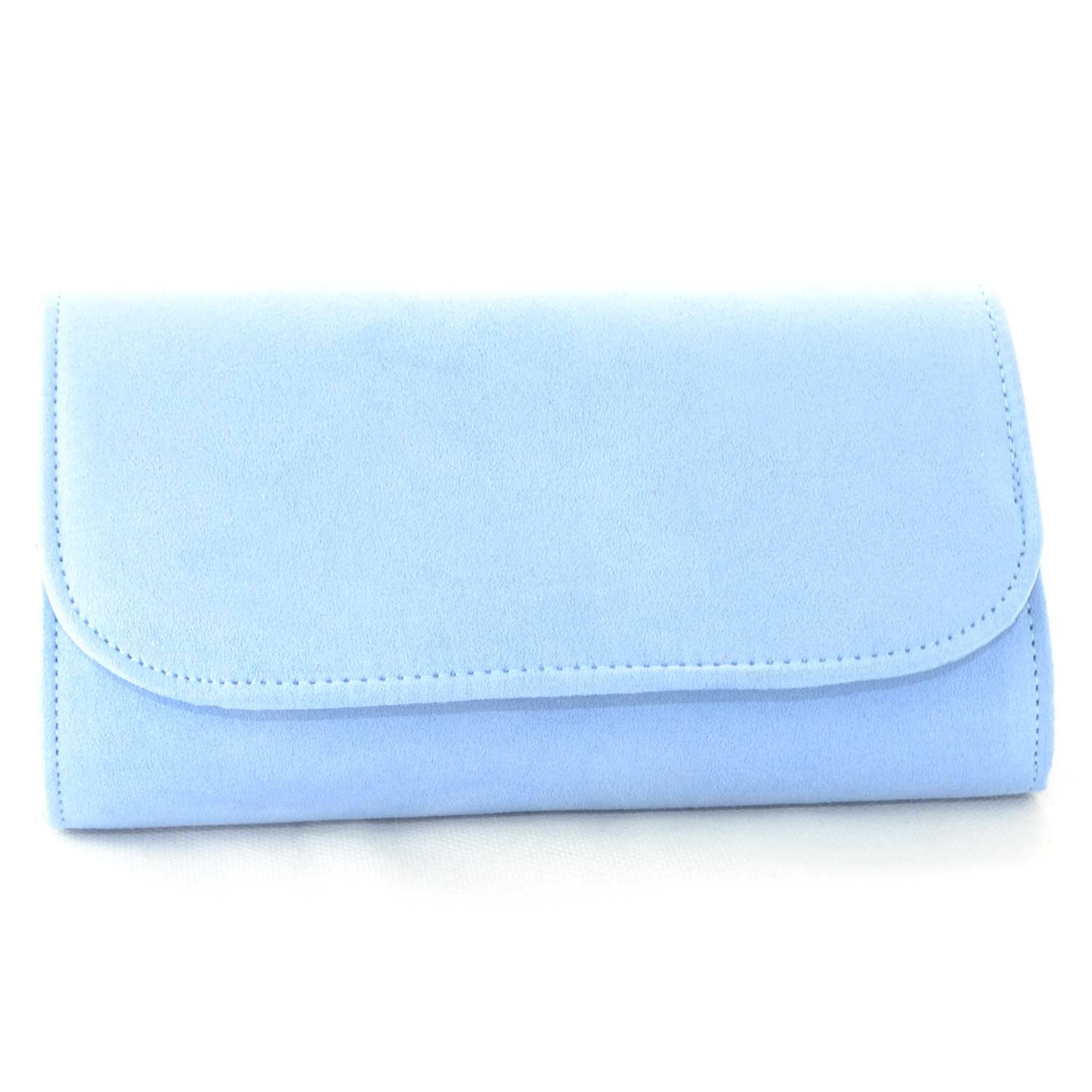La pochette forma portafoglio donna è realizzata in camoscio di colore celeste polvere sintetico, linea basic. Elegante, è idonea per cerimonie o eventi mondani. Molto comoda grazie alla ribalta a bottone e catenina in acciaio argentato. Pratica e capiente, è l' ideale per le donne che amano avere tutto ben organizzato con semplicità.