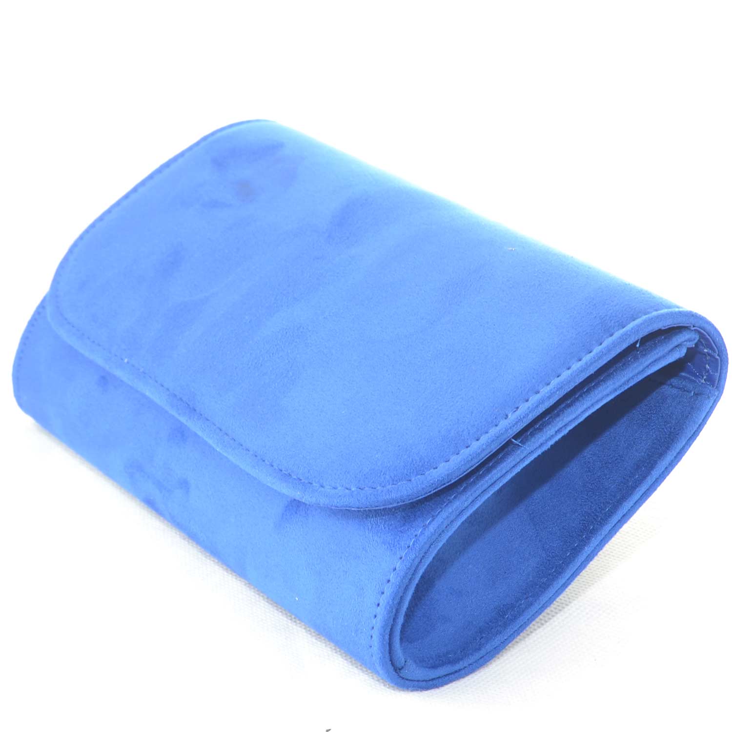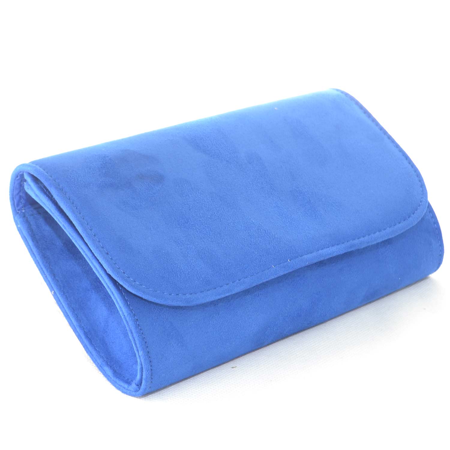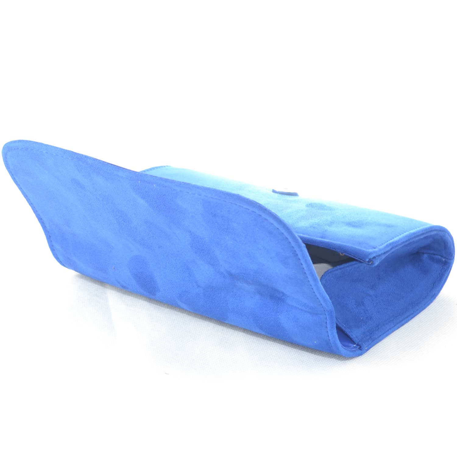 Pochette rettangolare in camoscio blu elettrico con catena e chiusura clip linea basic