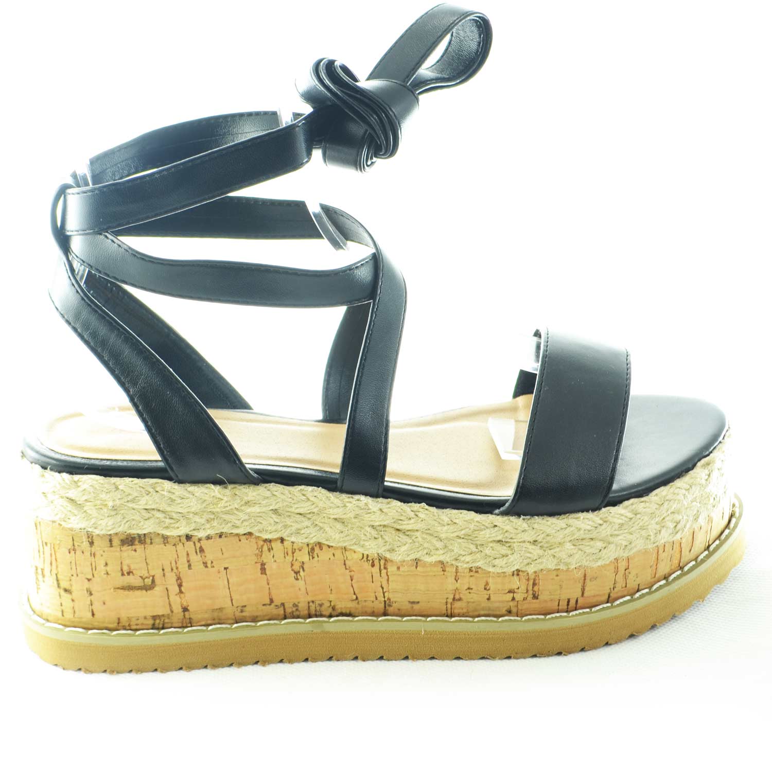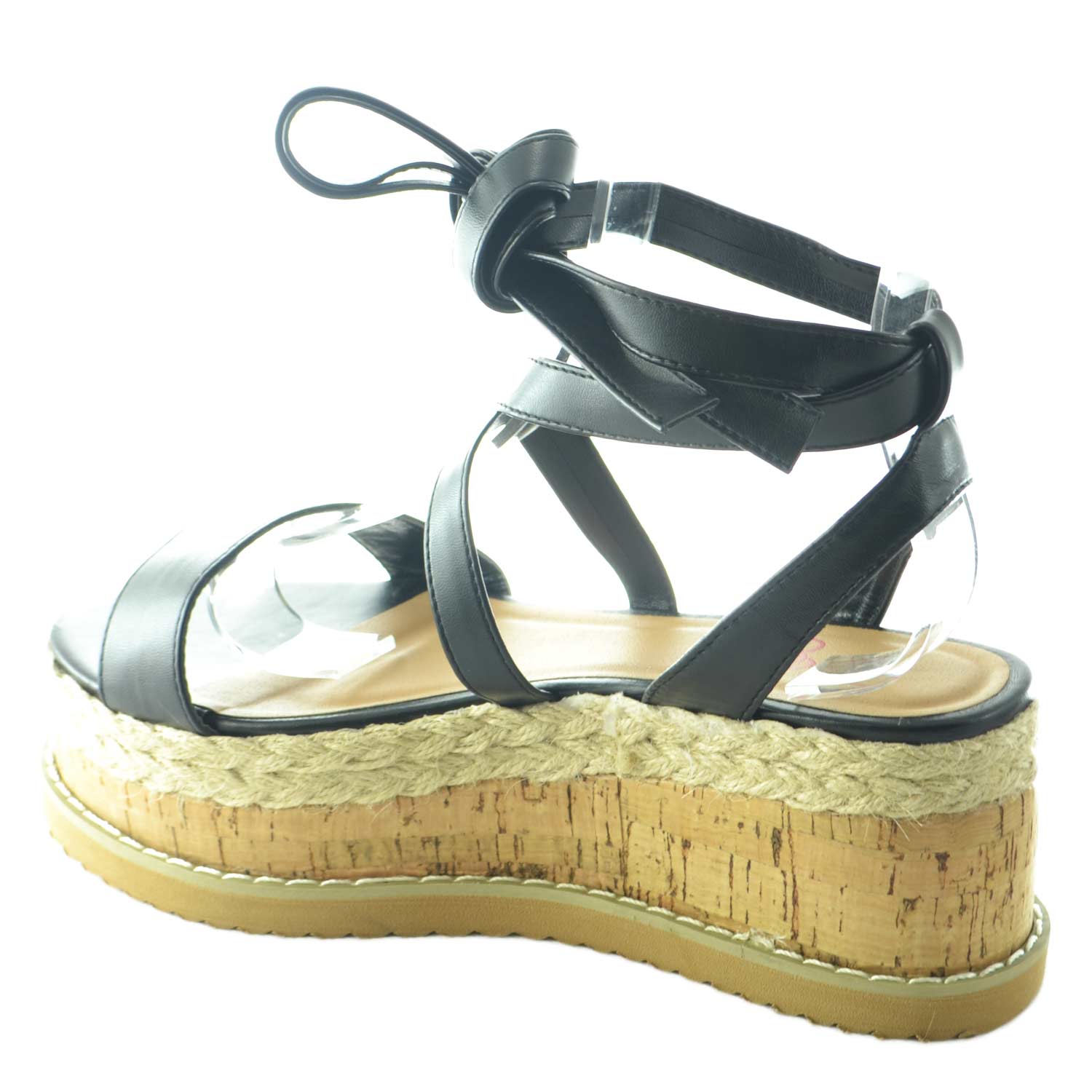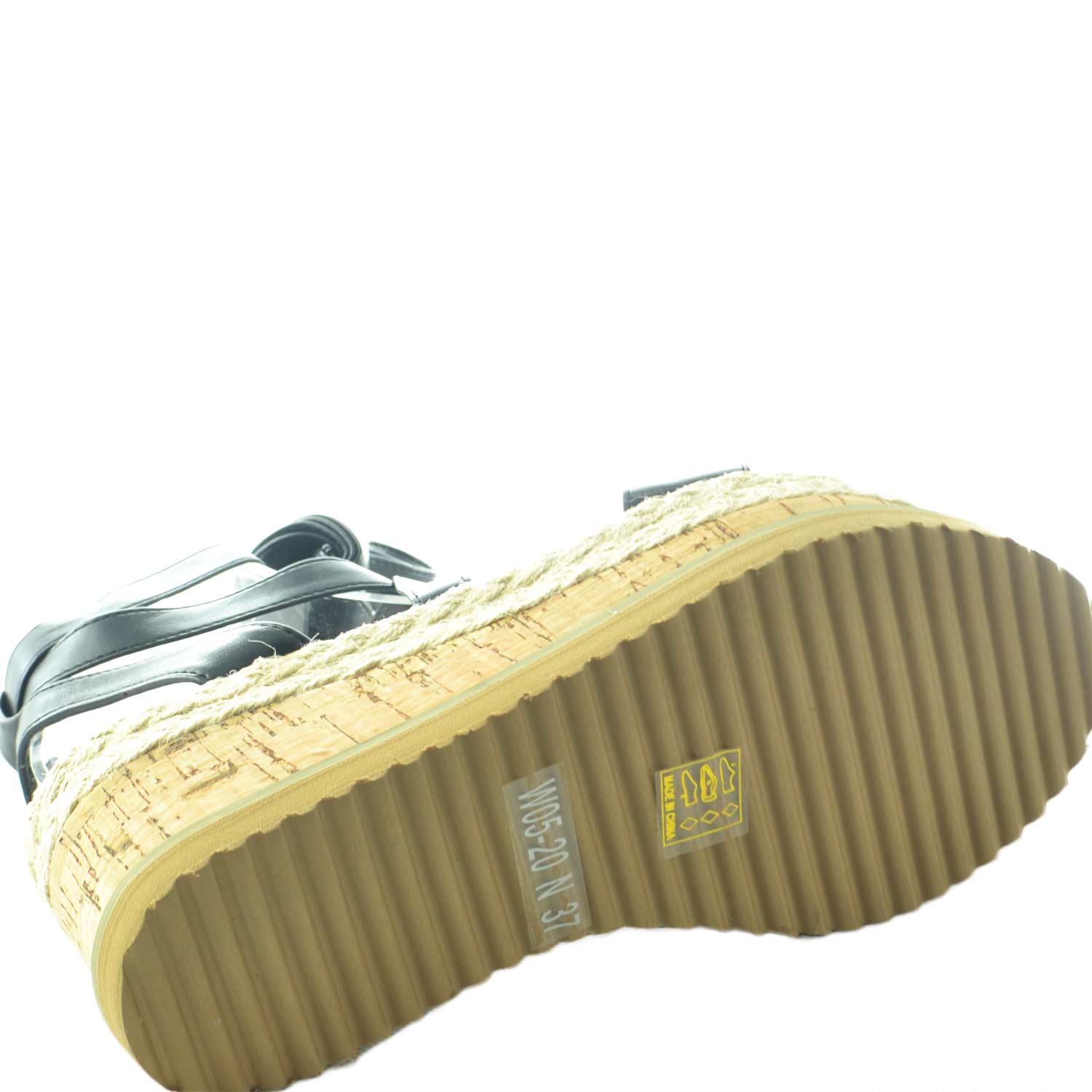 ZEPPA DONNA ESTIVA CON FONDO IN SPAGO DECORATO E RICAMATO FASCIATURA NERO PELLE A INCROCIO BASIC COMFORT SUOLA MORBIDONE