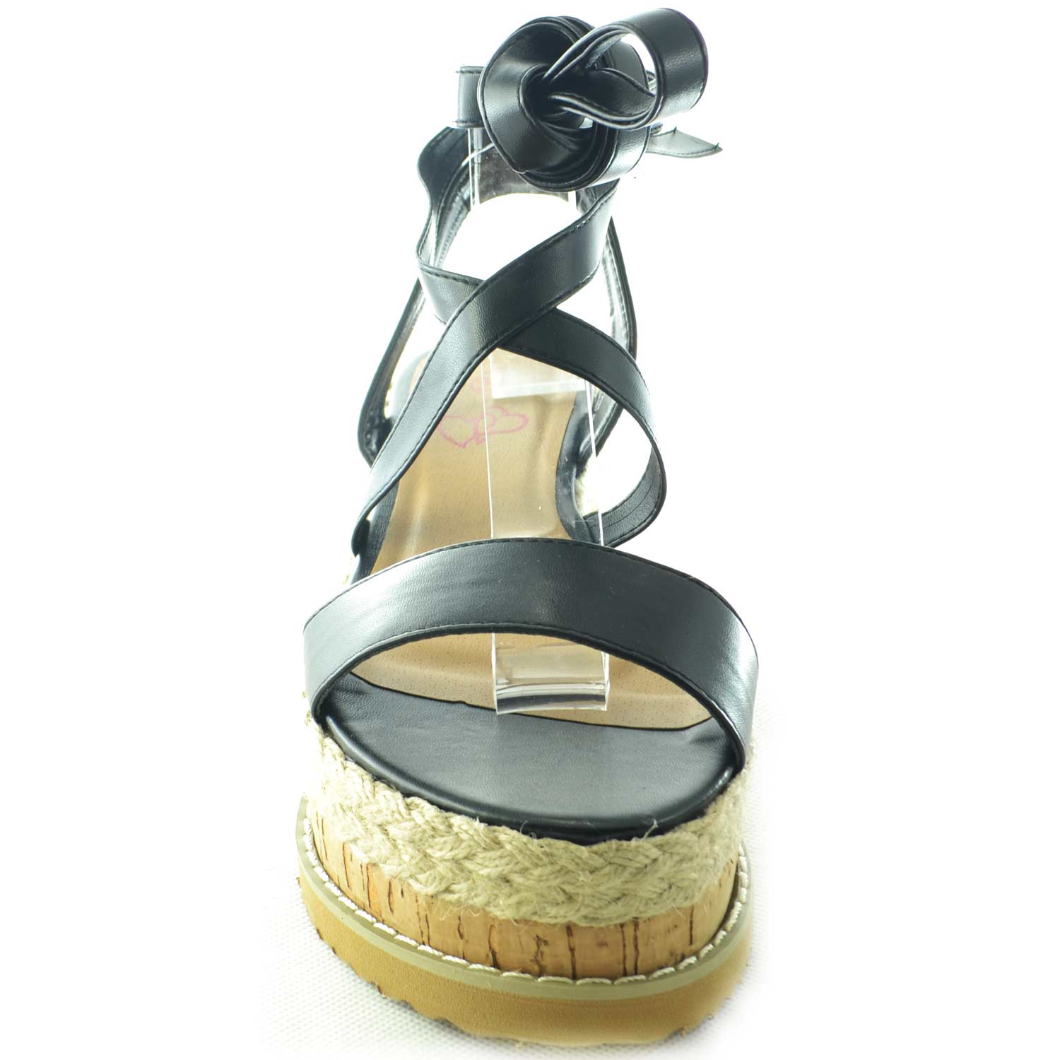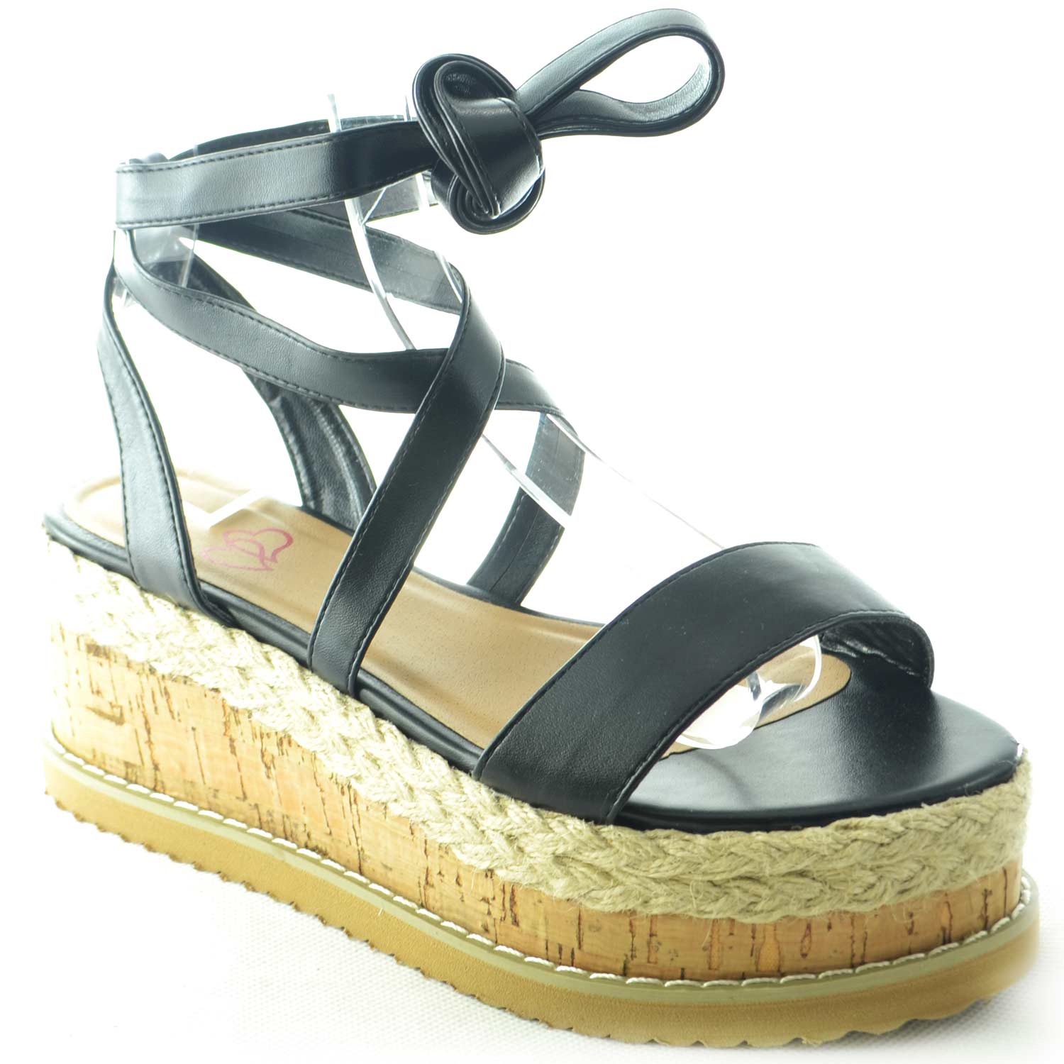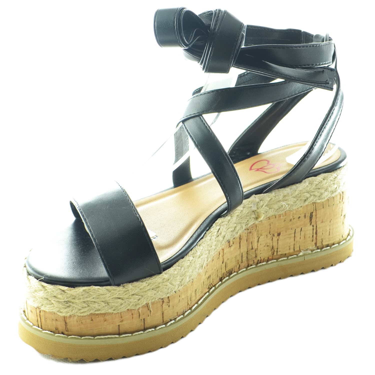 ZEPPA DONNA ESTIVA CON FONDO IN SPAGO DECORATO E RICAMATO FASCIATURA NERO PELLE A INCROCIO BASIC COMFORT SUOLA MORBIDONE