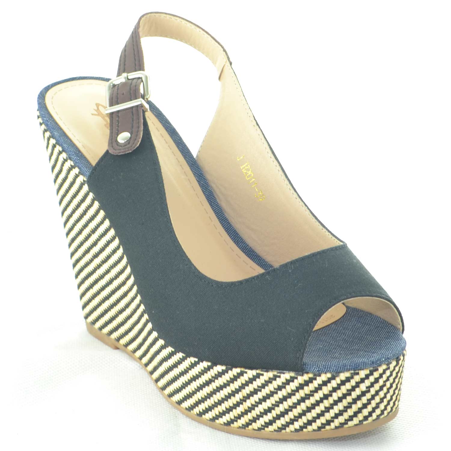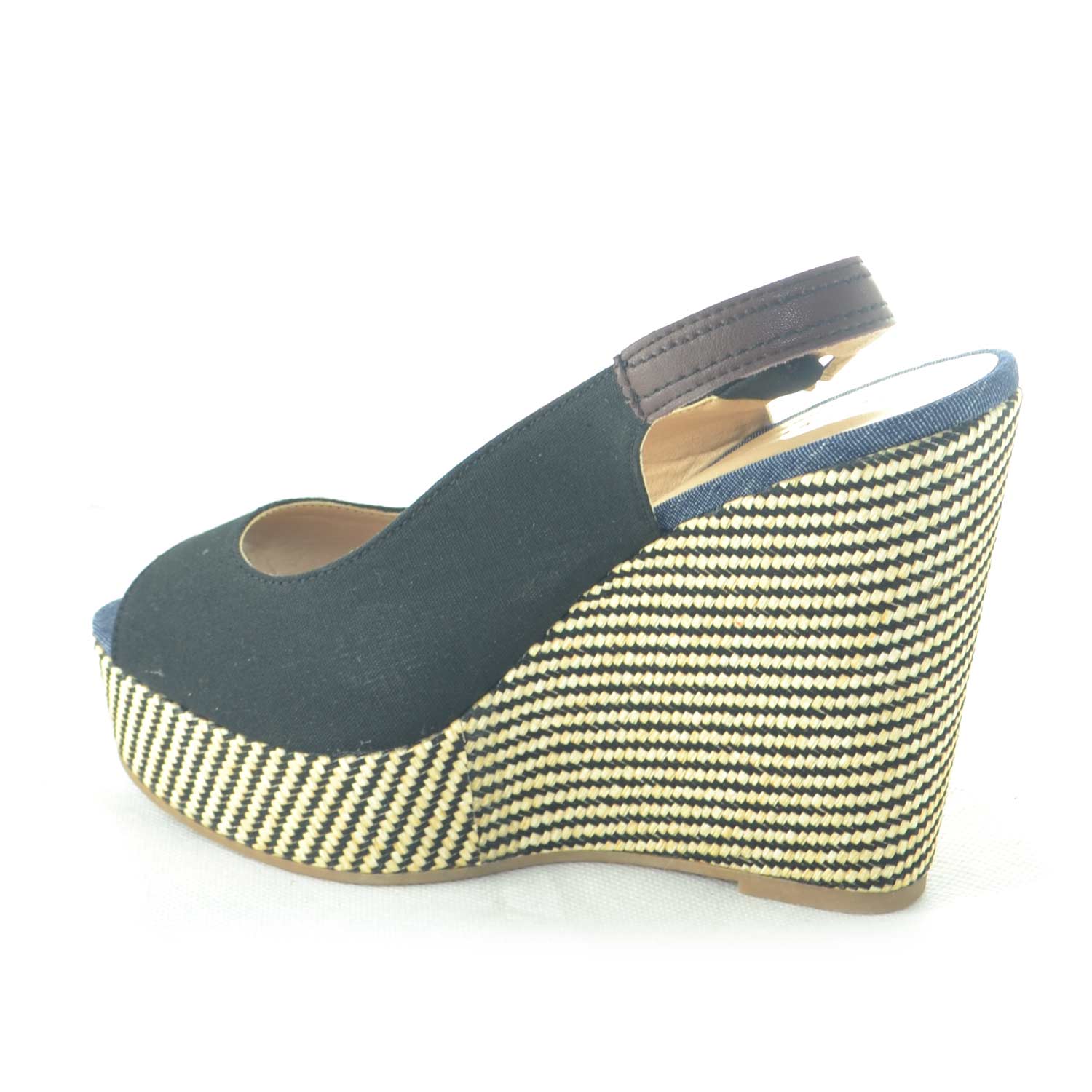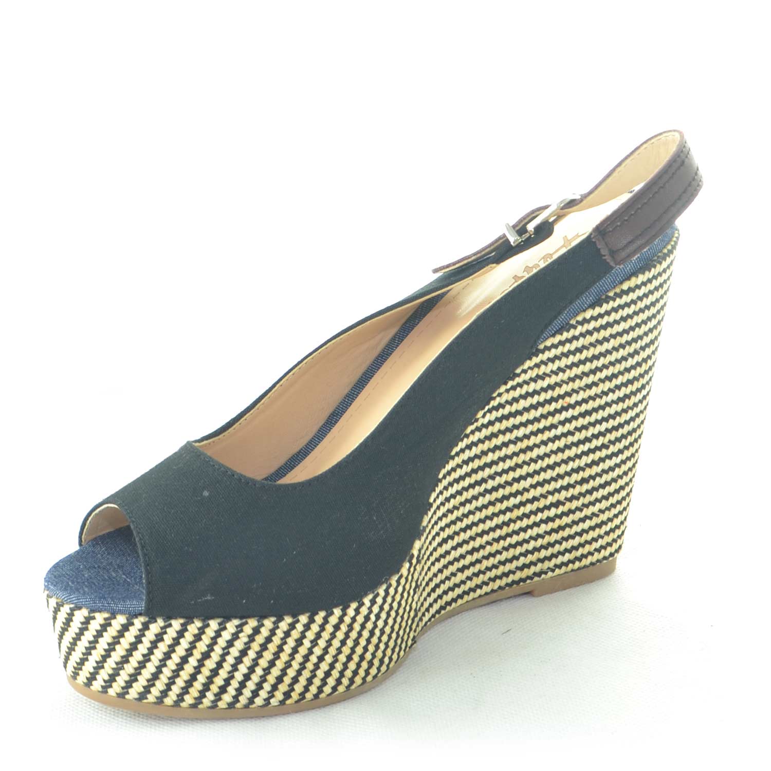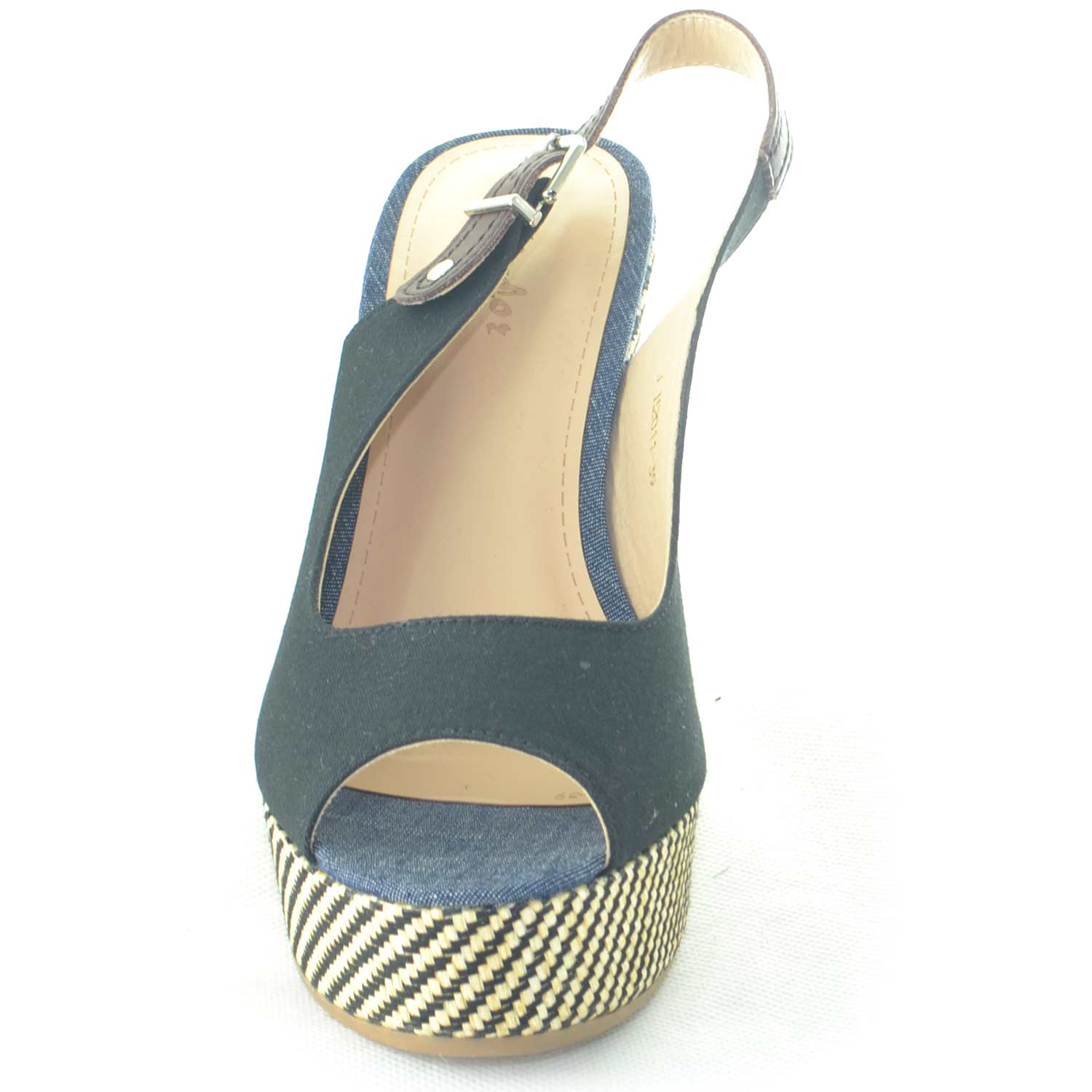 ZEPPA DONNA JEANSATA NERO ESTIVA CON FONDO DECORATO E RICAMATO FASCIATURA BASIC COMFORT SUOLA MORBIDONE