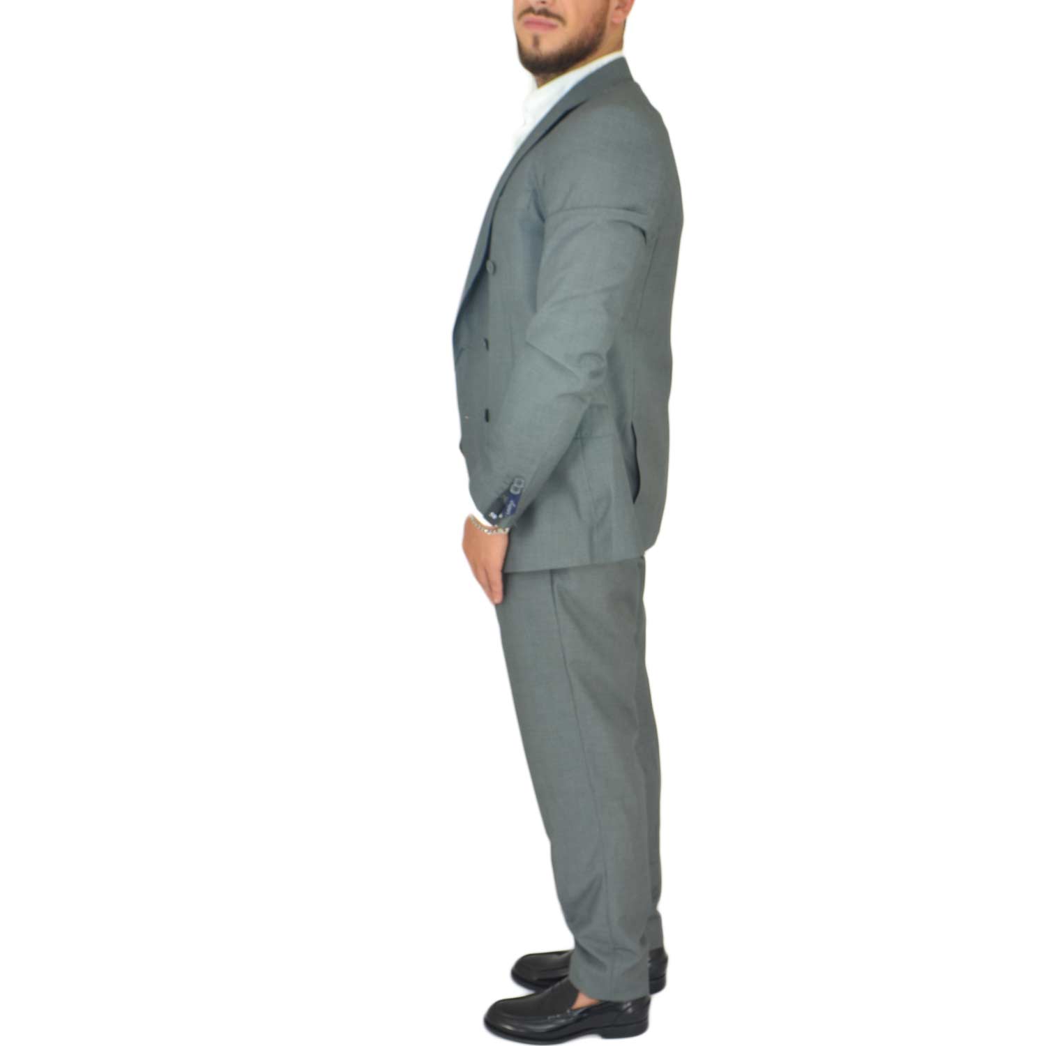 Doppio petto abito uomo sartoriale. Completo giacca con pantaloni di colore grigio scuro. Modello doppiopetto con spacco. Sia la giacca che i pantaloni sono foderati internamente in tessuto di altissima qualità e manifattura, curato nei minimi dettagli. Modello slim fit, vestibilità aderente. I nostri abiti fatti da esperti artigiani ê il giusto connubio di qualità e prezzo ed eleganza.