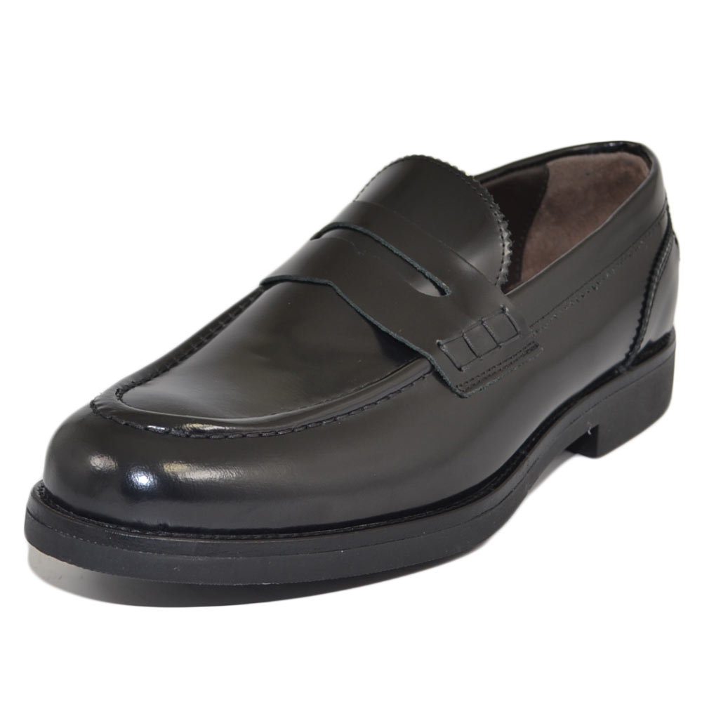 Scarpe uomo mocassini inglese college vera pelle nero con bendina made in italy fondo classico sportivo genuine leather