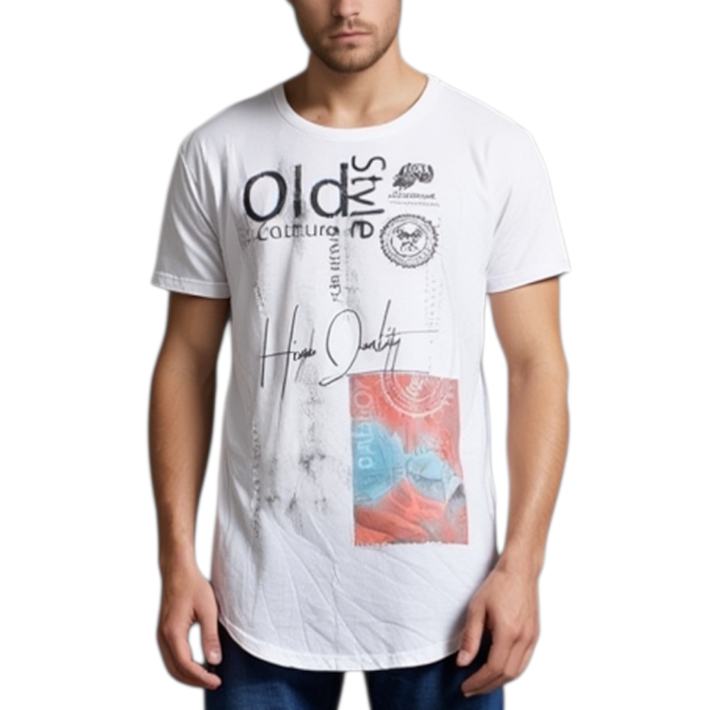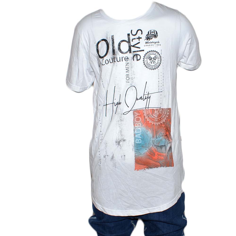 T-Shirt maglietta OLD STYLE con collo rotondo e maniche corte con design popular cucitoartigianalmente made in italy