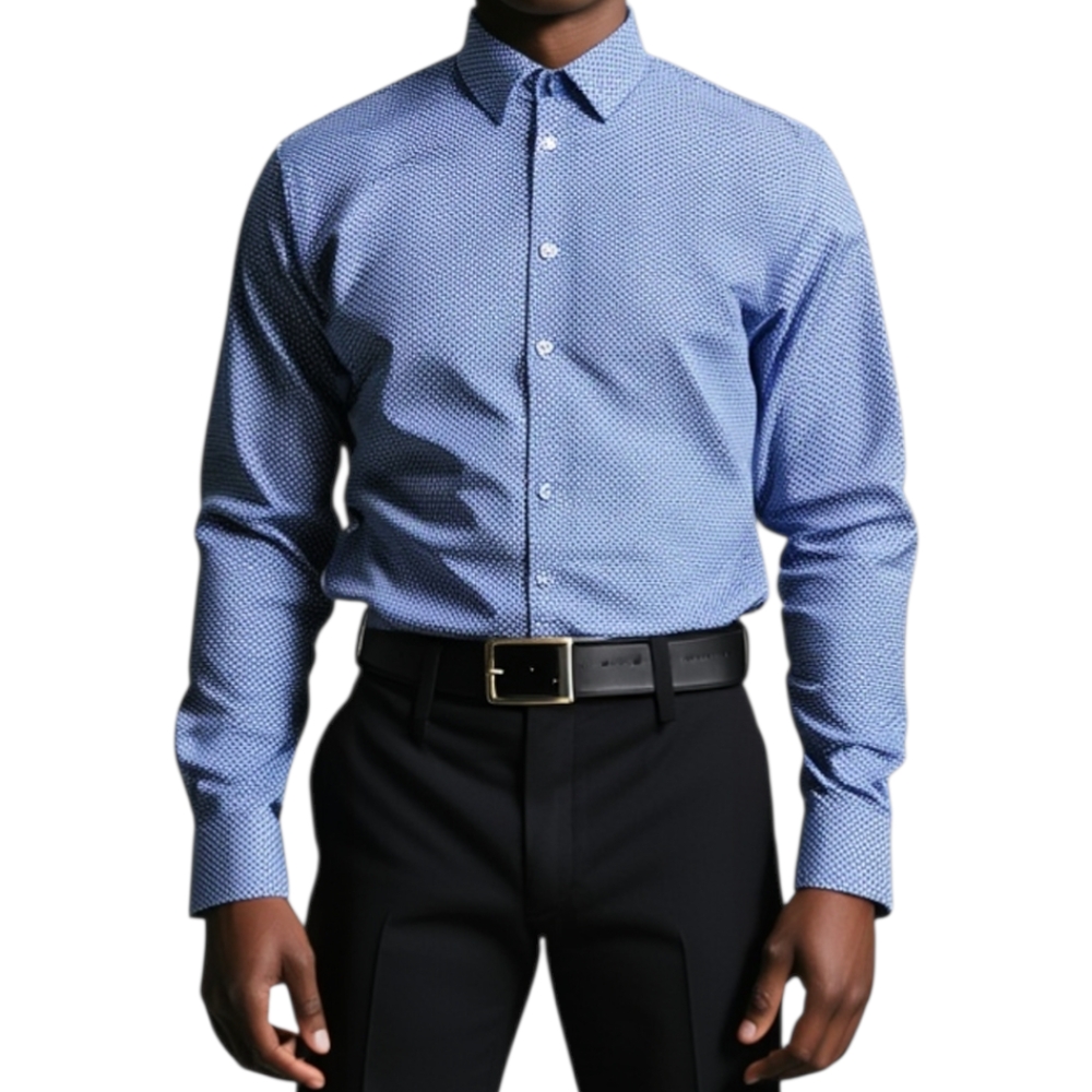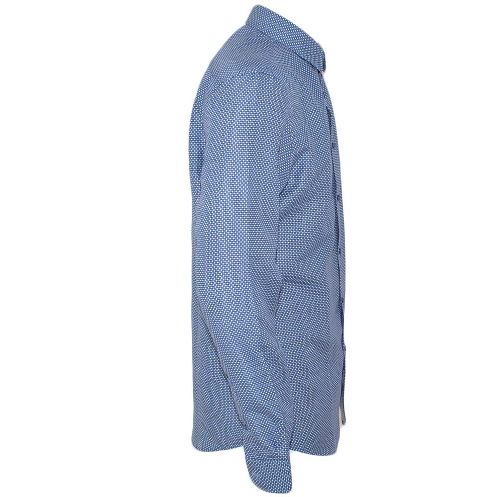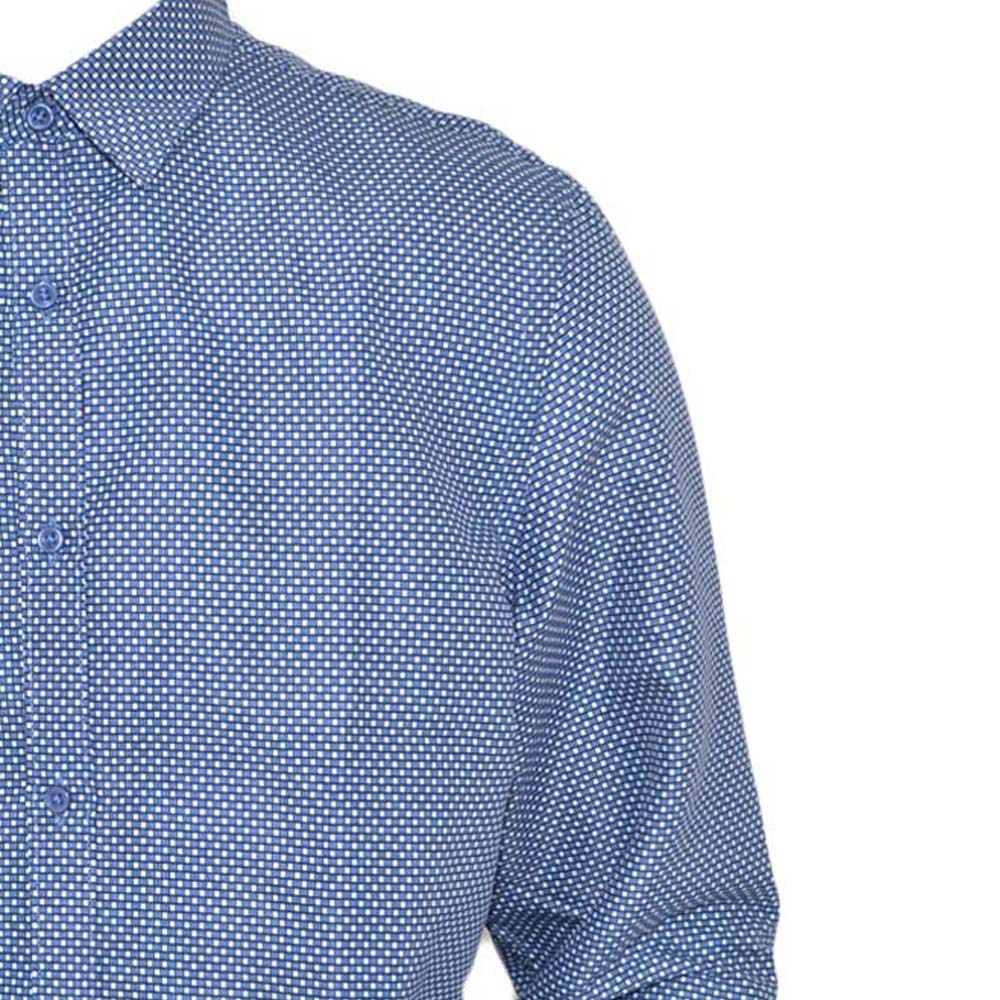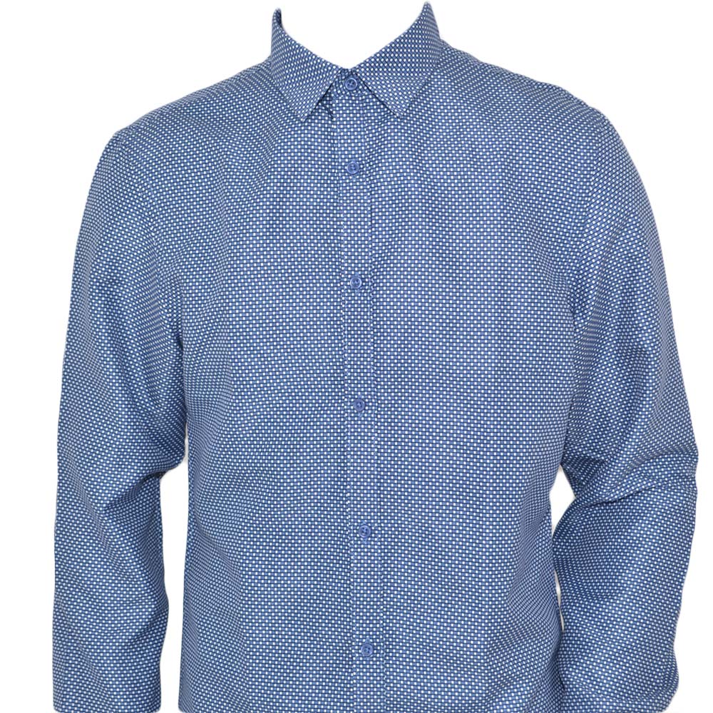 Camicia uomo cotone blu collo rigido manica lunga motivo astratto made in italy slim linea basic