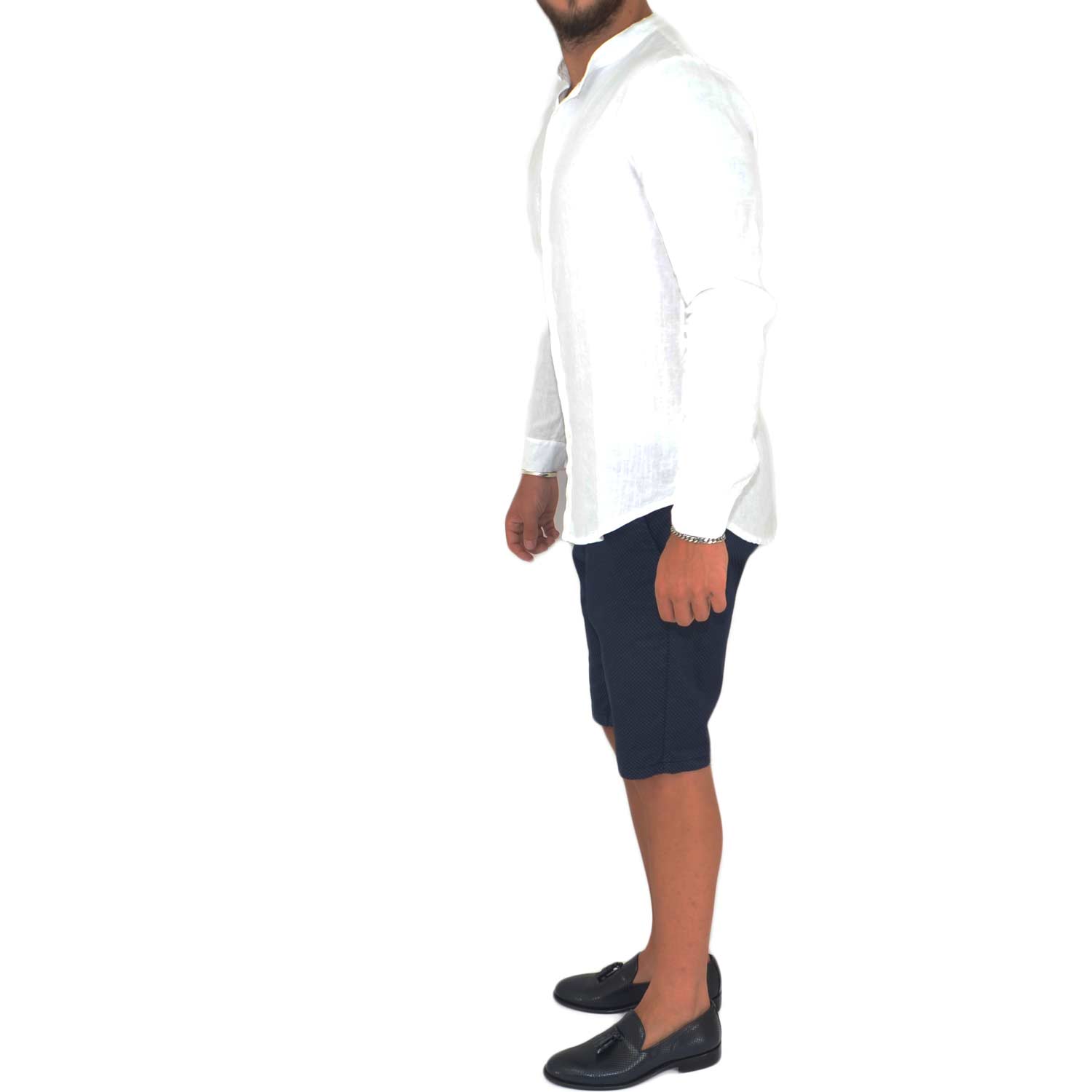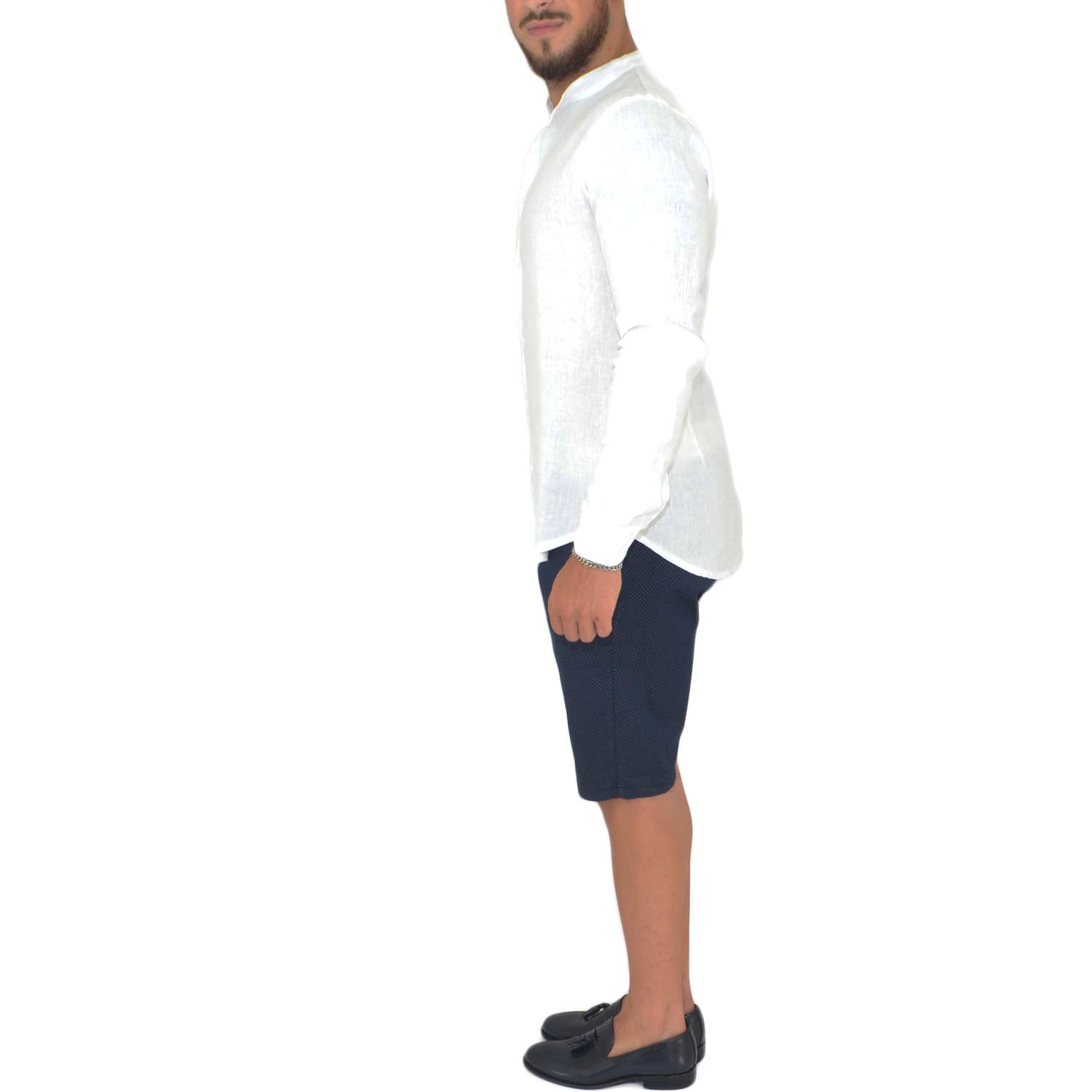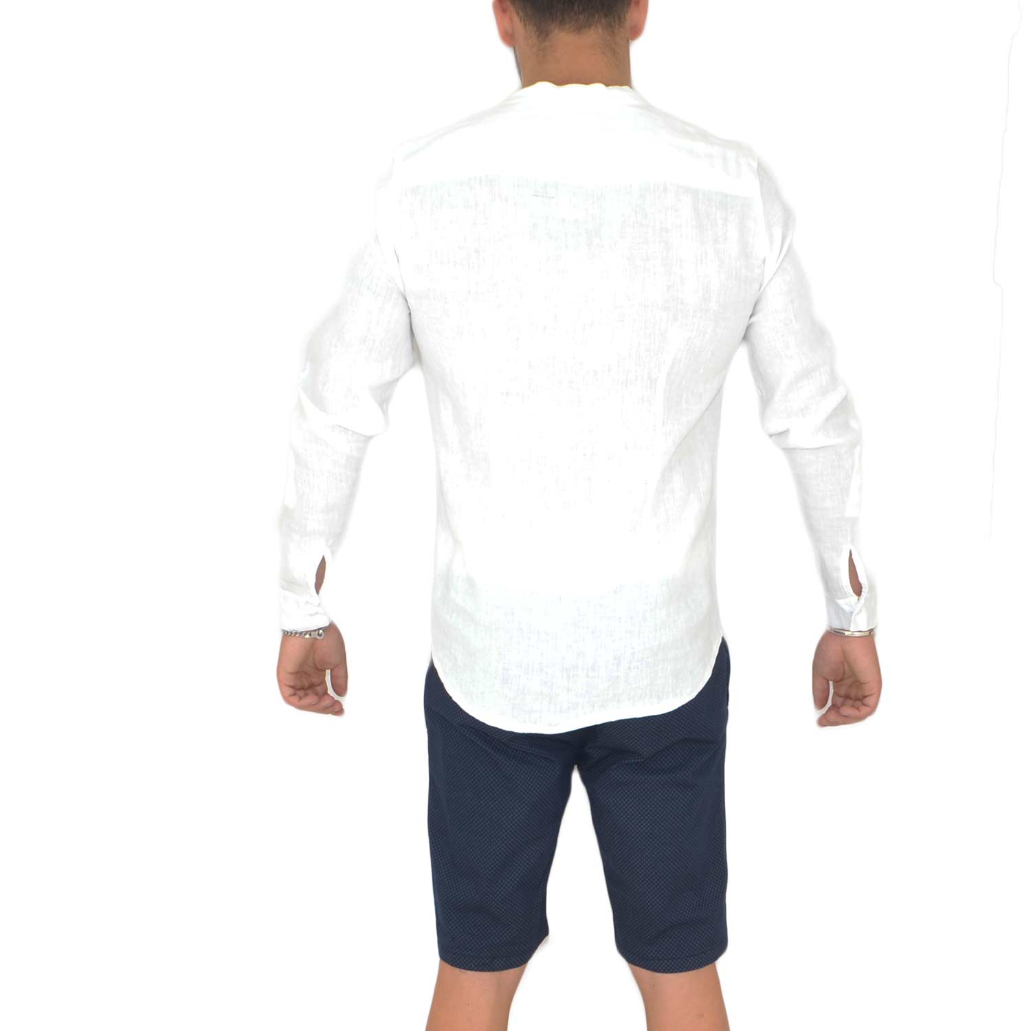 Camicia uomo lino bianco collo coreano manica lunga regolabile motivo basic made in italy