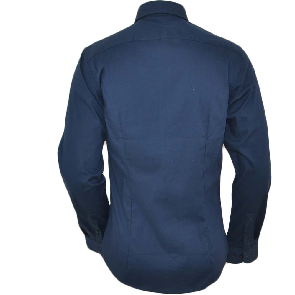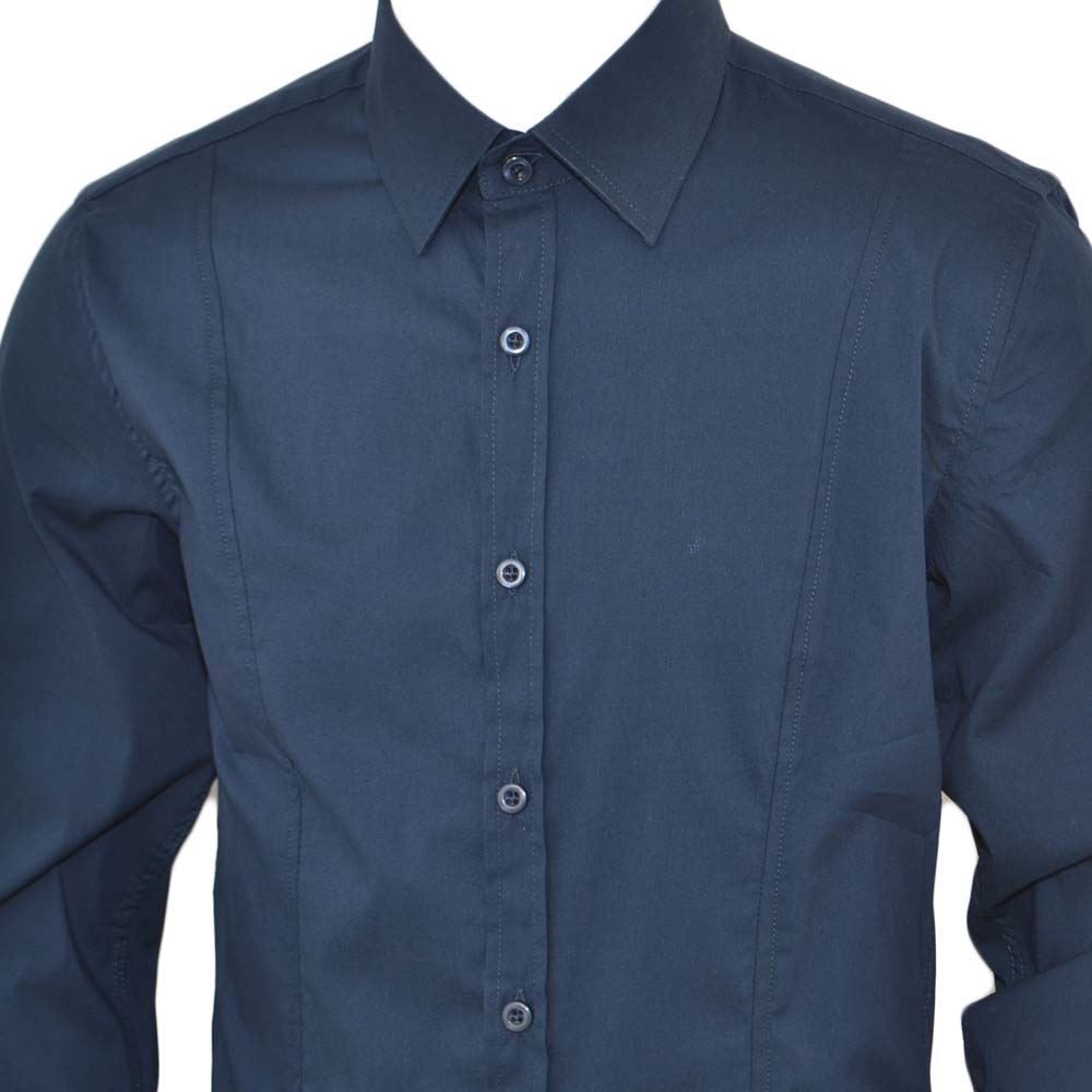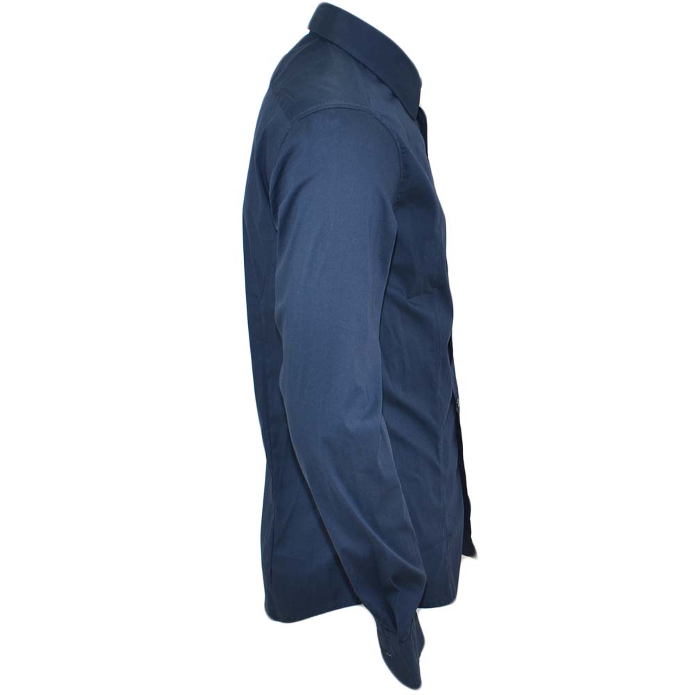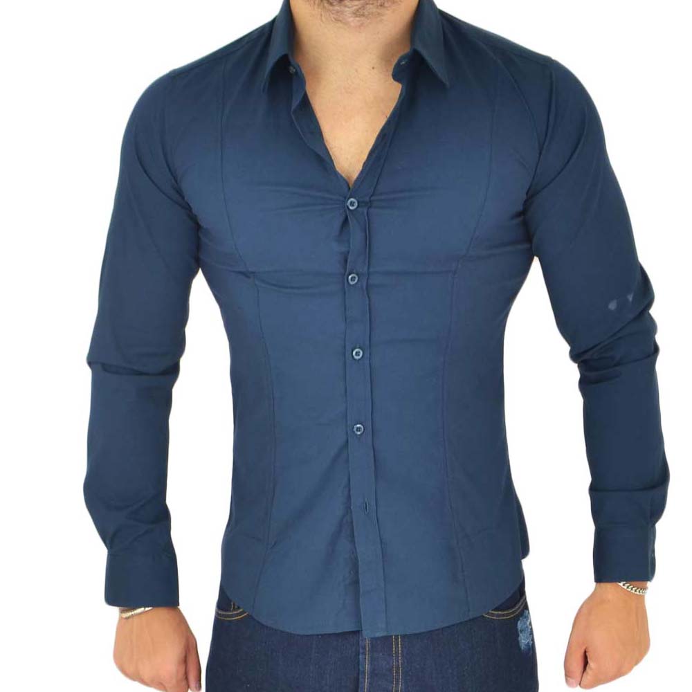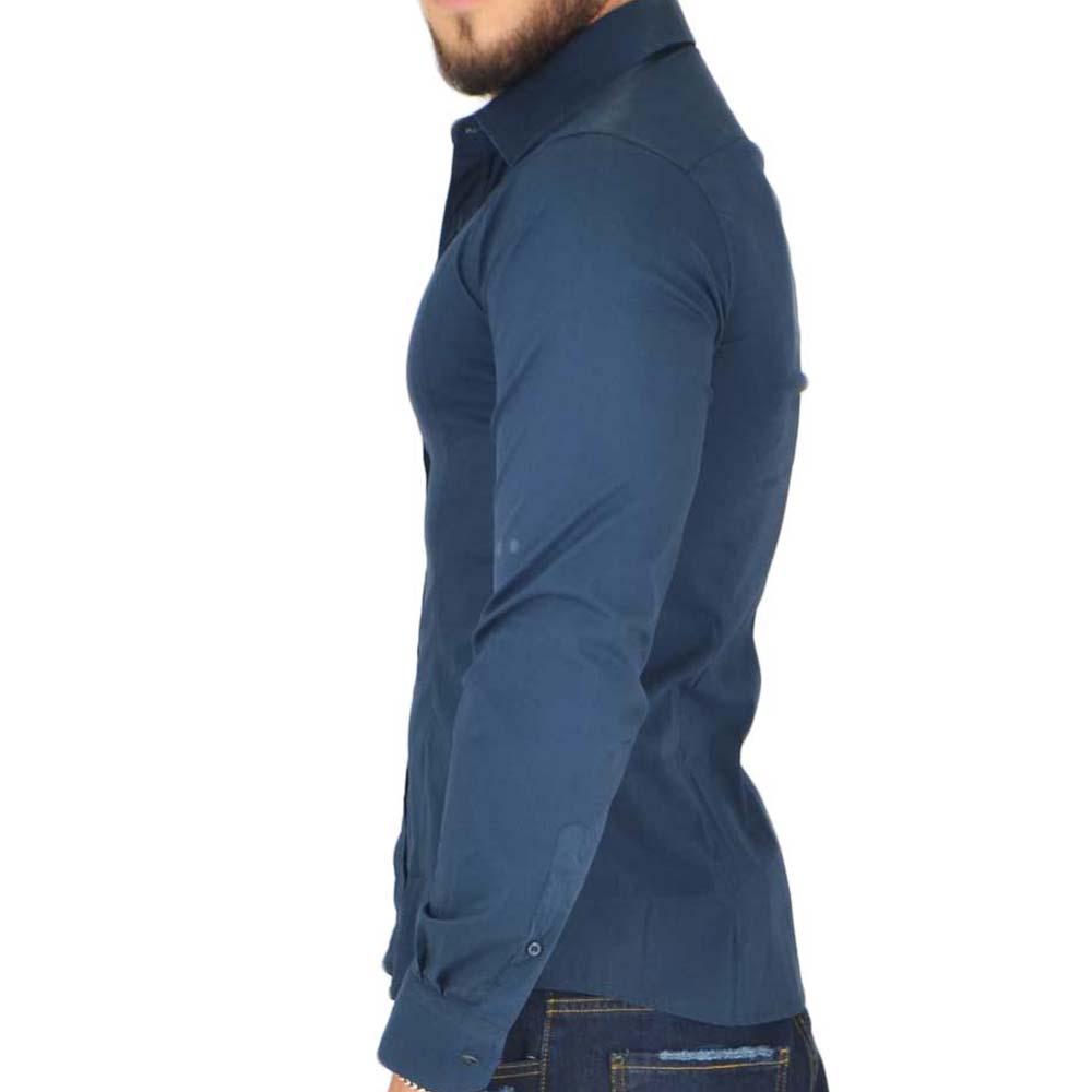 Camicia uomo slim cotone blu petrolio collo rigido manica lunga basic made in italy