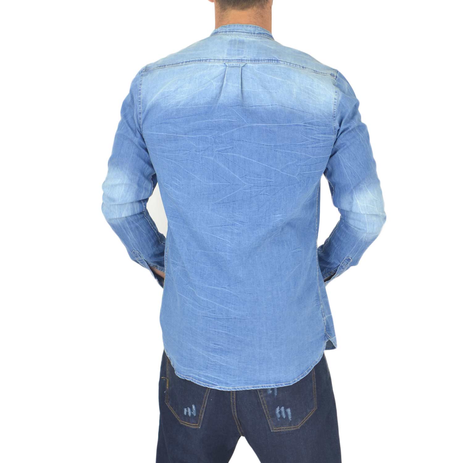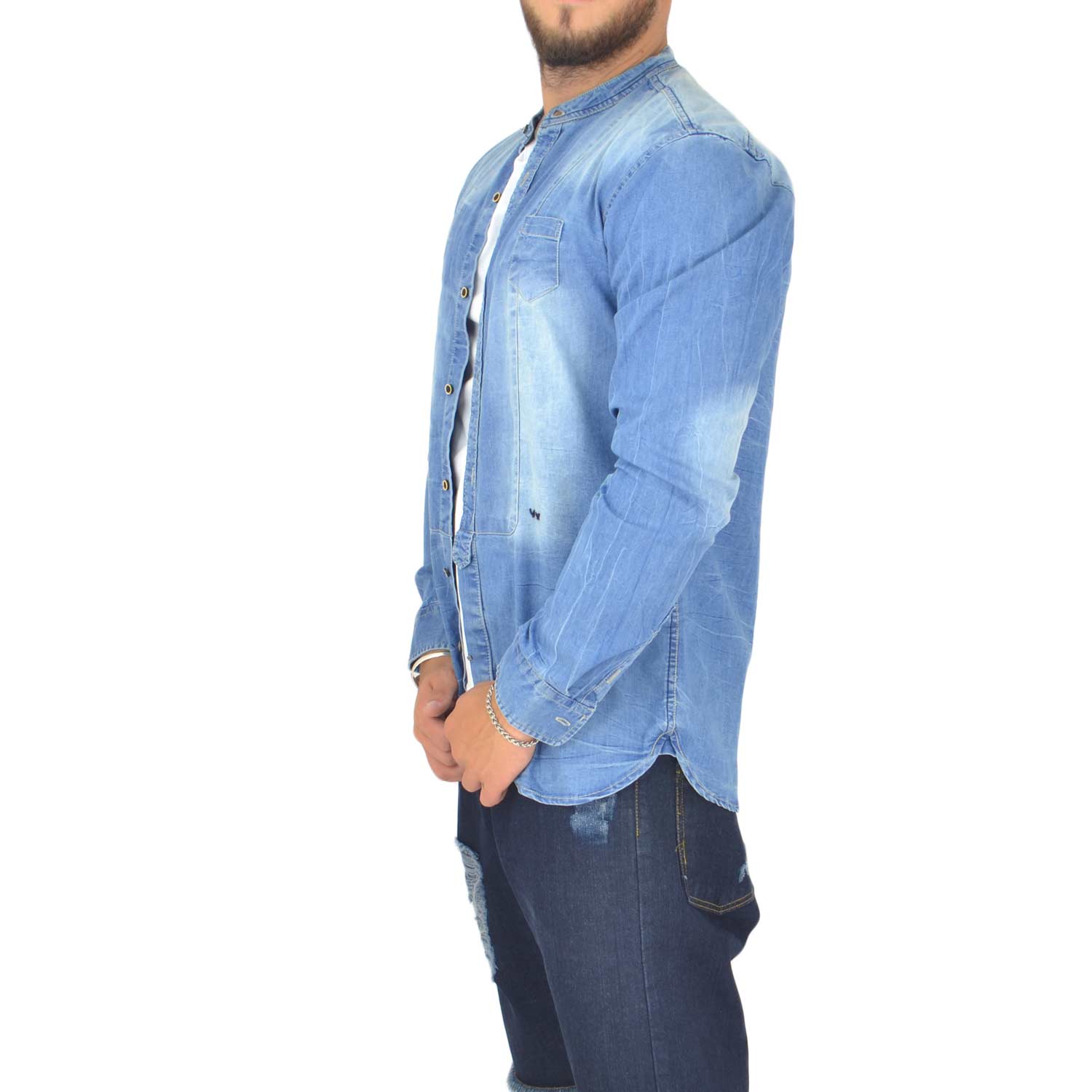 CAMICIA UOMO JEANS DENIM COLLO COREANO MANICA LUNGA BASIC