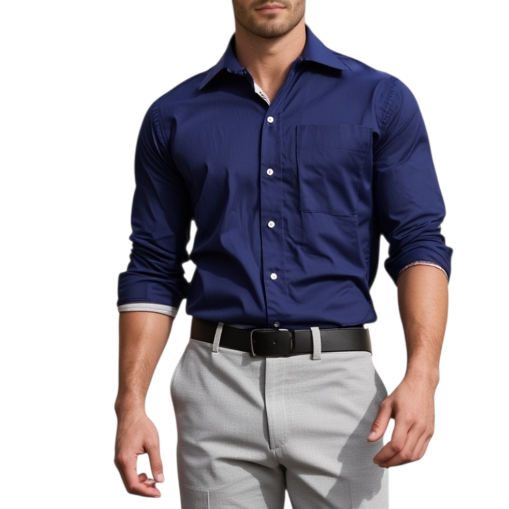 Camicia uomo cotone blu collo rigido e collo e maniche con fantasie manica lunga basic