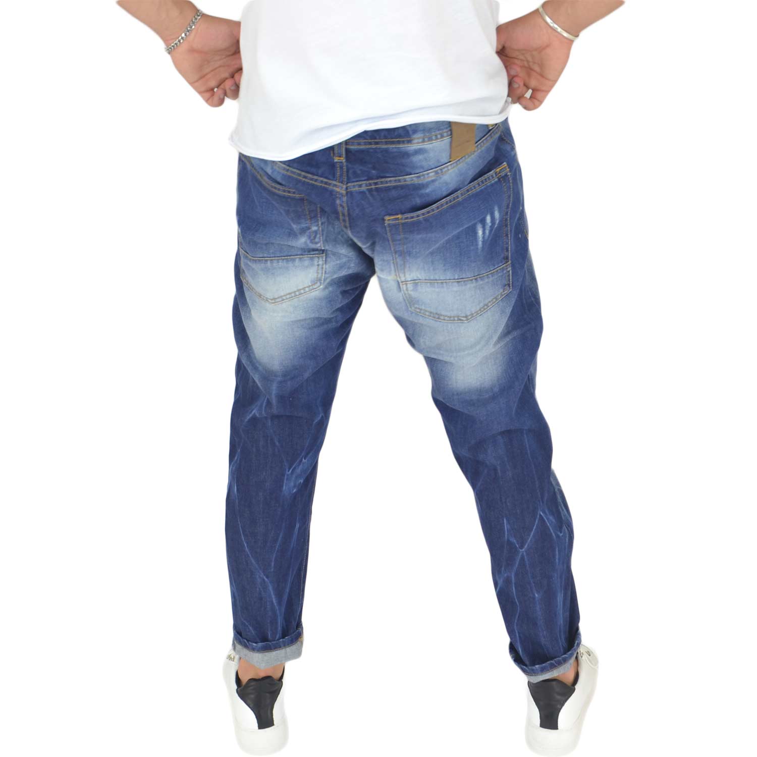 I jeans comfort cavallo medio e denim con strappi sul ginocchio con fodera fantasia interna, il modello preferito per gli amanti della moda , in versione di puro cotone e con leggere sfumature interne per il tocco di moda! modello autunno inverno.
