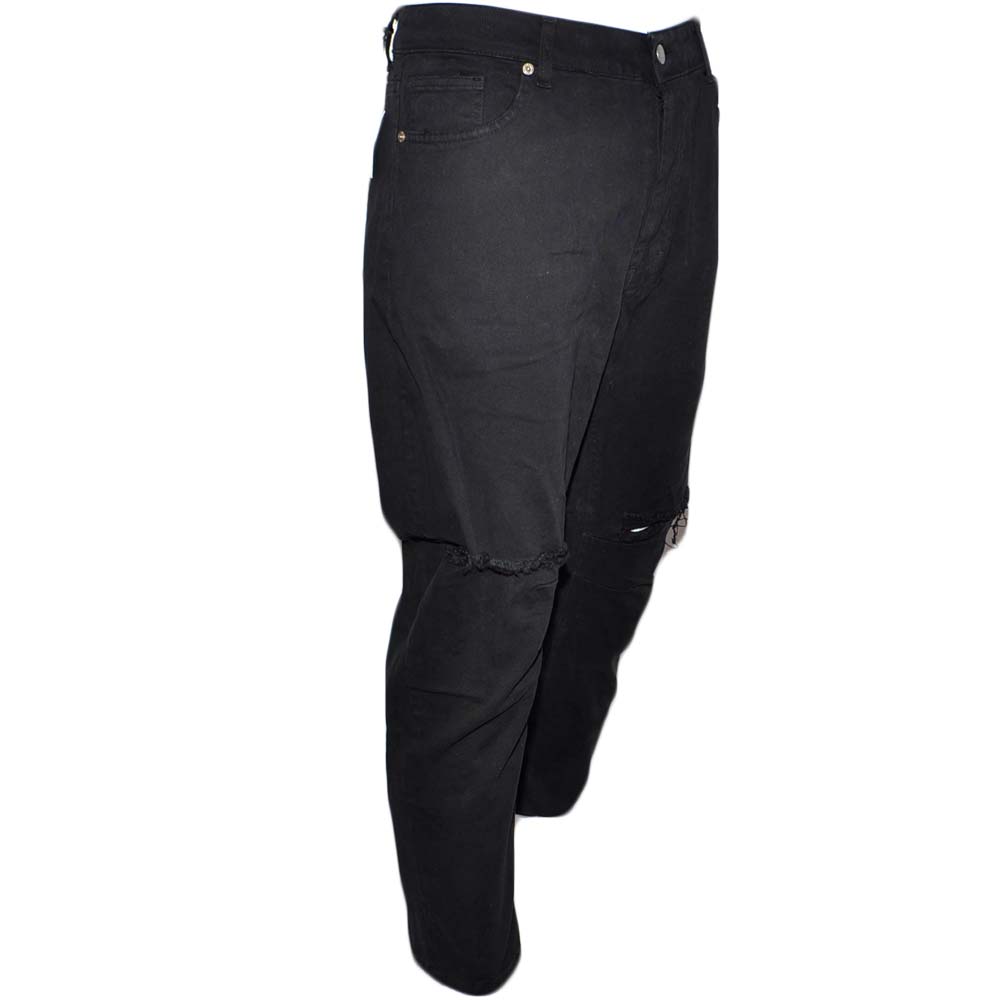 Pantaloni Jeans nero denim biker. Skinny fit.Chiusura con bottoni.Cinque tasche.strappato sulle lunghezze moda.