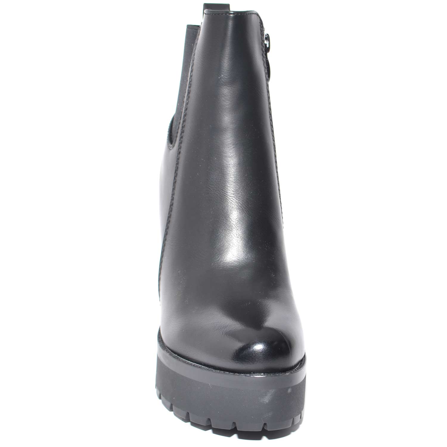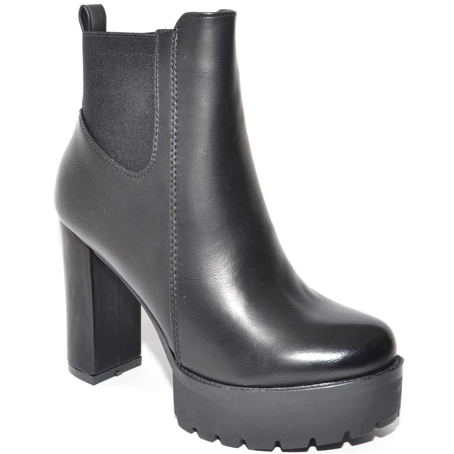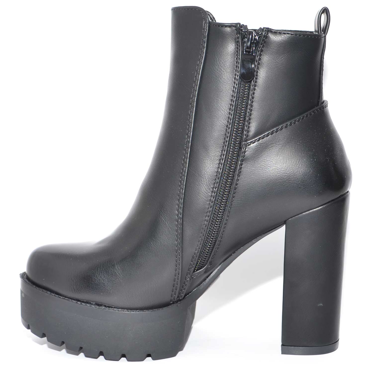 TRONCHETTO BEATLES NERO CON PLATEAU E TACCO LARGO APPLICAZIONE LINEA BASIC
