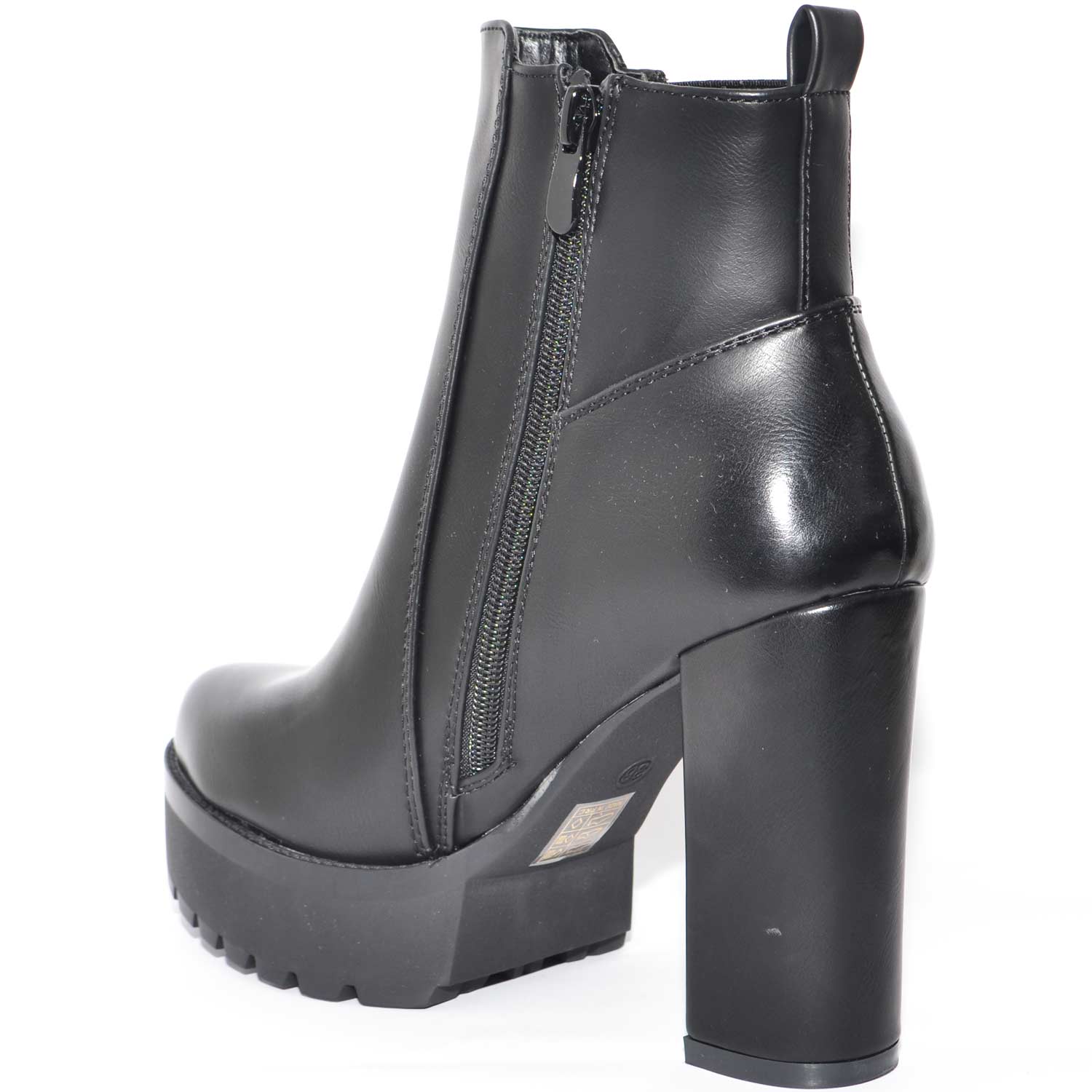 I tronchetti sono scarpe all'ultima moda, immancabili nel guardaroba invernale della donna trendy che ama indossare tacchi per tutto l'anno. E' realizzata con suola carrarmato in gomma con tacco largo e alto 13 cm. La chiusura è resa pratica e comoda grazie alla zip sul lato interno e alla fascia elastica al gambale.