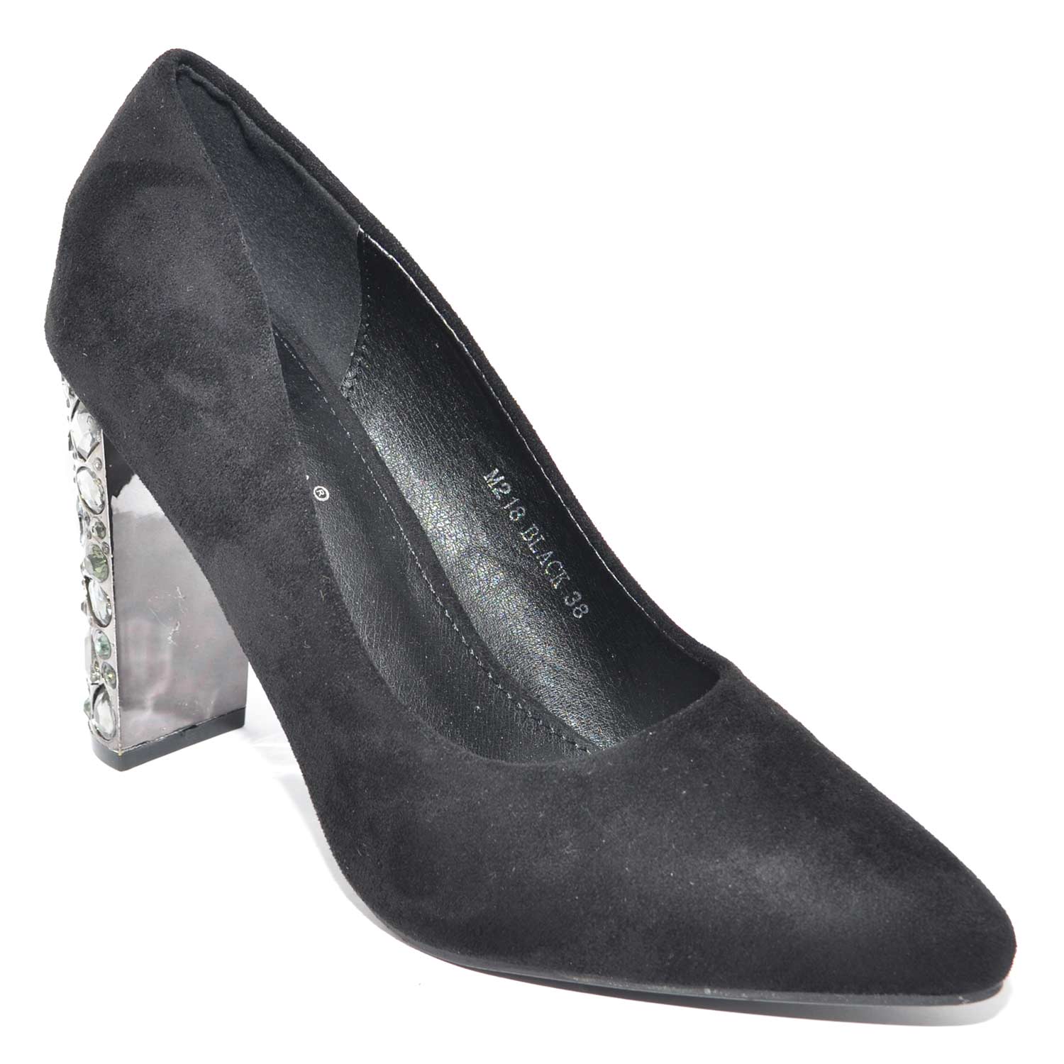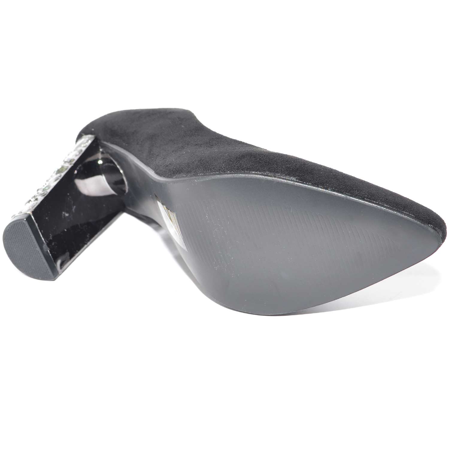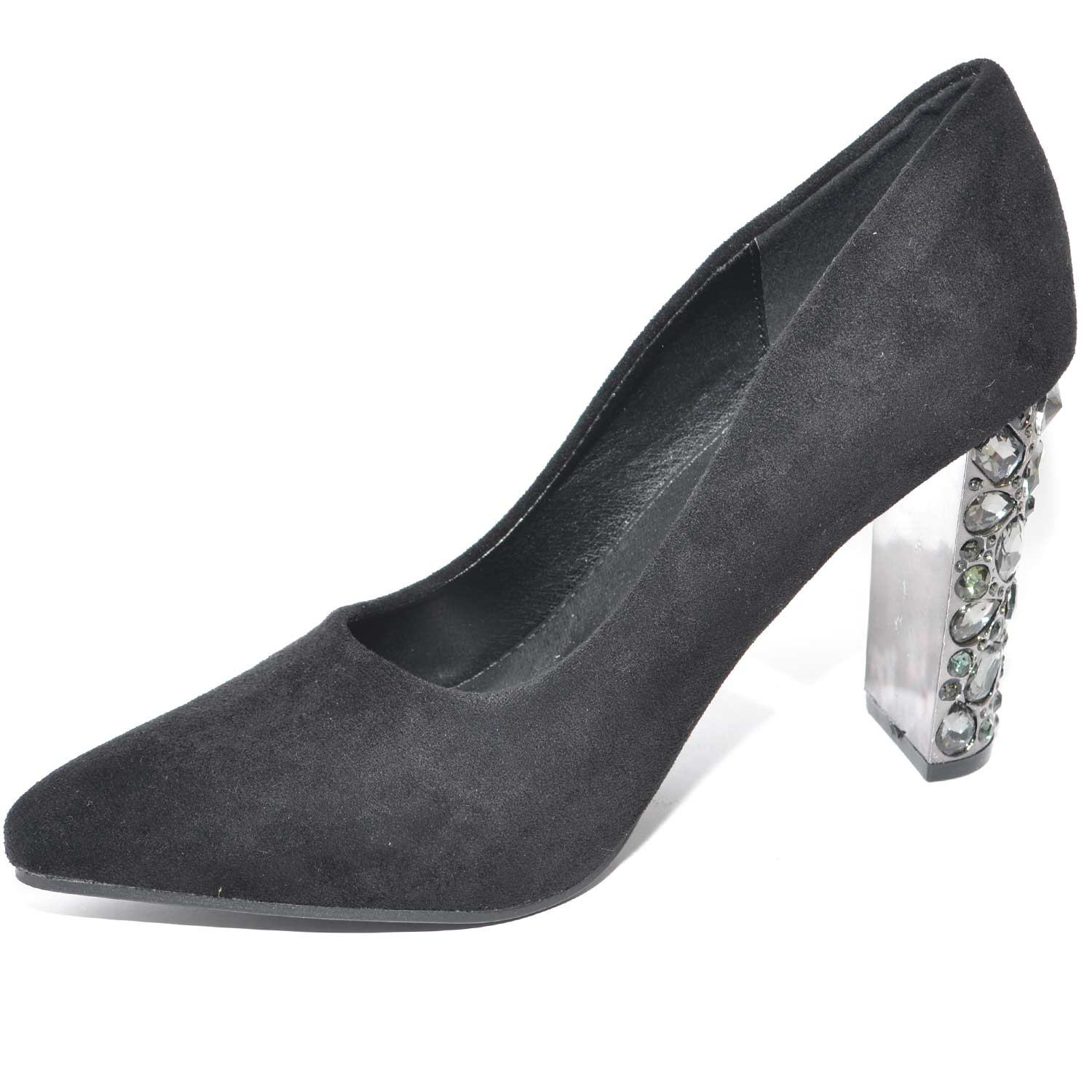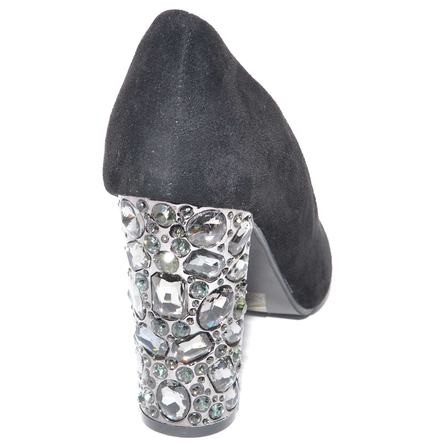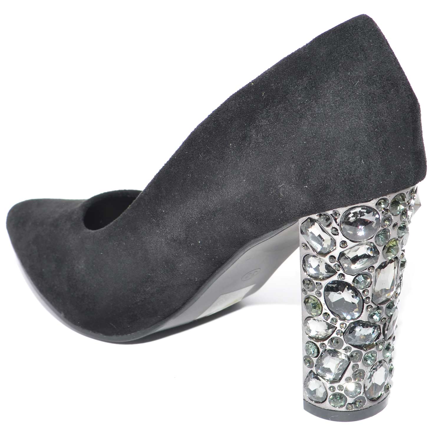 Decollete donna nero linea luxury con tacco largo incastonato di strass argento glam cerimonia lusso