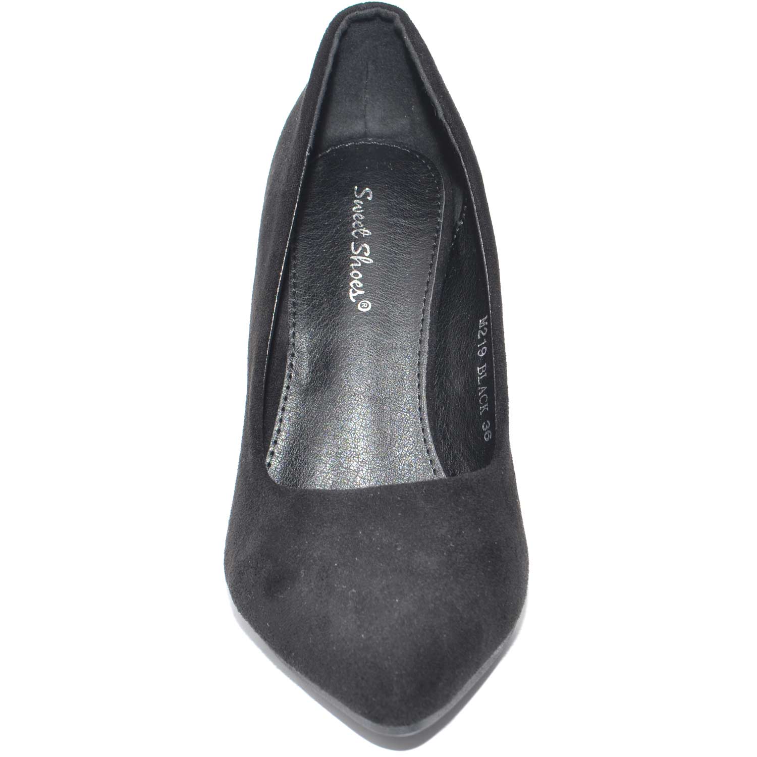 La decolletè a punta è un modello super fashion e particolare, adatto al tempo libero della donna giovanile e alla moda che non vuole passare inosservata. E'realizzata con tomaia in tessuto scamosciato nero, suola in gomma con tacco alto 10 cm decorato con strass in tinta argento . Super femminili e luccicanti.