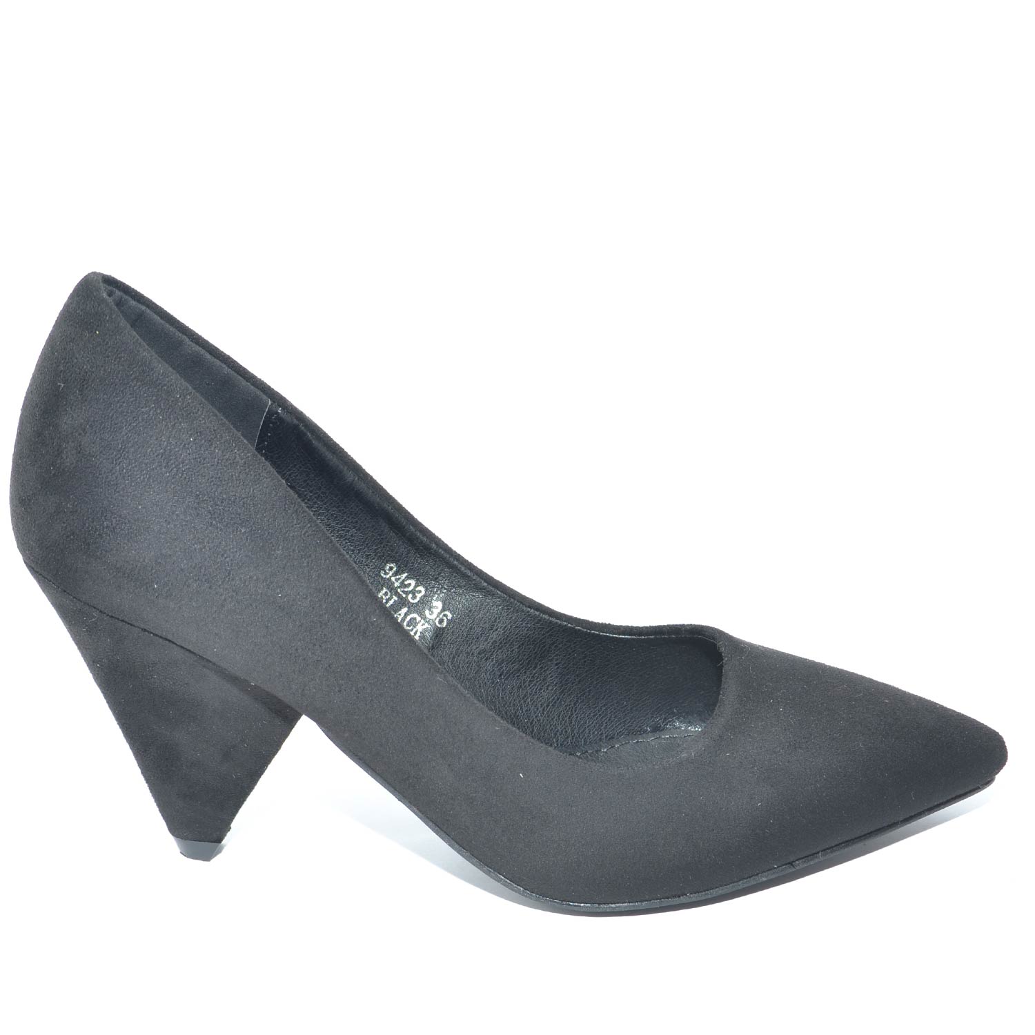 La decolletè a punta è realizzata con tomaia in tessuto scamosciato, interno in ecopelle con sottopiede, suola in gomma con tacco cono glamour e comodo. E'una scarpa elegante e versatile, da utilizzare non solo al lavoro o in occasioni formali, ma anche nel tempo libero della donna alla moda e amante dei tacchi.