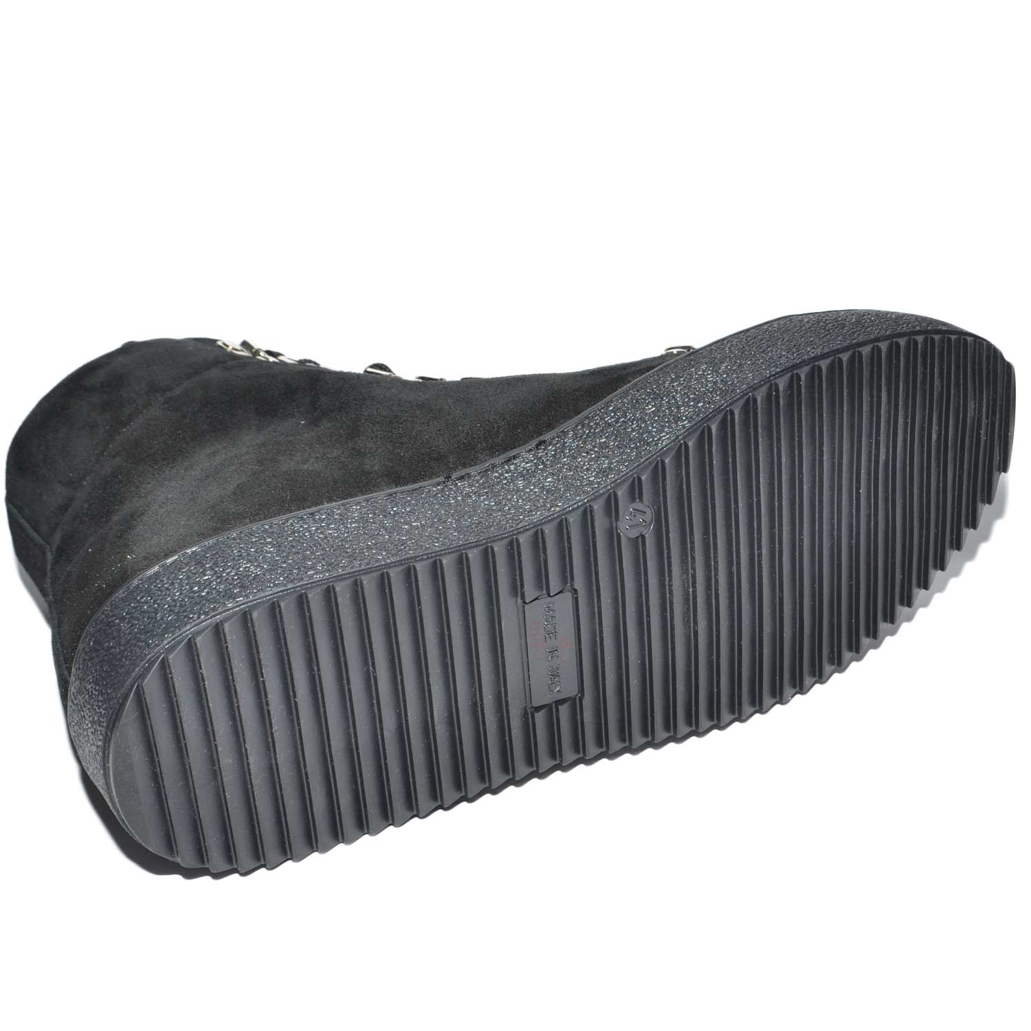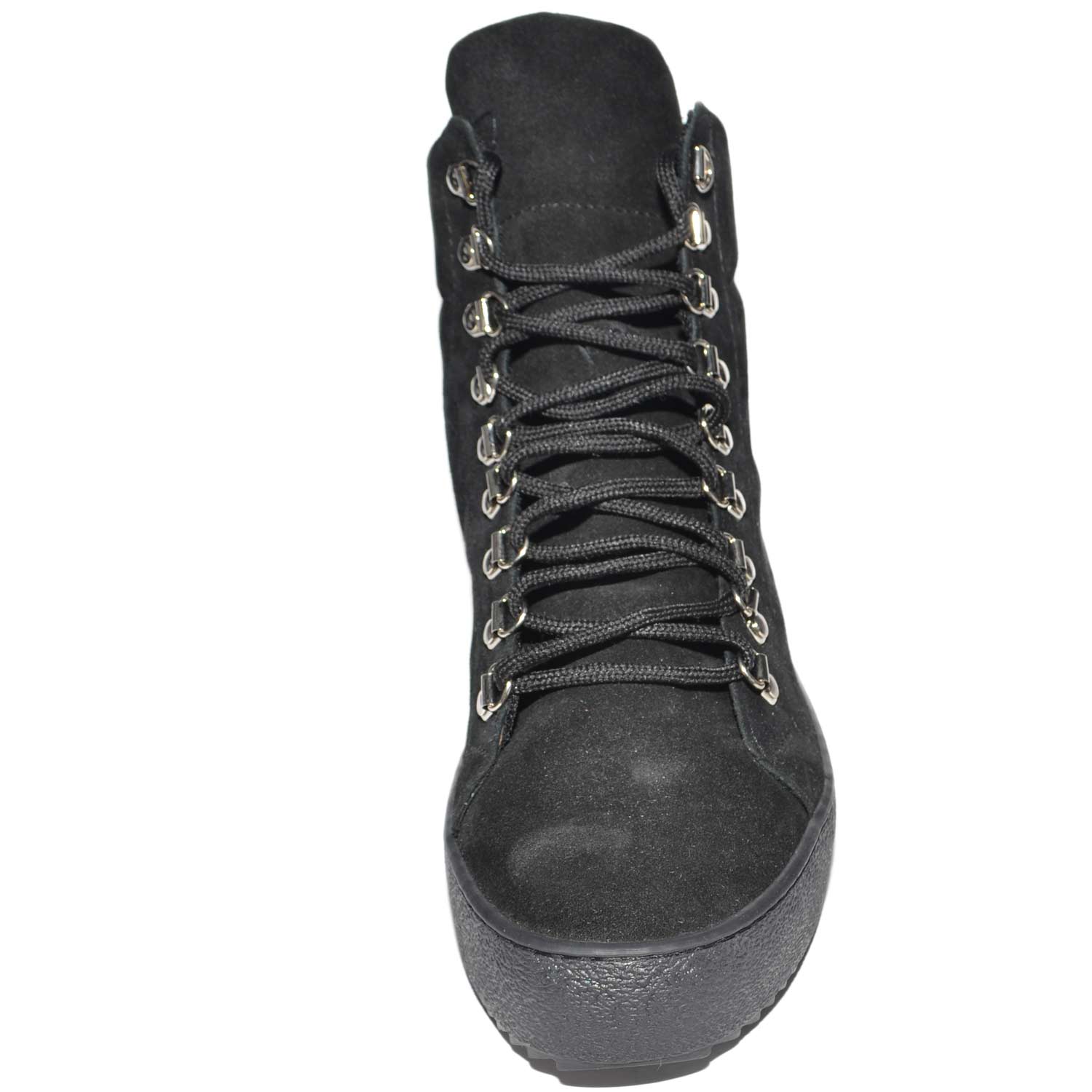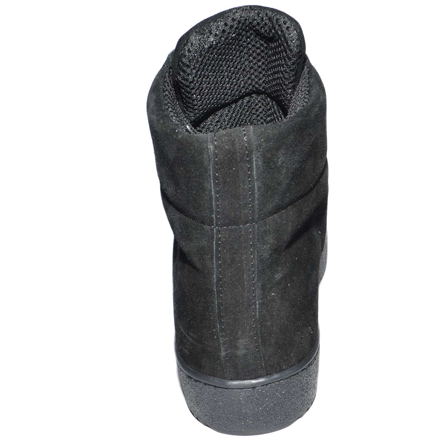 Sneakers uomo alta in vera pelle scamosciata nera con fondo doppio army nero, lacci con occhielli dorati